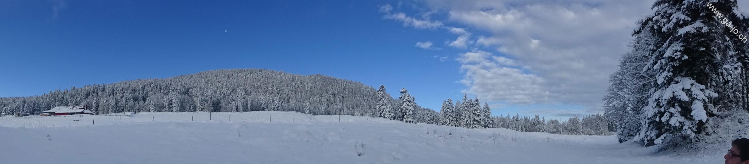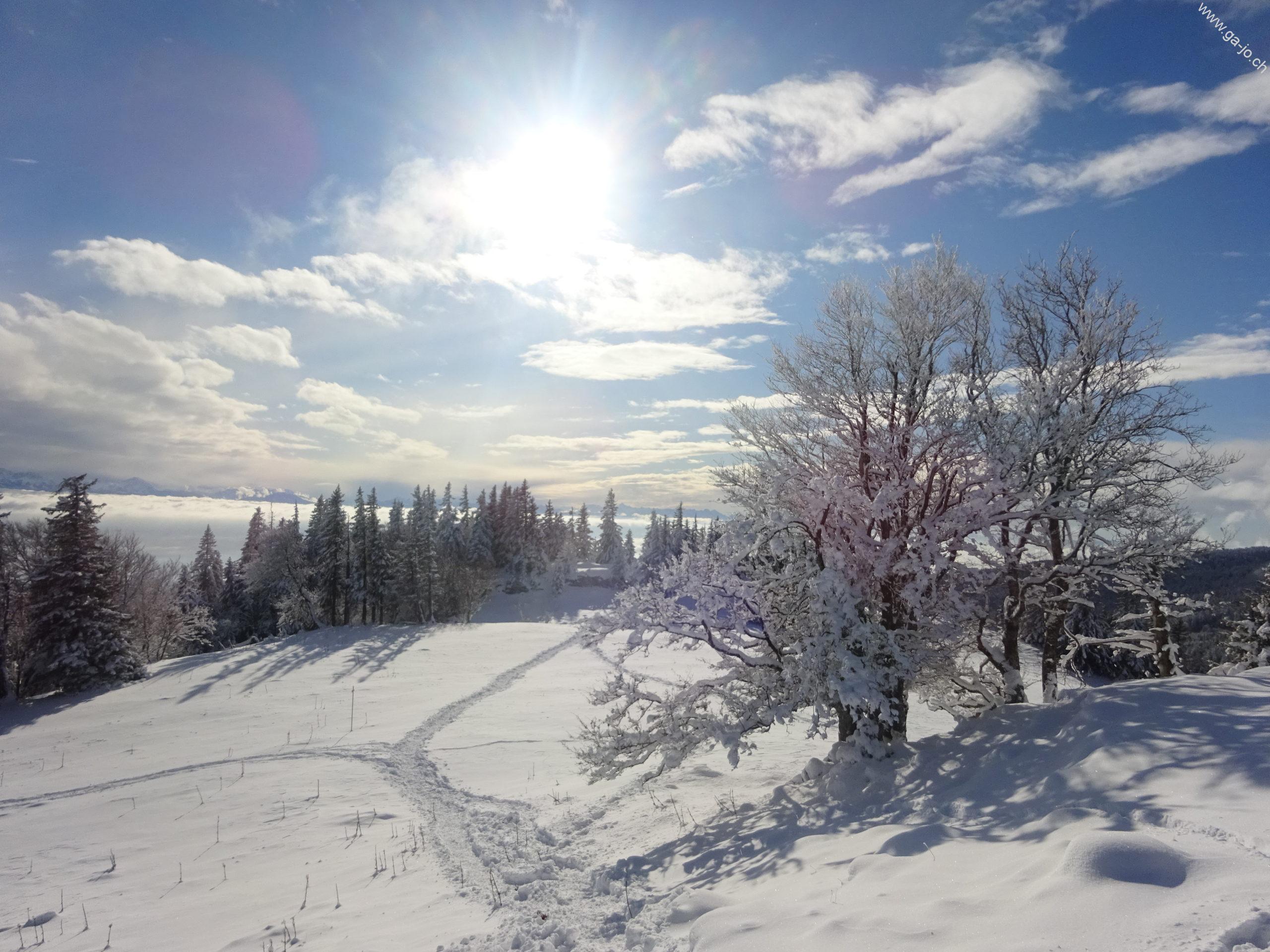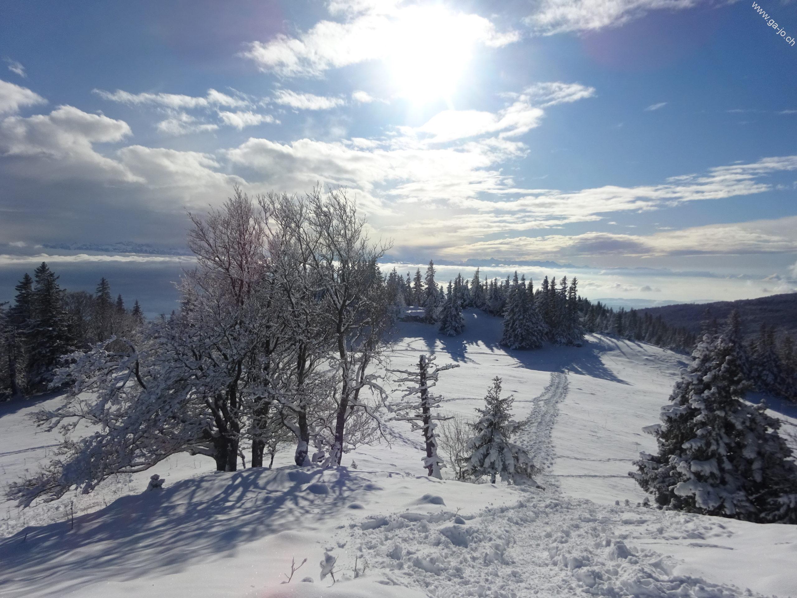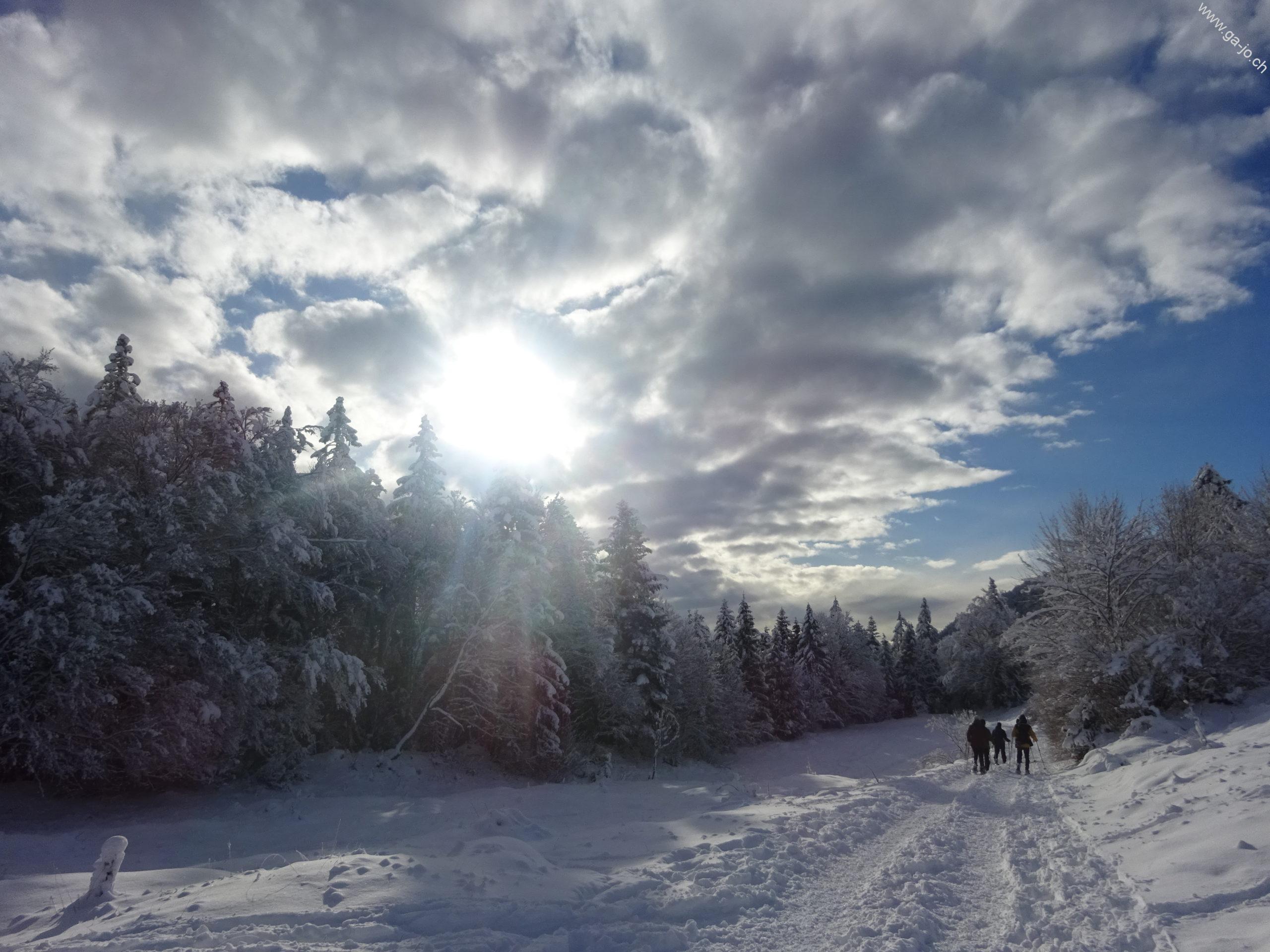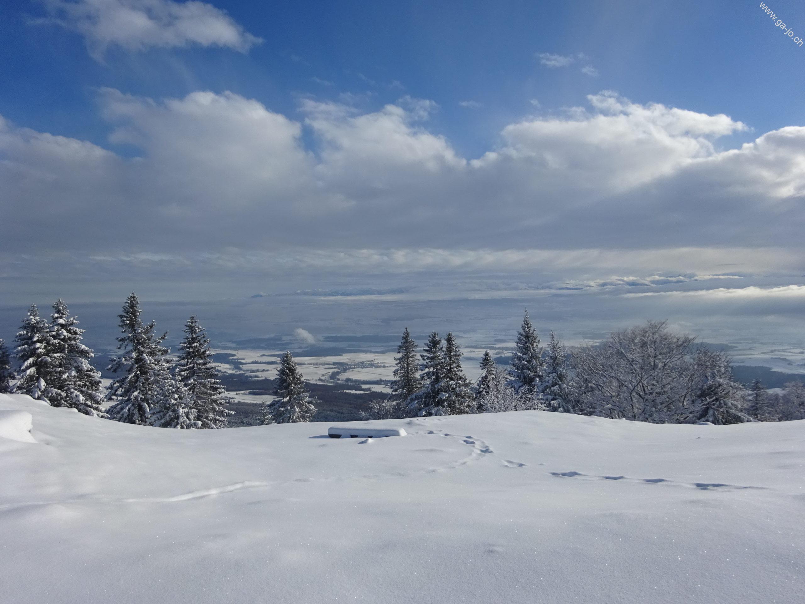 L’itinéraire en huit menant à la croix de Châtel depuis le col du Mollendruz est un grand classique des sorties en raquettes de la région. Il faut dire que la vue sur la plaine à l’arrivée en vaut la peine. Ce jour-ci nous avons quelques peu raté la bifurcation du sentier balisé juste après Châtel et comme nous ne voulions pas revenir en arrière nous avons poussé la descente jusqu’à Montricher et comme nous avons raté le train de peu nous avons poussé à pieds jusqu’à l’Isle.