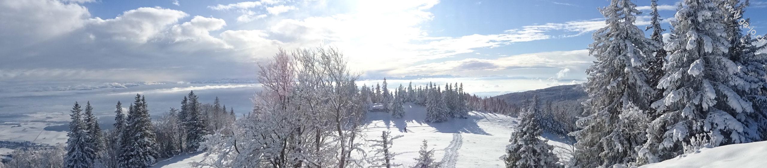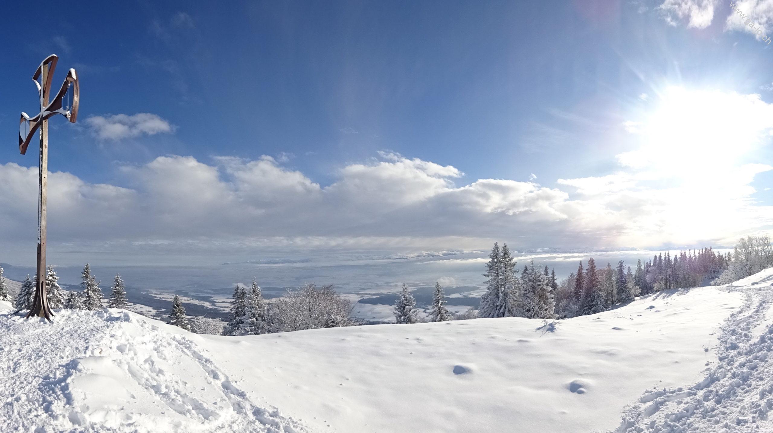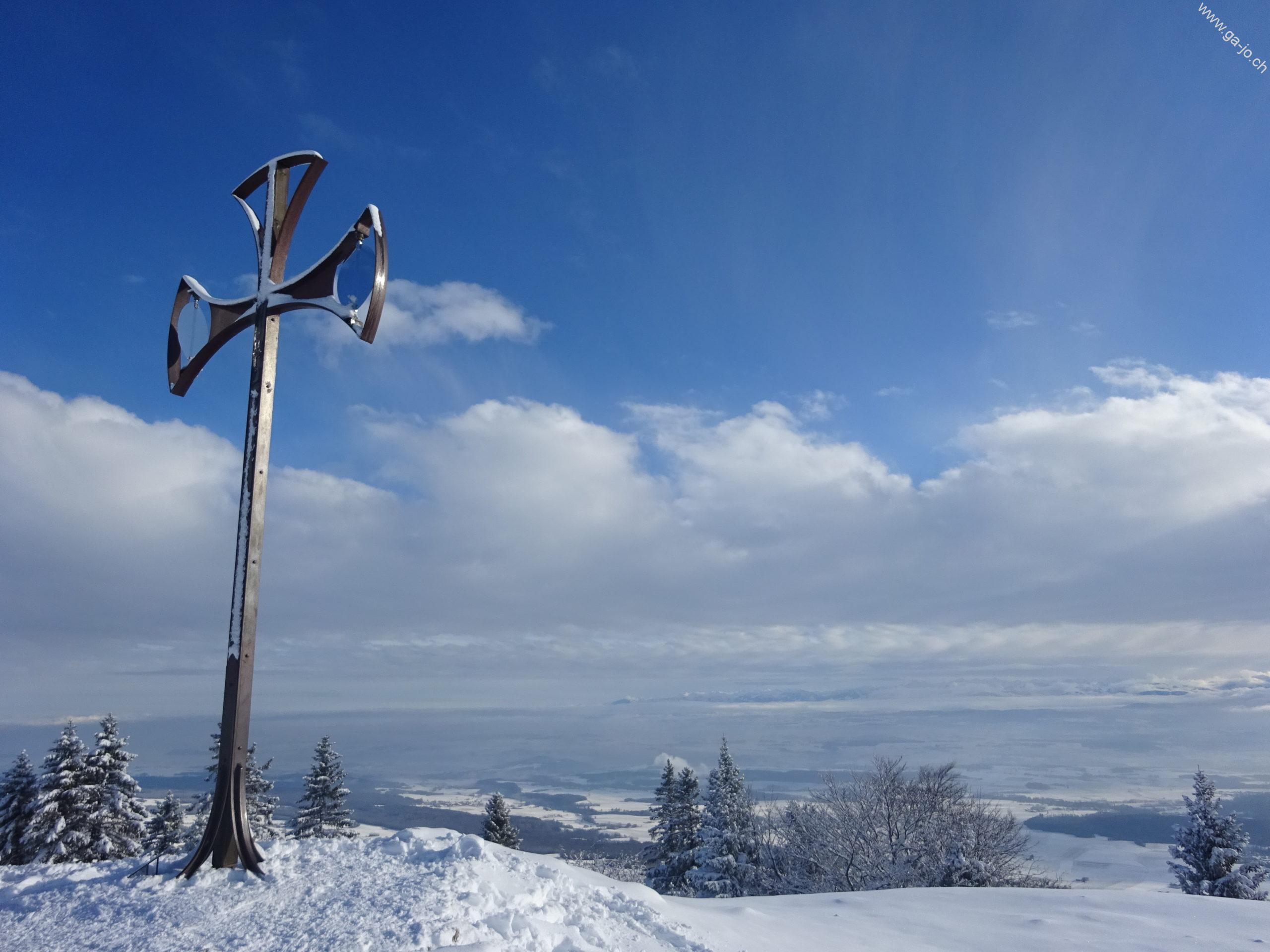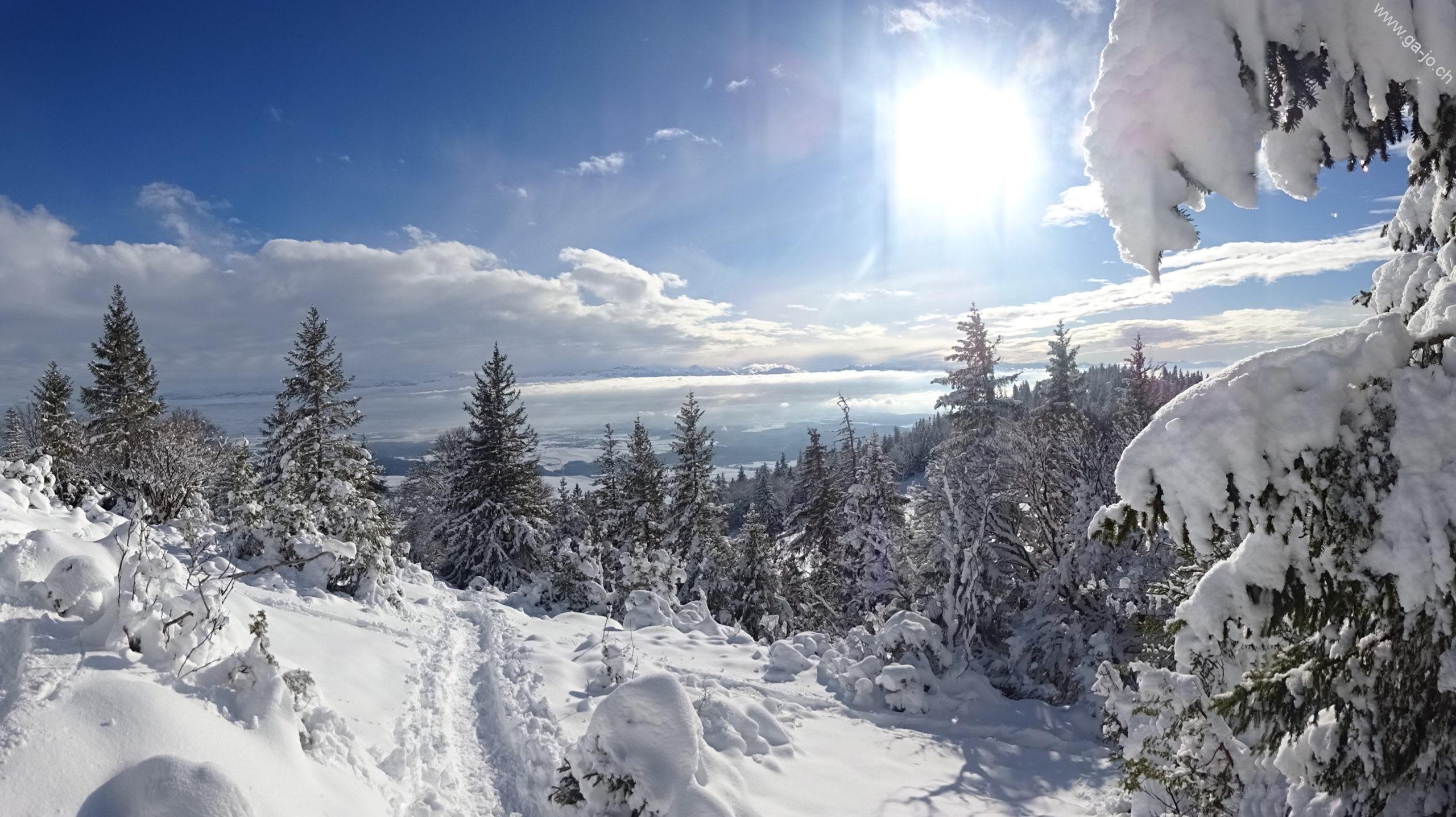 L’itinéraire en huit menant à la croix de Châtel depuis le col du Mollendruz est un grand classique des sorties en raquettes de la région. Il faut dire que la vue sur la plaine à l’arrivée en vaut la peine. Ce jour-ci nous avons quelques peu raté la bifurcation du sentier balisé juste après Châtel et comme nous ne voulions pas revenir en arrière nous avons poussé la descente jusqu’à Montricher et comme nous avons raté le train de peu nous avons poussé à pieds jusqu’à l’Isle.