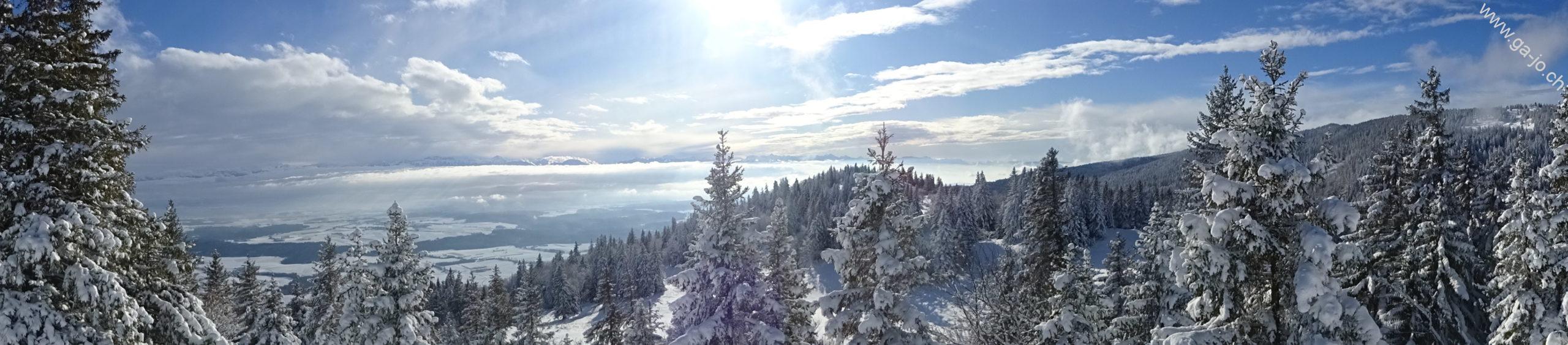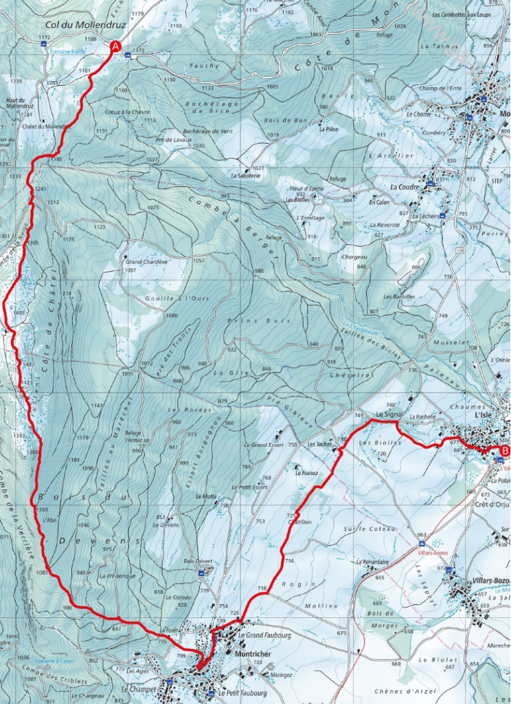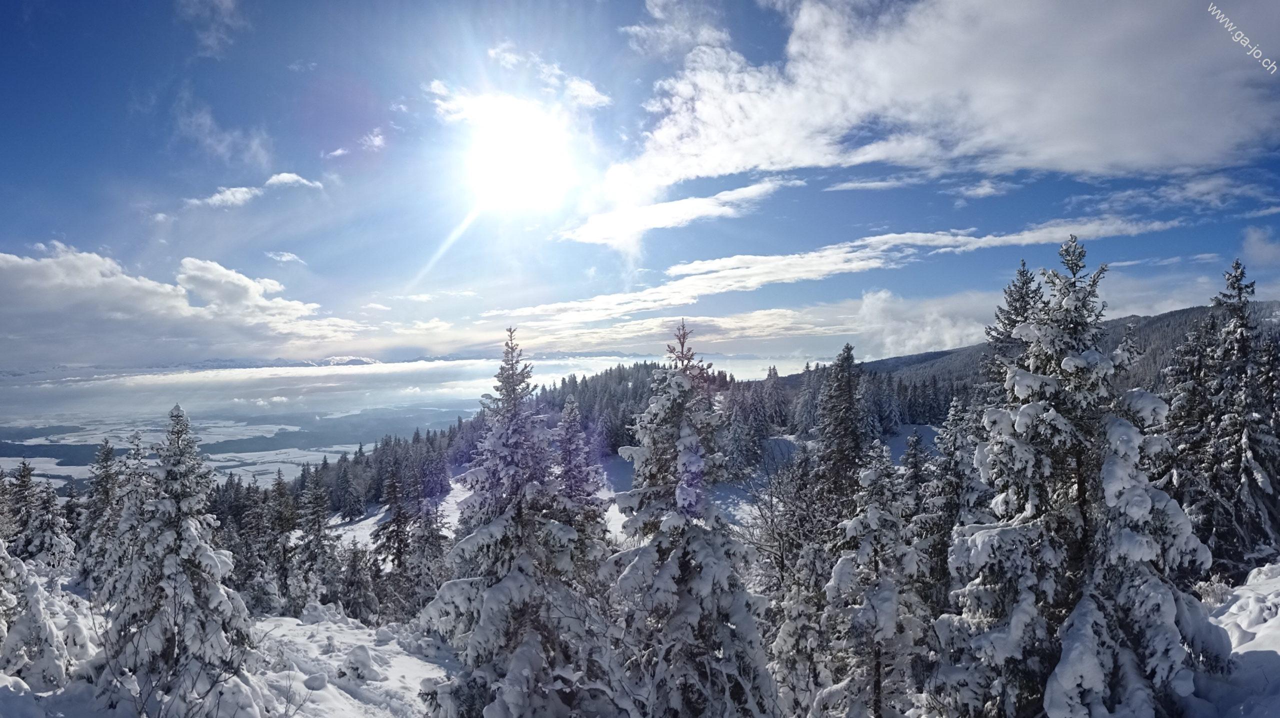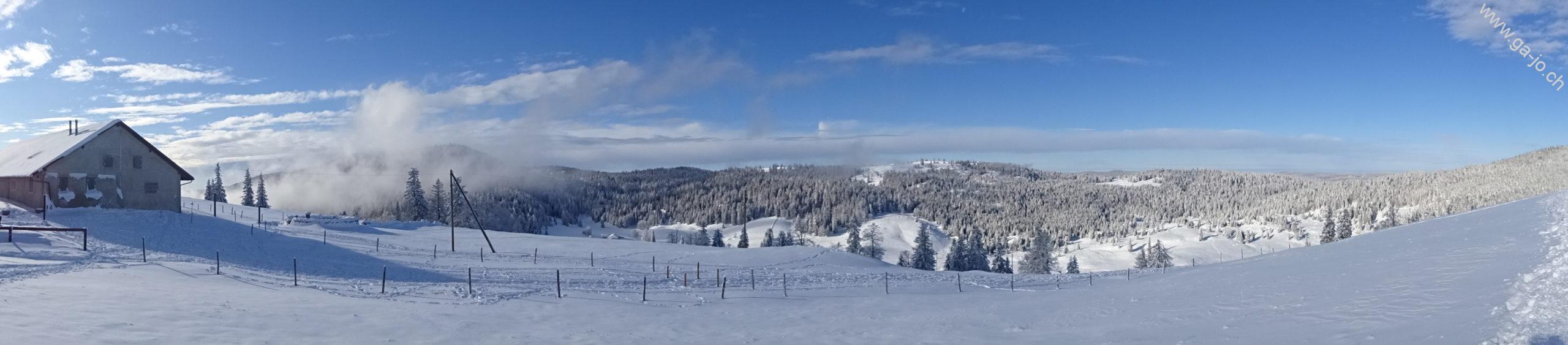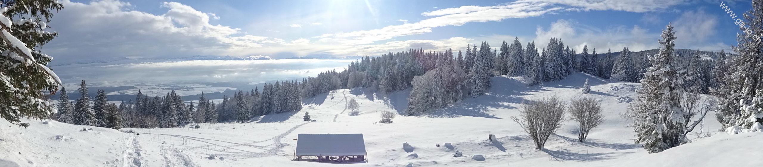 L’itinéraire en huit menant à la croix de Châtel depuis le col du Mollendruz est un grand classique des sorties en raquettes de la région. Il faut dire que la vue sur la plaine à l’arrivée en vaut la peine. Ce jour-ci nous avons quelques peu raté la bifurcation du sentier balisé juste après Châtel et comme nous ne voulions pas revenir en arrière nous avons poussé la descente jusqu’à Montricher et comme nous avons raté le train de peu nous avons poussé à pieds jusqu’à l’Isle.