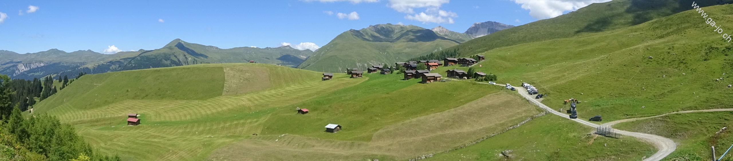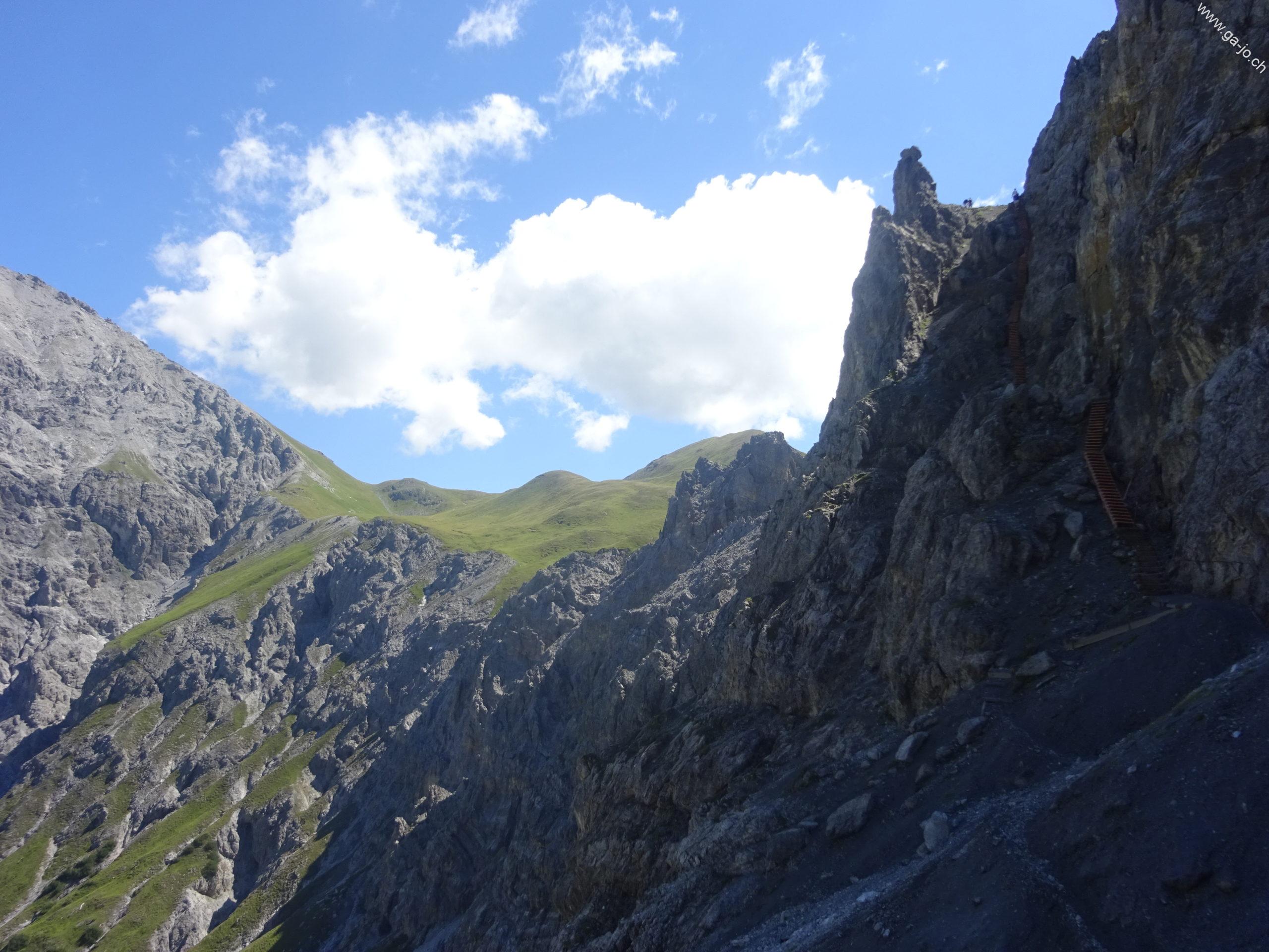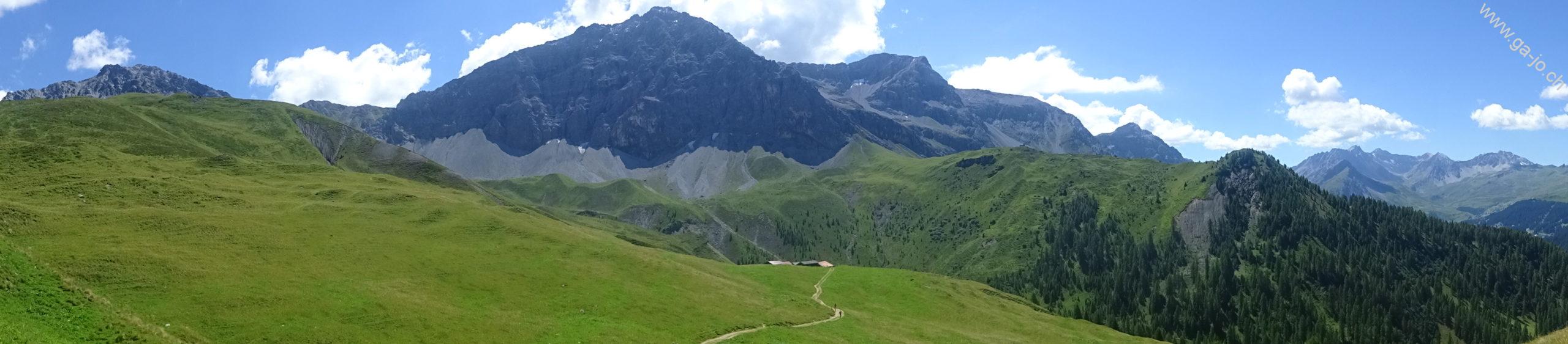 Il y a de nombreuses possibilités de relier Davos et Arosa. Nous avons décidé de suivre l’itinéraire “Mittelbünden-Panoramaweg” (54) principalement pour son passage vertigineux par le “Tritt” peu après le col de Lätschüelfurgga. Equipé de chaines et escaliers en métal, ce passage ne présente pas de grandes difficultés en soit mais n’est clairement pas recommandé pour les personnes sujettes au vertige. C’est uniquement ce court passage qui vaut à cet itinéraire la cotation T3. Le départ de Davos Dorf peut-être légèrement raccourci en empruntant le funiculaire montant à Schatzalp en début de parcours.