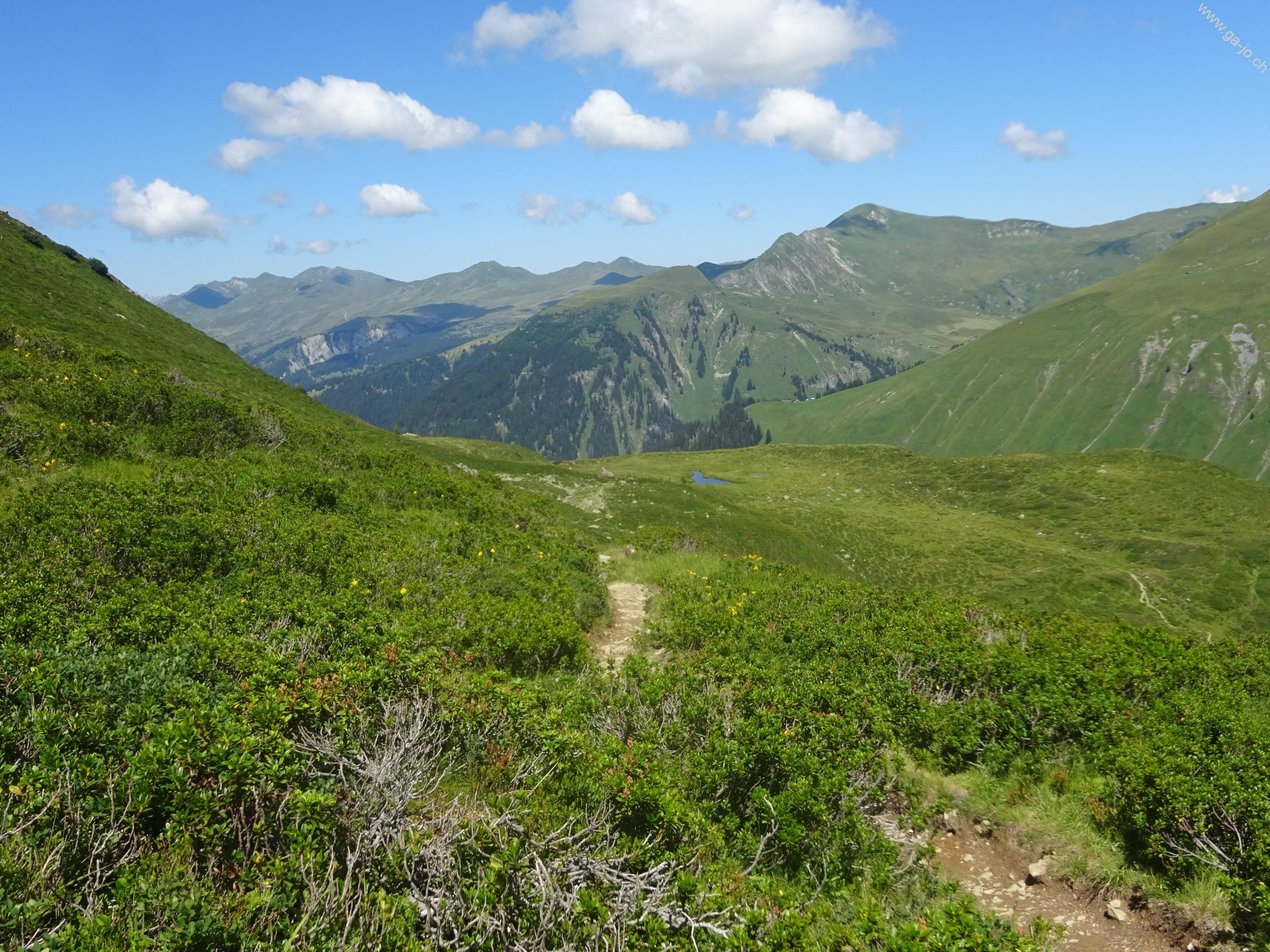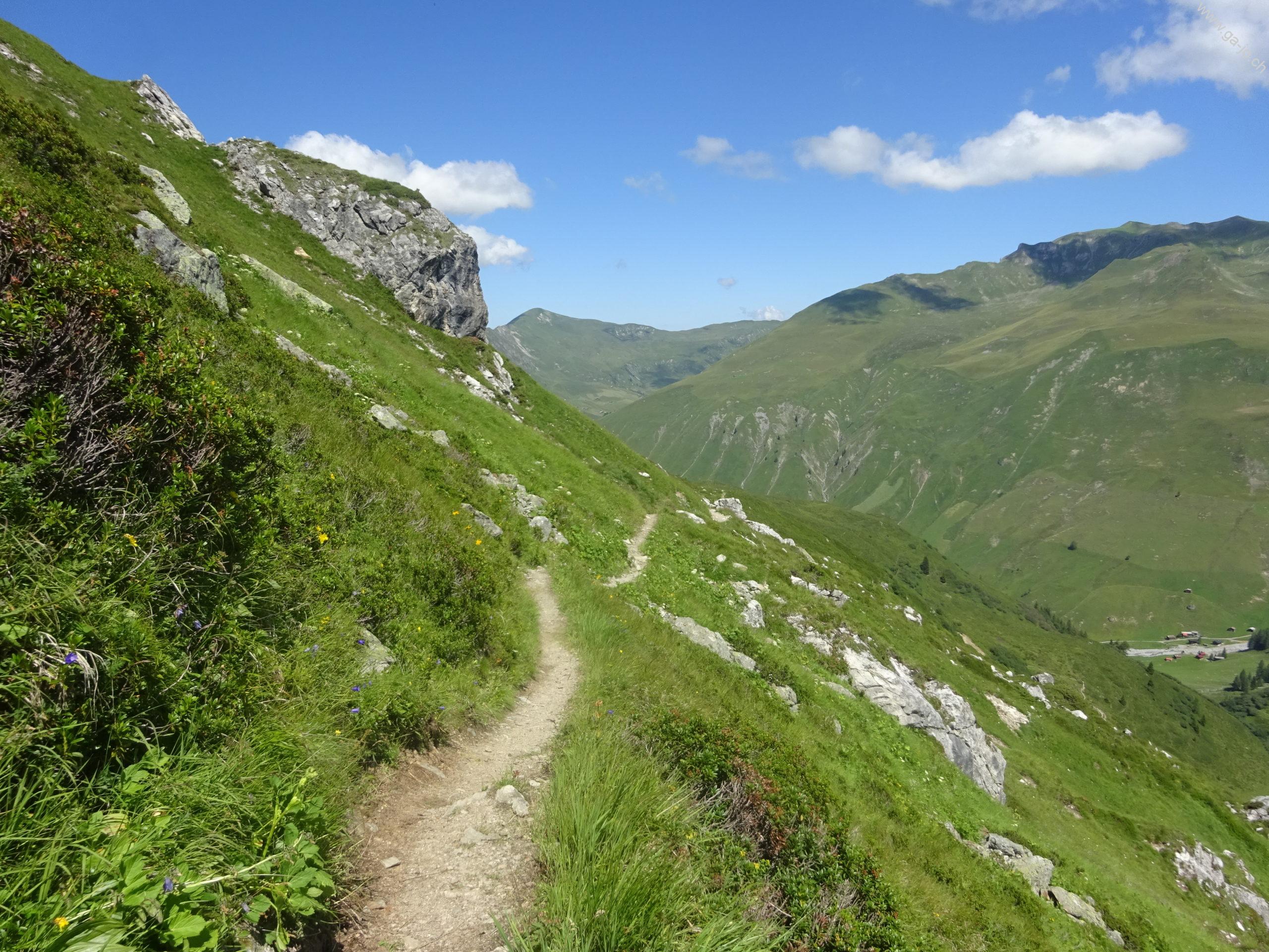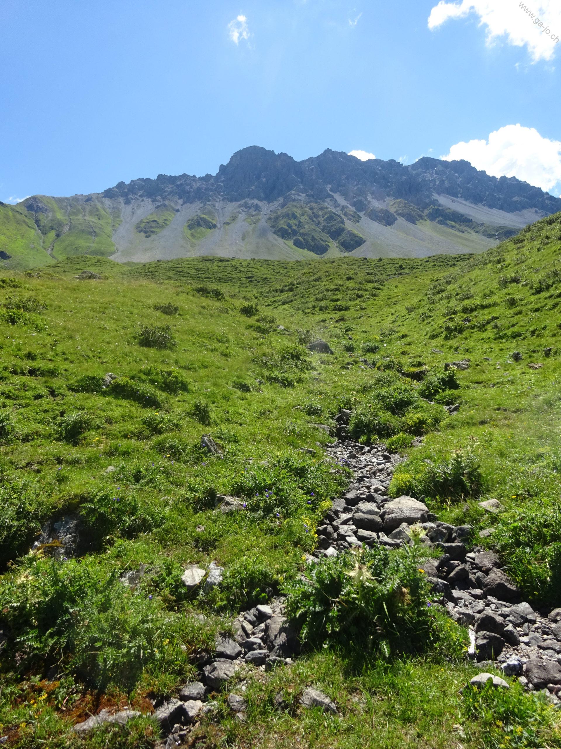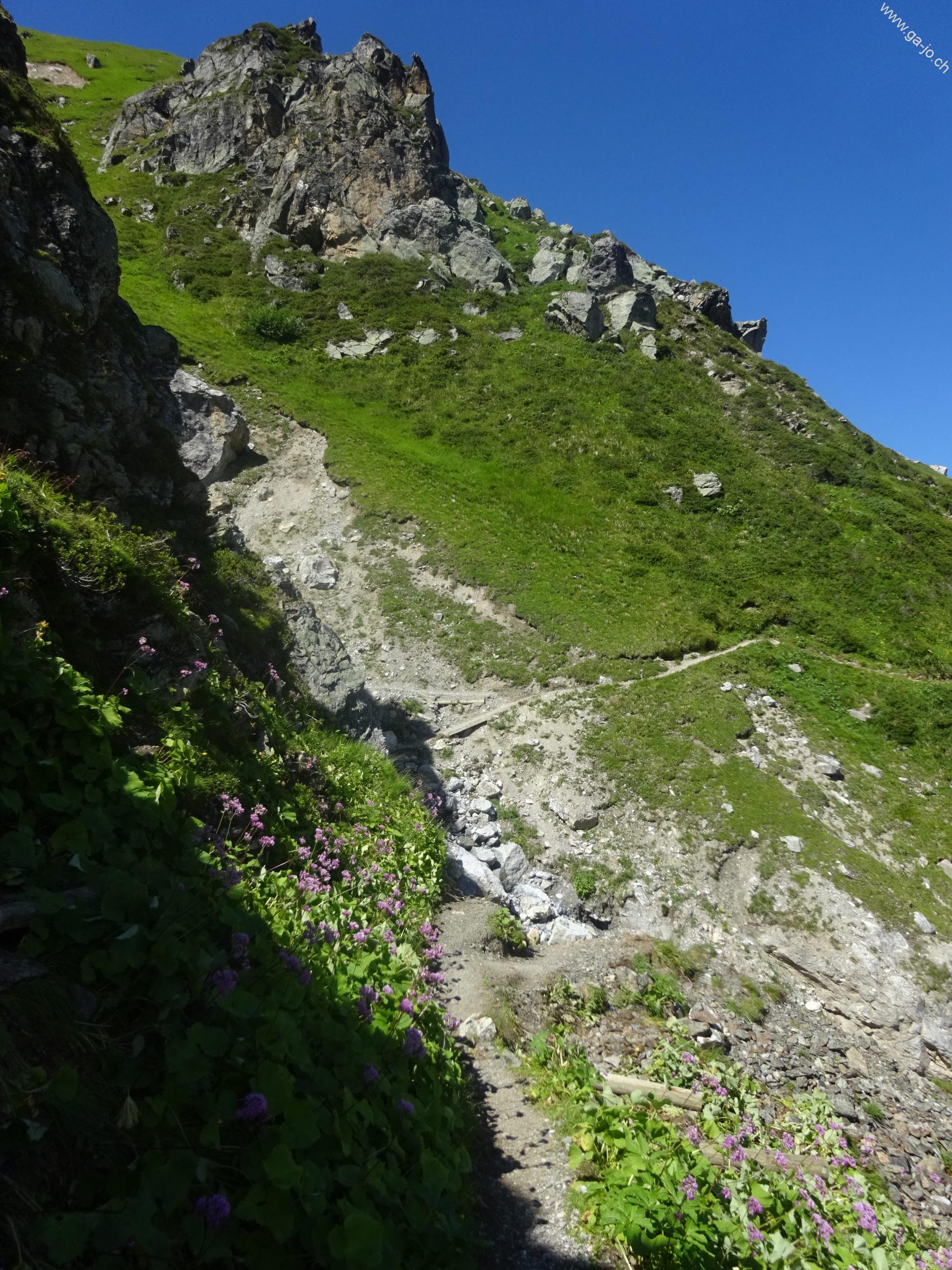 De Schatzalp, le sentier bifurque à droite et continue la montée, assez éprouvante, en direction de Lätschüelfurgga.