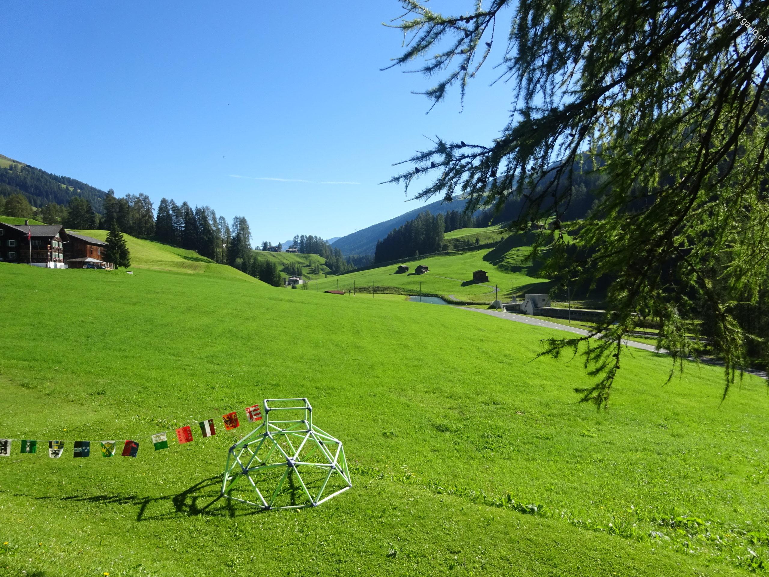 Autour de Davos, se trouve notamment le chemin “Alpenweg Davos” reliant Davos Dorf et Davos Glaris. Pour cette adaptation, nous avons décidé de prendre le chemin supérieur, demandant un peu plus d’effort mais offrant un panorama bien plus large. Pour les plus motivés, le départ peut très bien se faire de Davos Glaris via Bärentaler Alp, cependant nous avons choisi de raccourcir un peu le départ en partant de Davos Mühle. Ce chemin, bien qu’éprouvant physiquement ne présente pas de grande difficultés, mais pas au point de le parcourir avec une poussette (oui, on voit de tout…) certains passages sont un petit peu vertigineux, qu’on doit parfois partager avec des VTTistes.