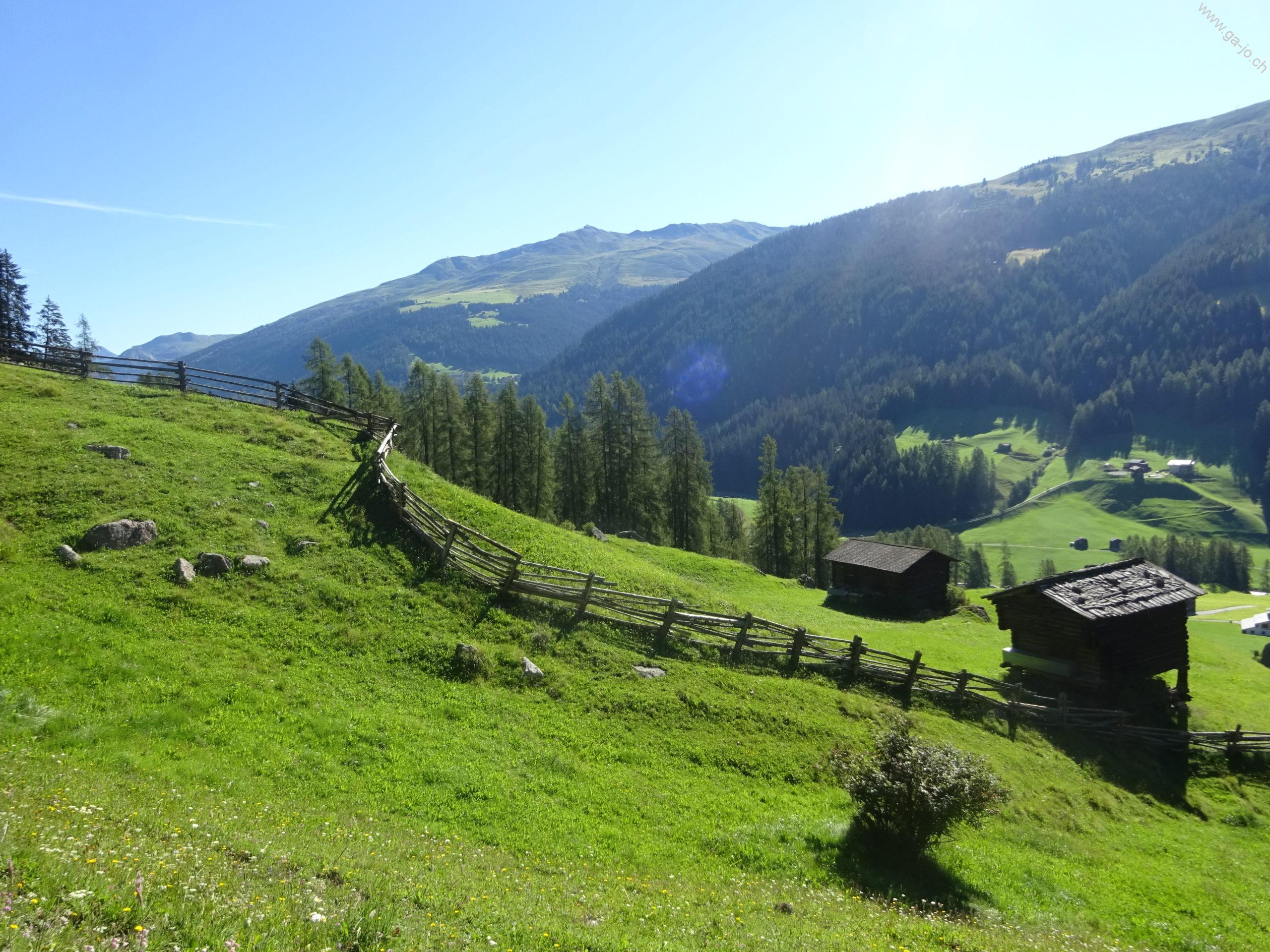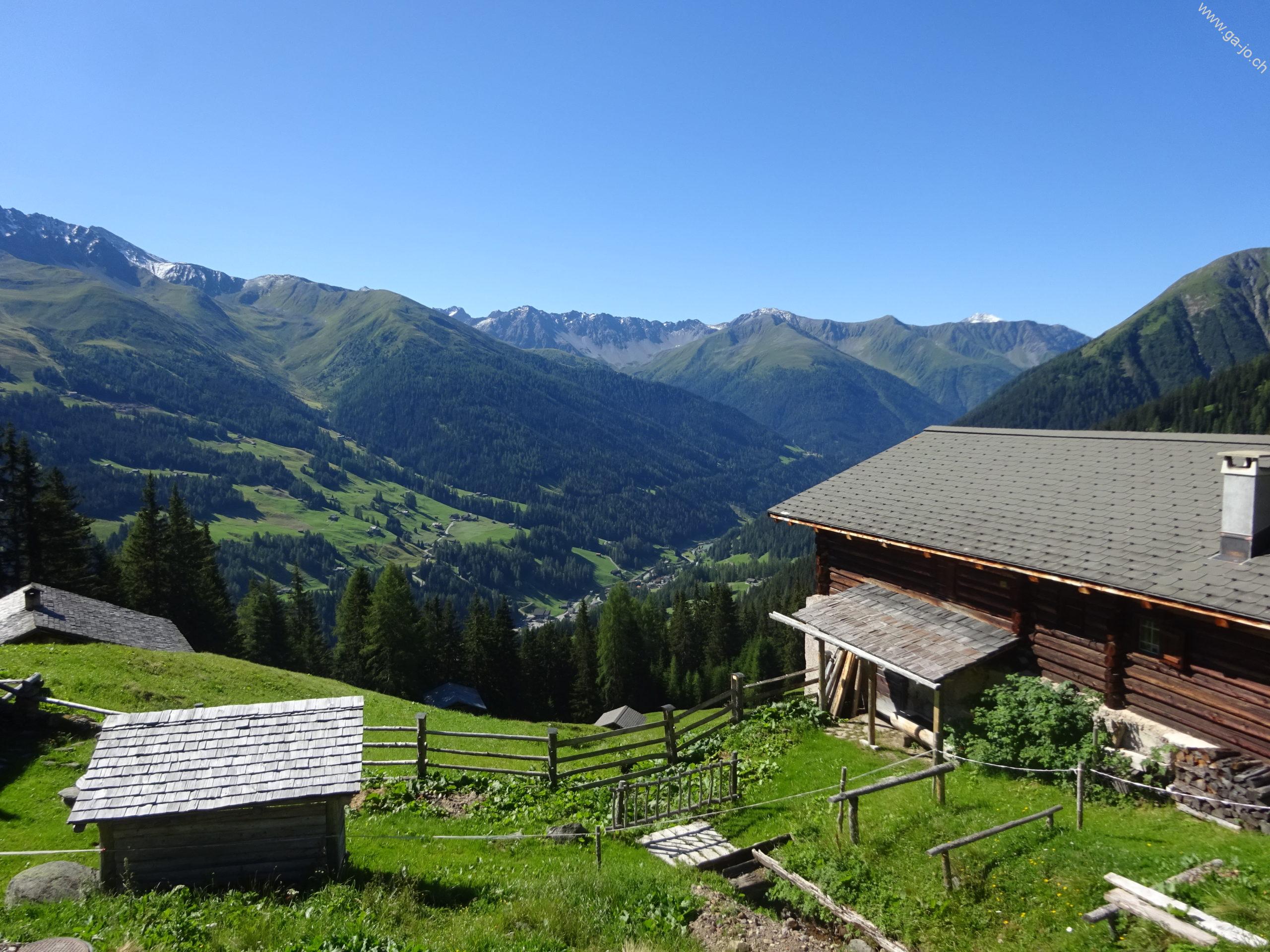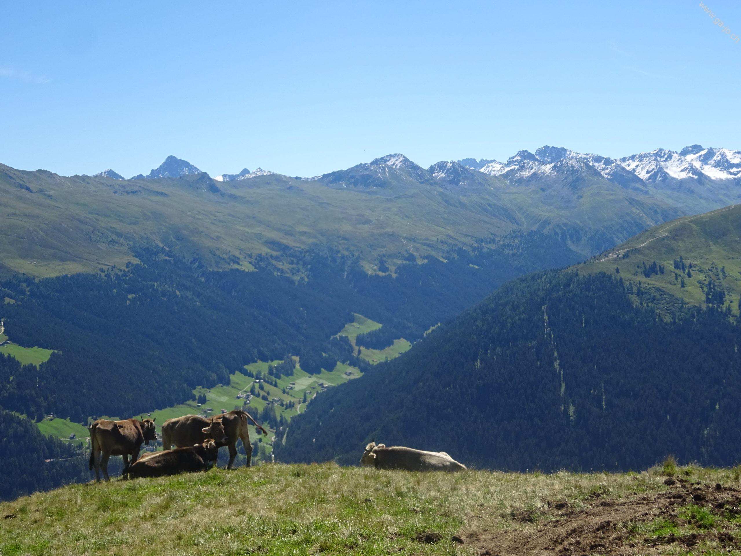 Une fois Strellapass et sa buvette d’alpage passée, on continue à flanc de coteau par la Panoramaweg en direction du funiculaire de Parsenn. Peu avant la station intermédiaire “Höhenweg” nous bifurquons et redescendons en direction de Davos Dorf.