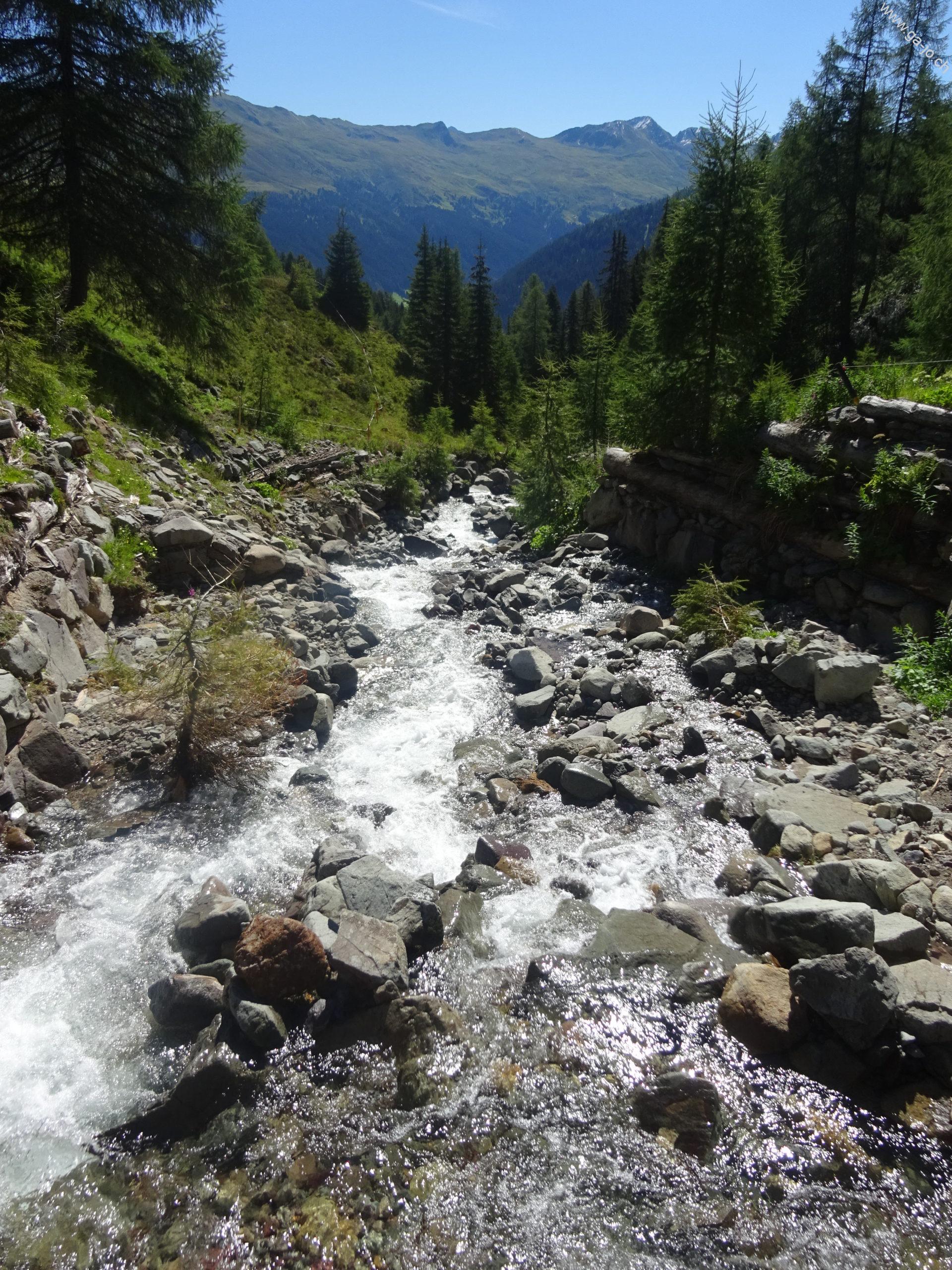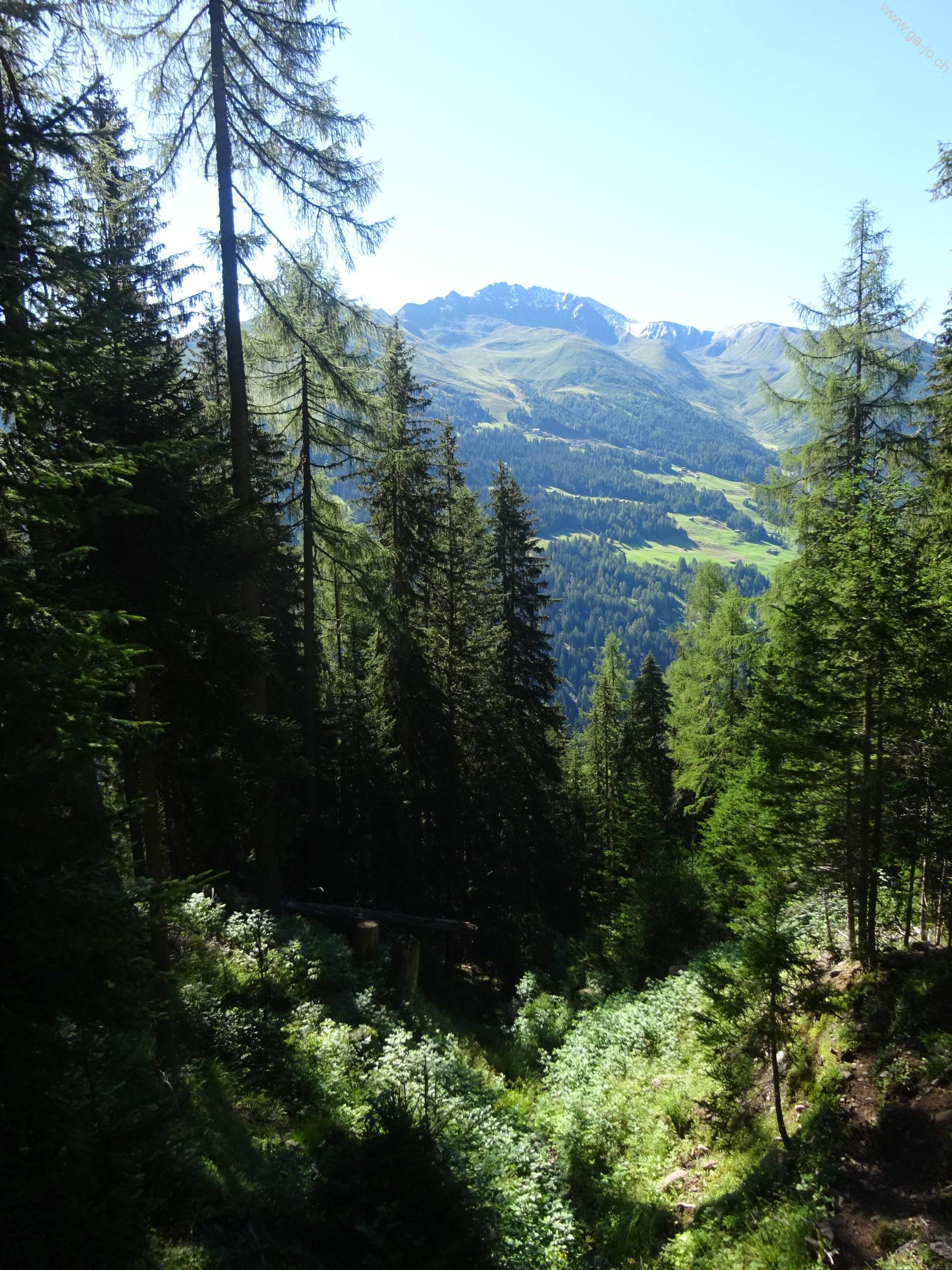 Départ donc de Davos Mühle joignable facilement par le bus n° 1 au départ de Davos Dorf. On monte d’abord sur une route, puis sur une chemin forestier pour rejoindre Chummeralp, une montée assez exigeante physiquement, parfaite pour l’échauffement.