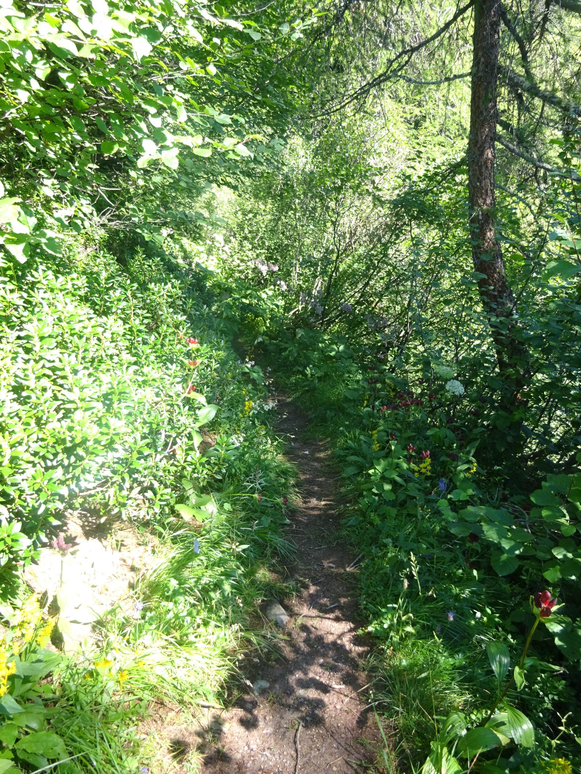 On prends alors la direction de Stefelalp, le chemin monte encore un peu en direction N et nous emmène à flanc de coteau avant de redescendre quelque peu.