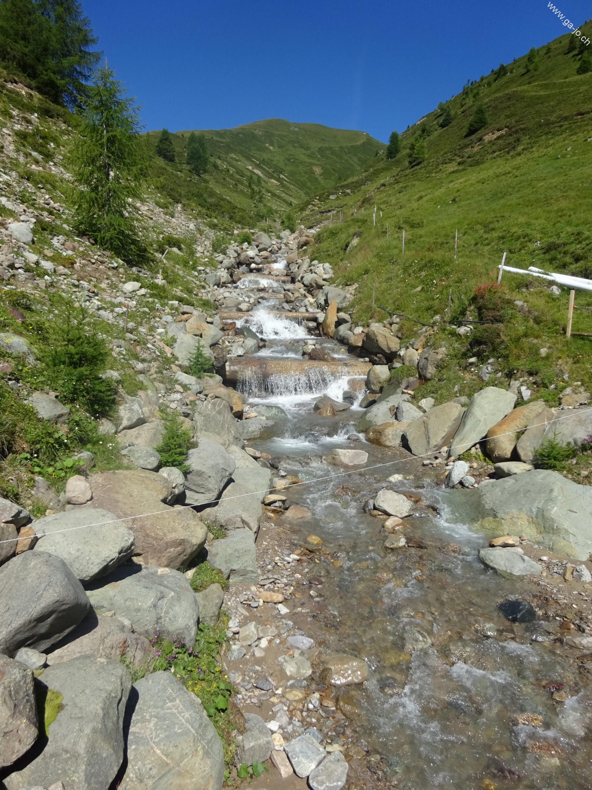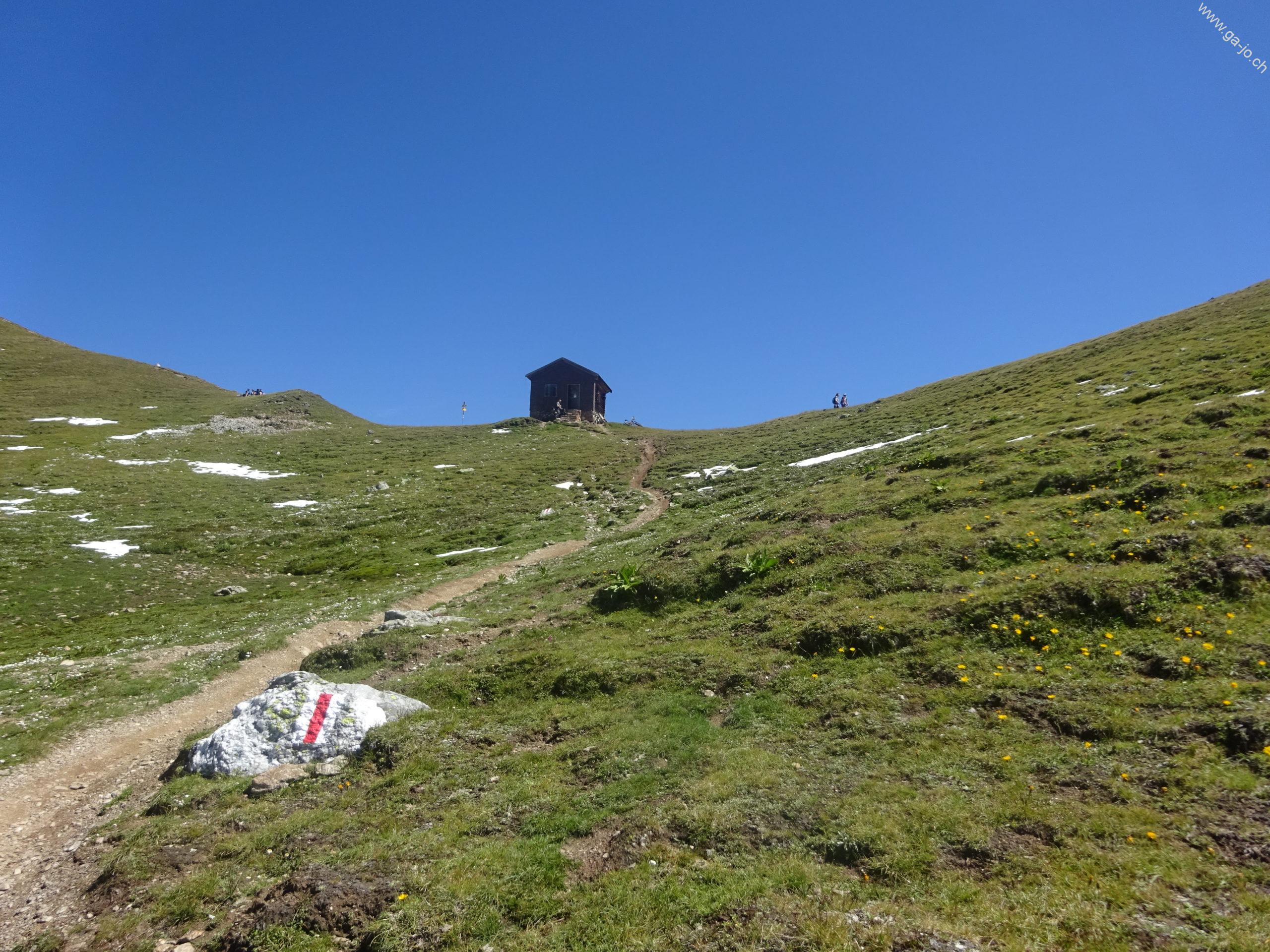 Peu avant Stefelalp, on vire direction N-O en longeant l’arrête en suivant les indications pour la Chörbschhornhütte. Le chemin monte assez sec avec de nombreuses vires.