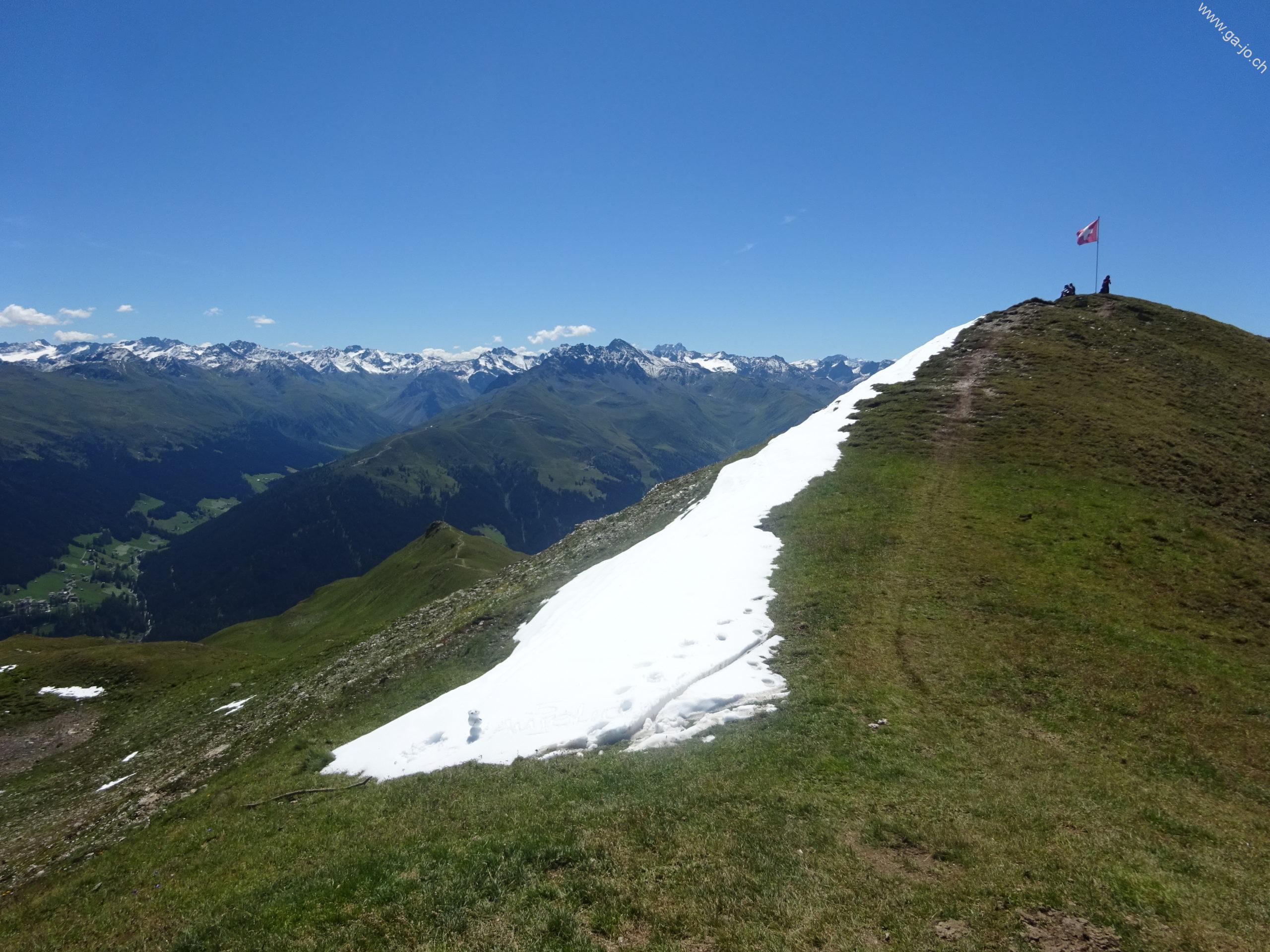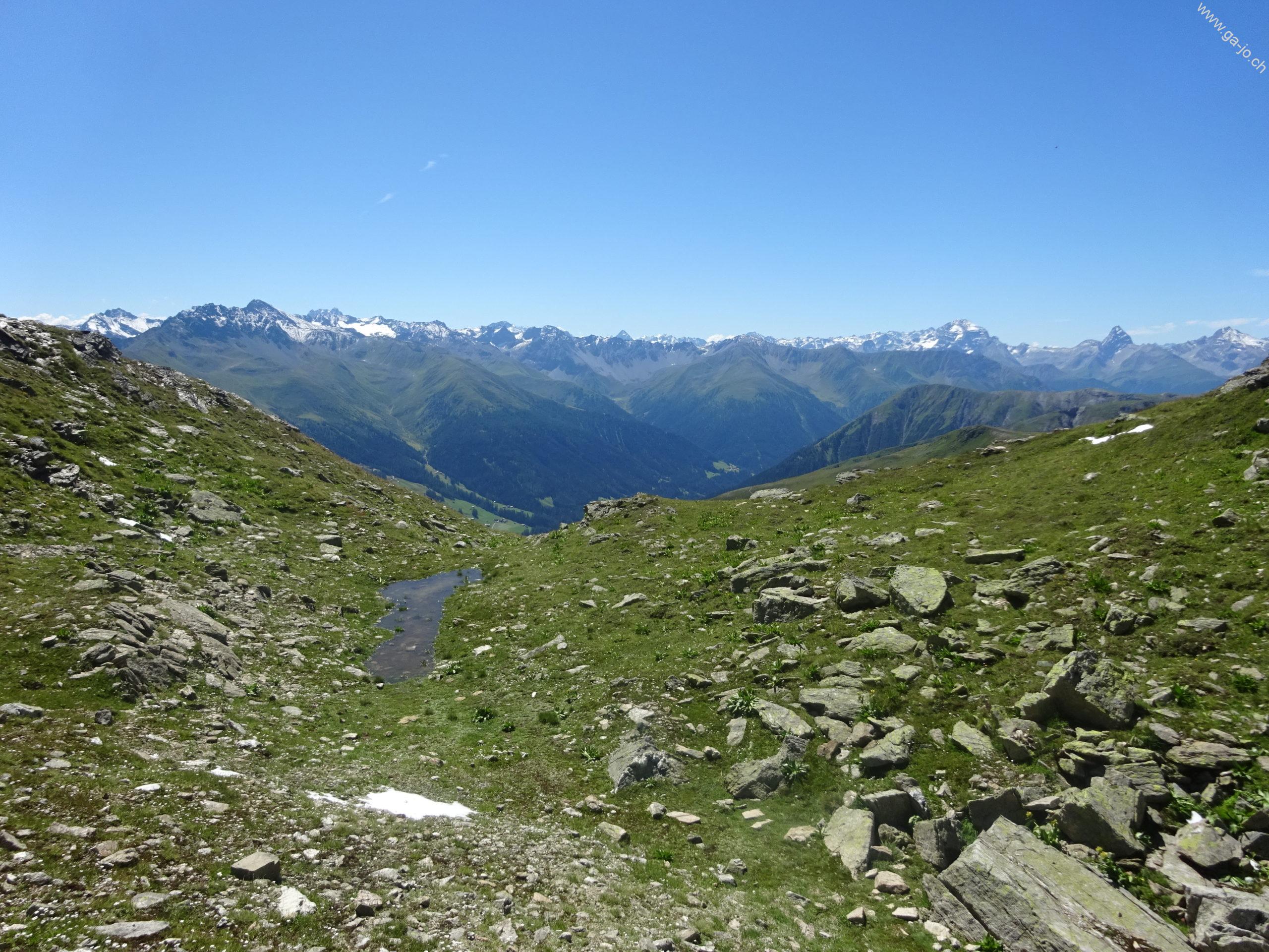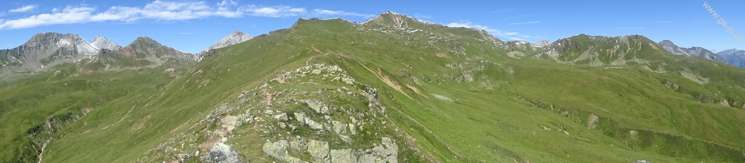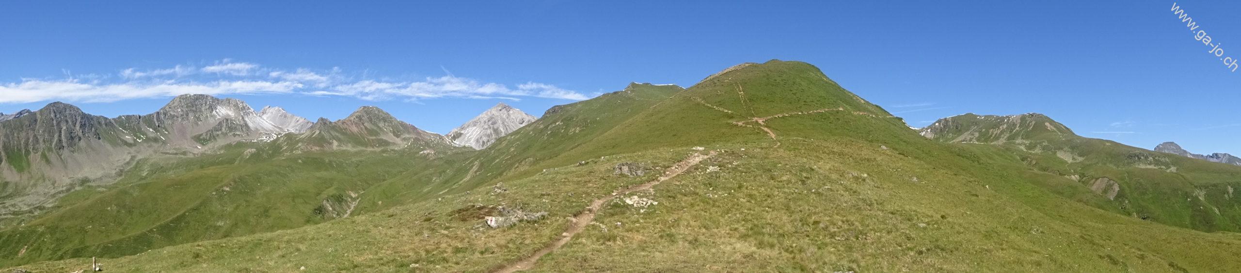 Le sentier continue en direction de Strelapass en contournant par l’ouest le Wannengrat et passant par le Latschüelfurgga (col que nous emprunterons demain pour rejoindre Arosa).