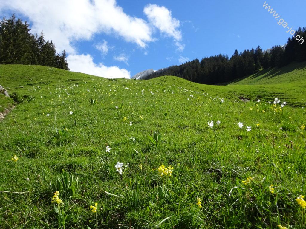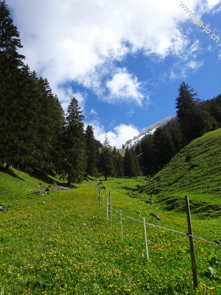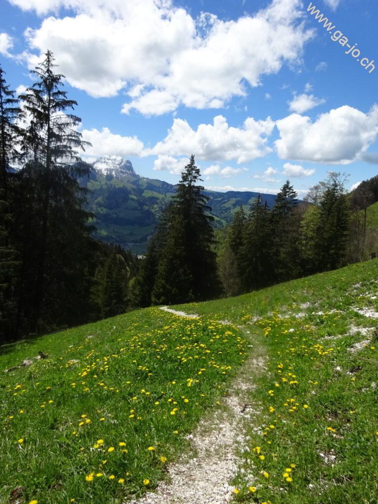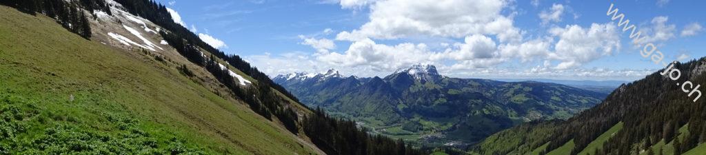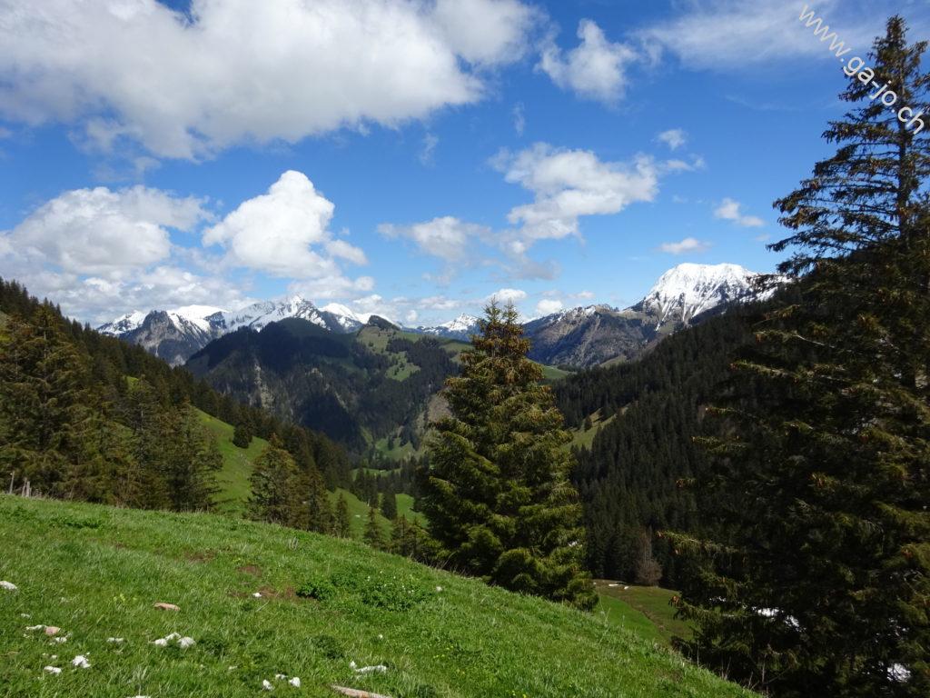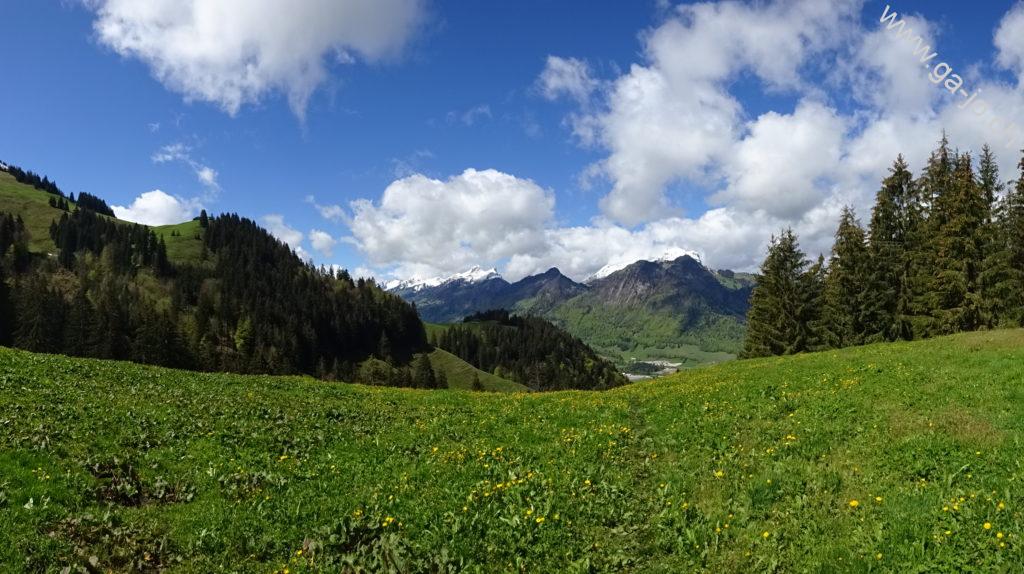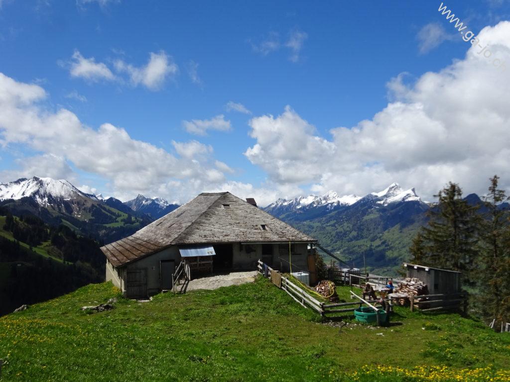 Nous étions parti dans l’idée de monter à la dent du Bourgo mais avec les conditions présentes en ce mois de mai nous nous sommes arrêtés au chalet de Vacheresse. Quoi qu’il en soit, cette randonnée nous emmène à travers forêts et pâturages avec une très belle vue sur les préalpes fribourgeoises.