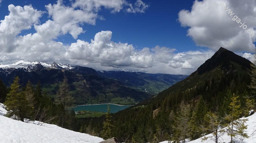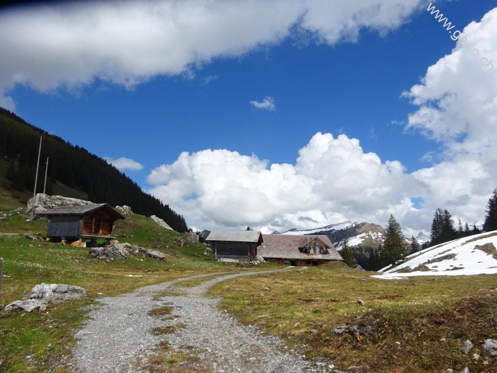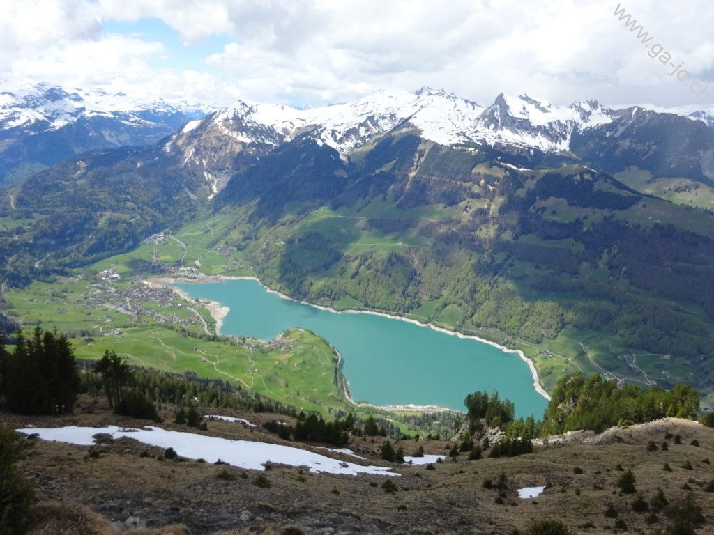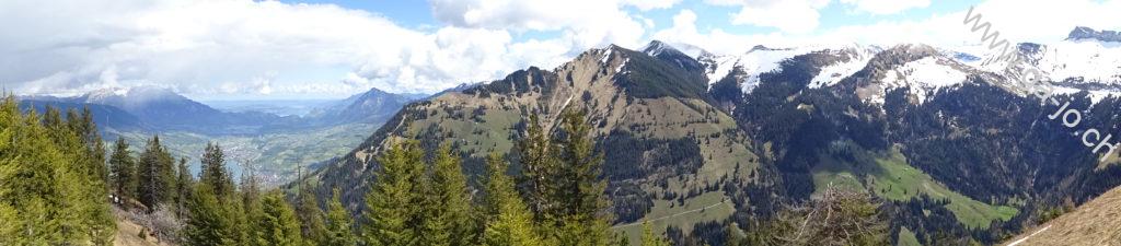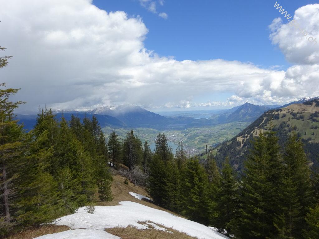 La descente est raide mais confortable sur un chemin bien marqué et bien entretenu. On rejoint un chemin forestier jusqu’à Hütstett sur lequel encore quelque névés et éboulis sont présents, rien d’inquiétant mais on reste tout de même prudents. Ensuite, la descente continue gentiment entre pâturages, forêts et routes d’alpage jusqu’au col du Brünig pour prendre un train en direction de Meiringen. Derrière nous, on a encore une échappée sur le lac de Lungern et devant, au loin, le lac de Thoune pointe aussi le bout de son nez !