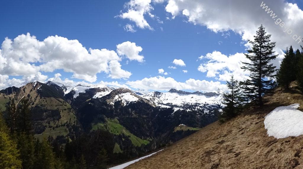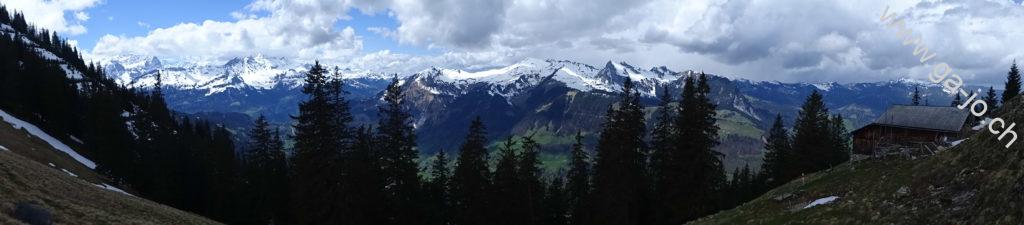 Magnifique ascension du Höh Grat dans le canton d’Obwald. On était parti dans l’idée de poursuivre par l’arrête et le sommet du Güpfi, mais les conditions encore bien neigeuses de ce mois de mai nous ont un peu freinés. Attention toutefois, la montées est assez exigeante, certains passages sont bien exposés et le chemin n’est pas toujours facile à trouver. La forêt atténue un peu la sensation de vide mais la falaise est bien là, pas loin, à plusieurs endroits le faux-pas est interdit.