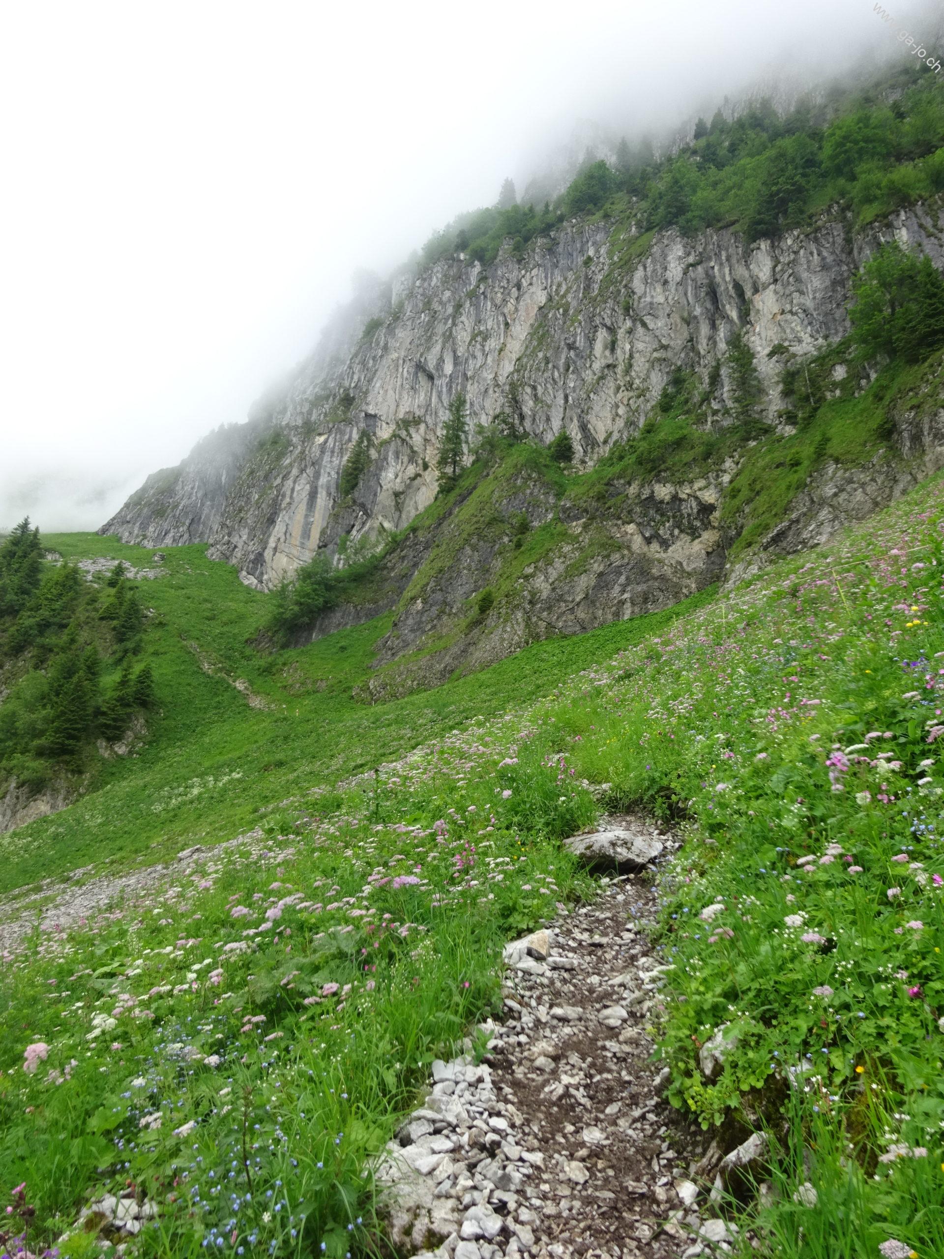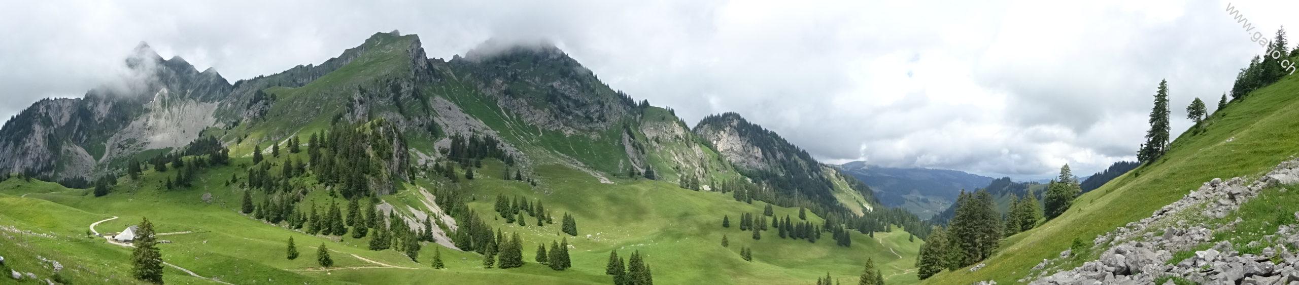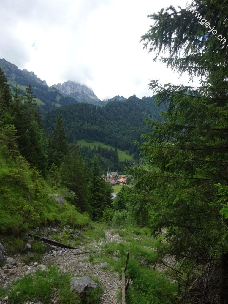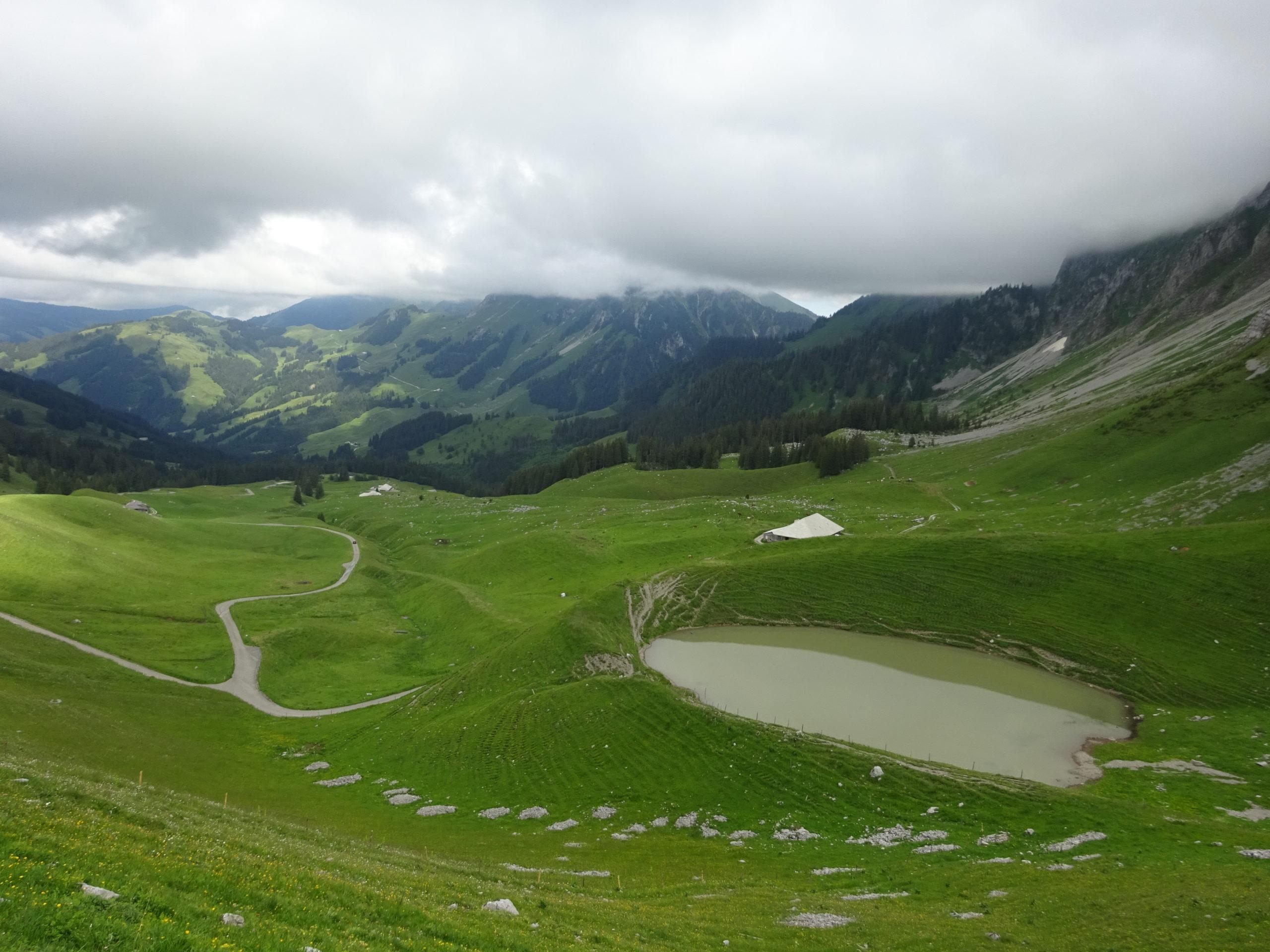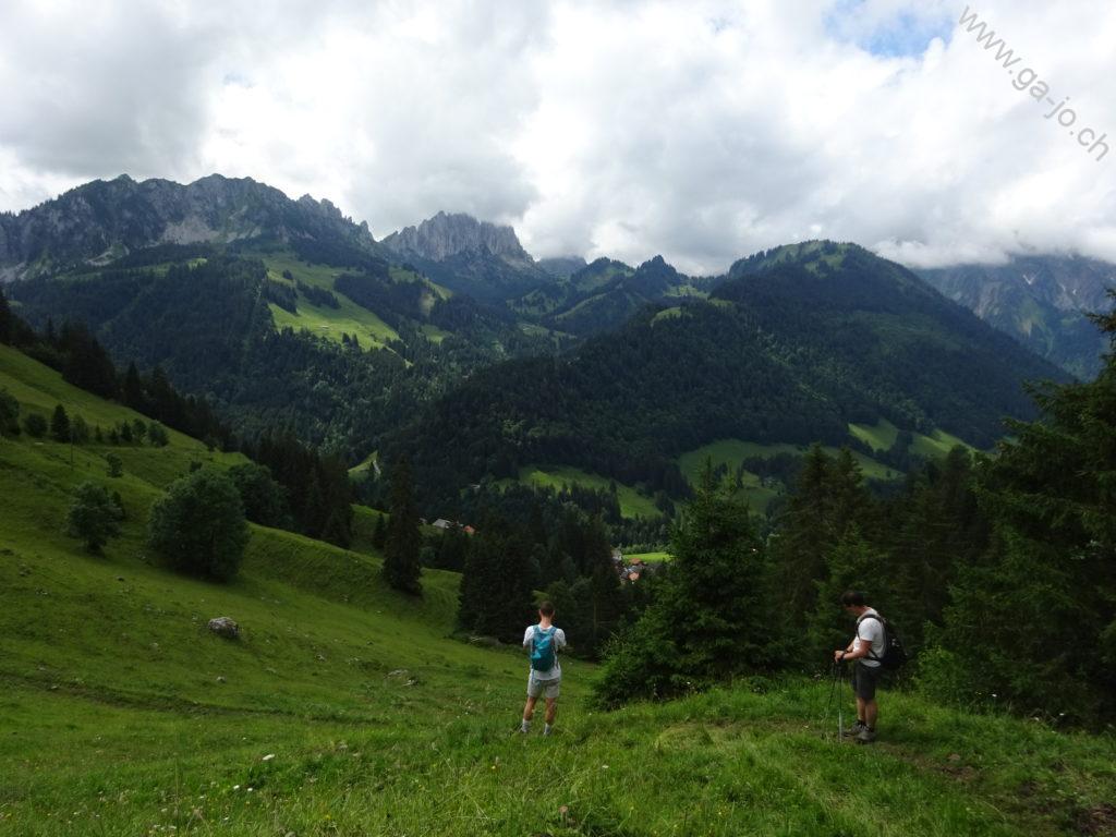 Au départ de Jaun nous sommes encore sous le soleil. Les pluies des derniers jours ont laissé quelques traces sur le sentier parfois bien boueux. On se dirige donc au N sur le chemin montant à Euschels, sans grande difficulté.