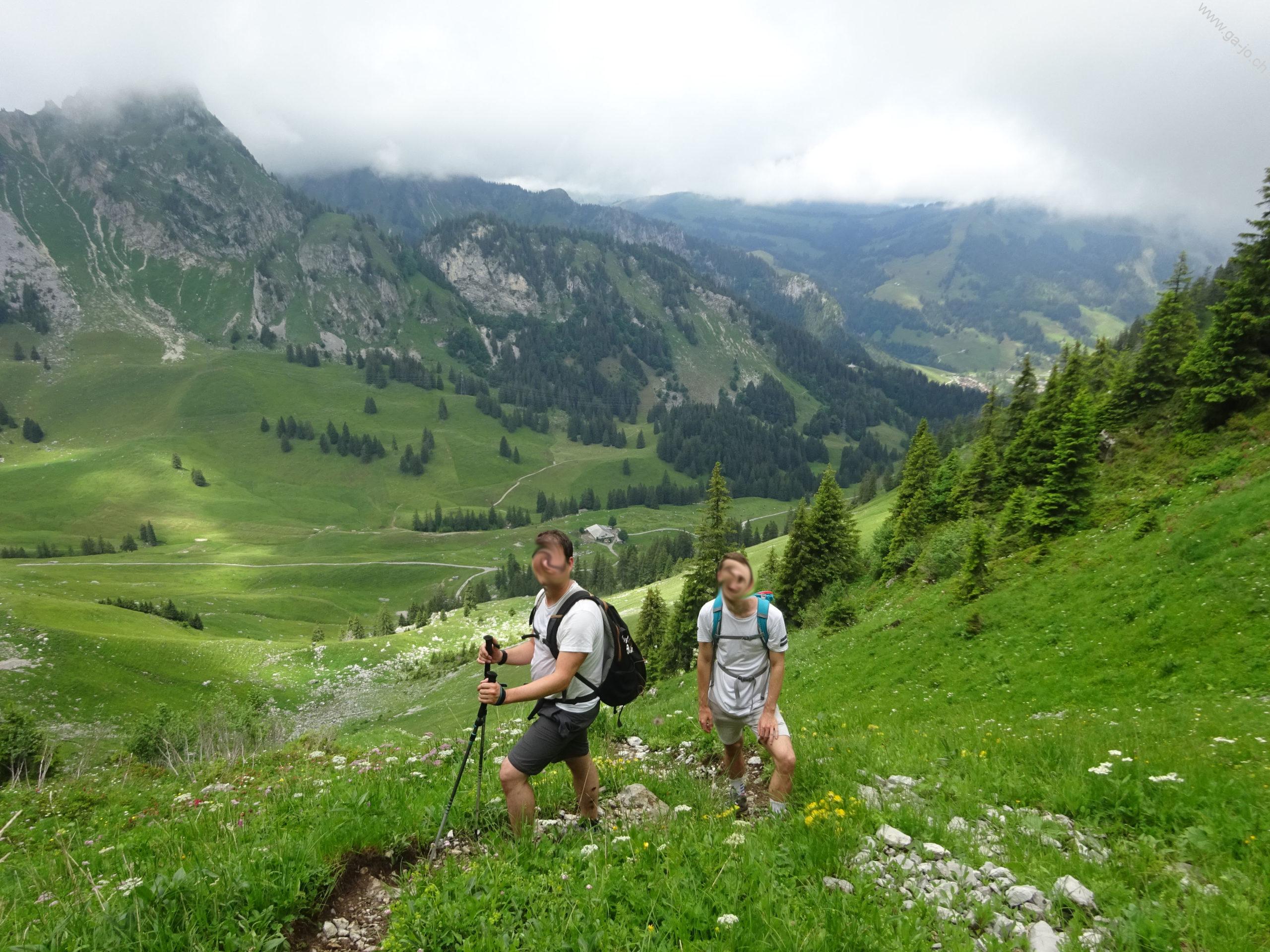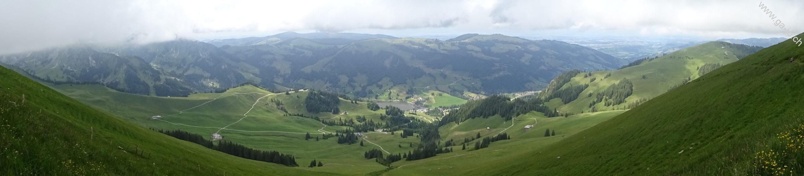 Relier Jaun au Lac noir est une randonnée assez commune et plutôt facile, afin de la corser un peu nous décidons de faire un petit crochet par le sommet du Kaiseregg en passant par le collet de Golmli et en suivant les crêtes jusqu’au Kaisereggpass. La météo était annoncée vers le beau temps, mais les nuages se sont finalement accrochés jusque tard dans la journée nous gâchant un peu (beaucoup) la vue prévue. Aussi nous n’avons même pas poussé la marche jusqu’au sommet.