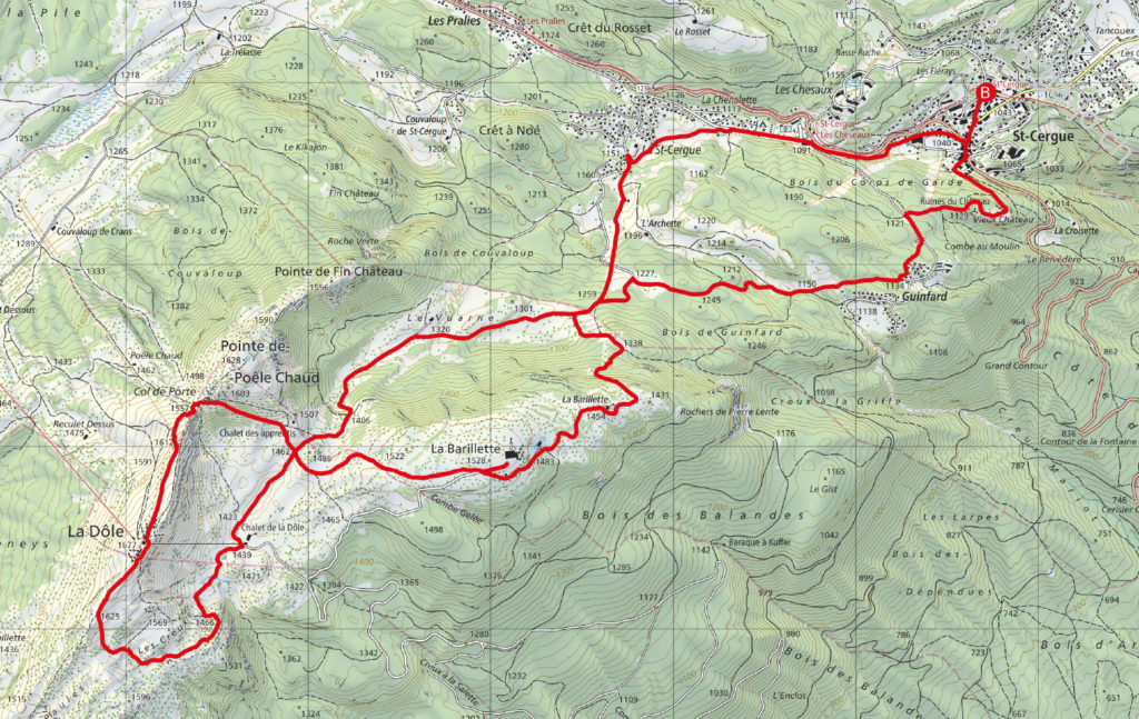 Départ donc de St-Cergue en direction de La Barillette par le chemin du Vieux Châteaux qui se situe directement au sud du village. L’arrivée à l’alpage puis au sommet de la Barillette se fait sans trop de difficulté.