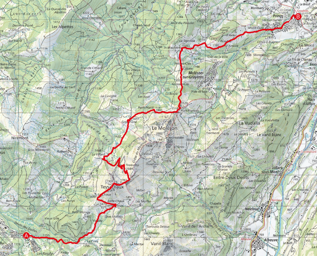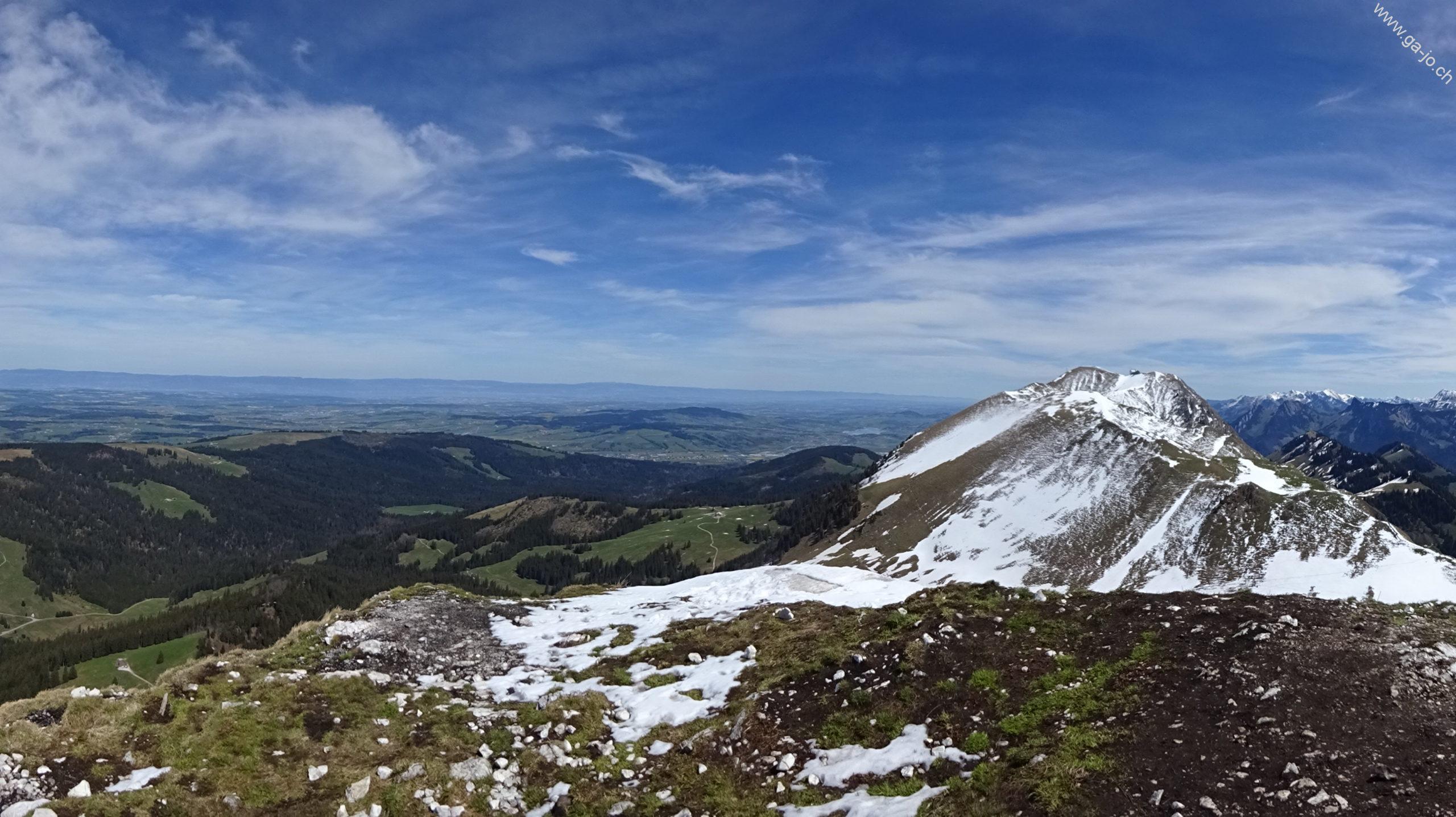 Enfant, de la fenêtre de ma chambre, j’avais une vue sur les préalpes fribourgeoises, avec bien évidemment en tête de liste le Moléson, la dent de Lys et aussi le Teysachaux. Ce week-end est annoncé beau et chaud, la neige devrait avoir suffisamment fondu, c’est décidé ce sera l’ascension de ce dernier. Une randonnée pouvant facilement être combinée avec le sommet du Moléson, si les conditions le permettent. Ce ne sera pas pour cette fois-ci, mais on poussera malgré tout jusqu’à Gruyères.