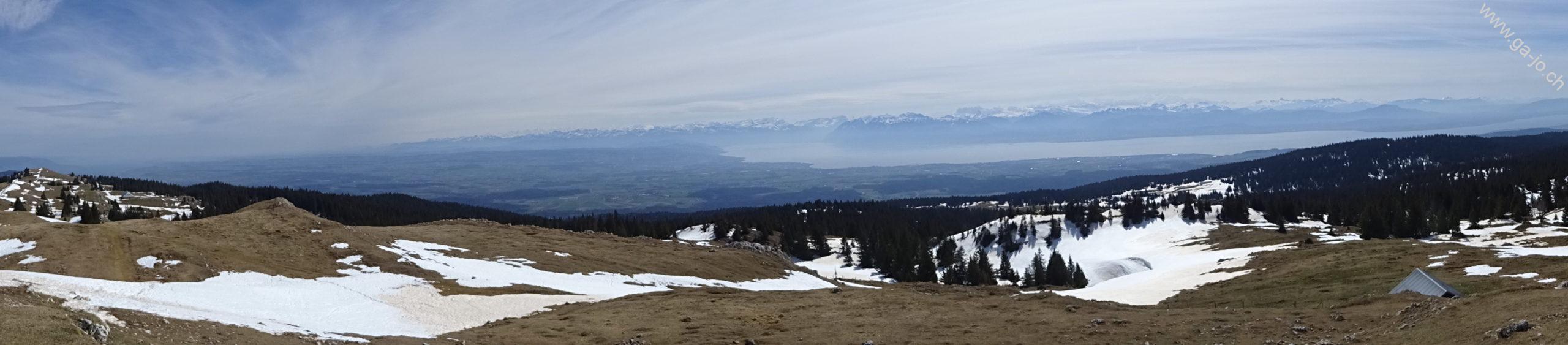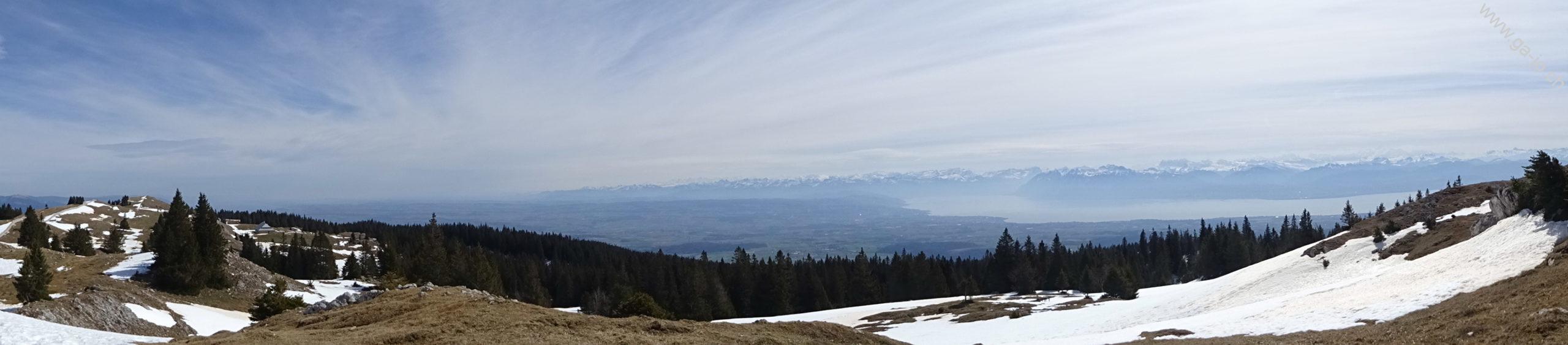 Départ de la gare de Montricher, située à environ 1km du centre du village, il est éventuellement possible d’y arriver en Bus. Une fois traversé on entre assez rapidement dans la forêt et la montée commence sérieusement jusqu’à l’alpage de Pré-Enselme. Un petit coup d’œil derrière nous pour admirer la vue sur le Léman et on repart.