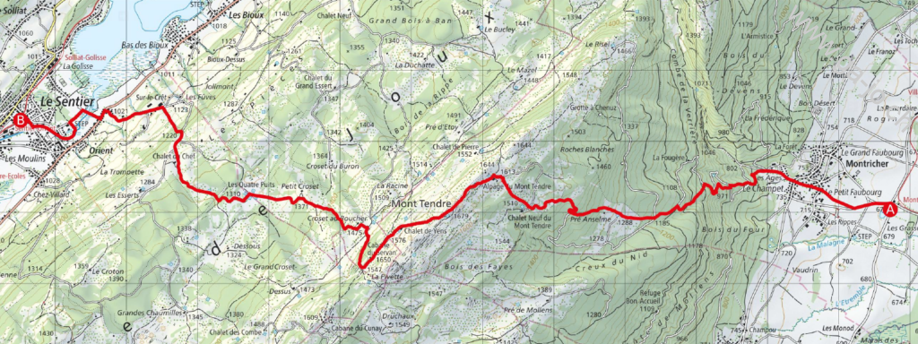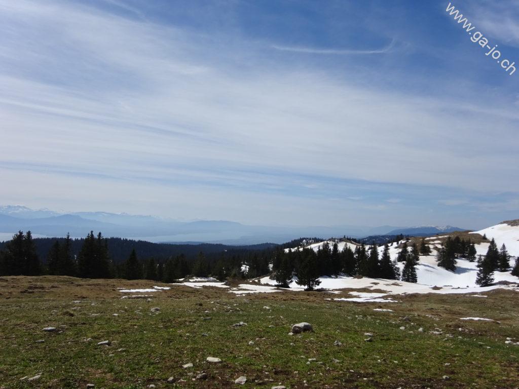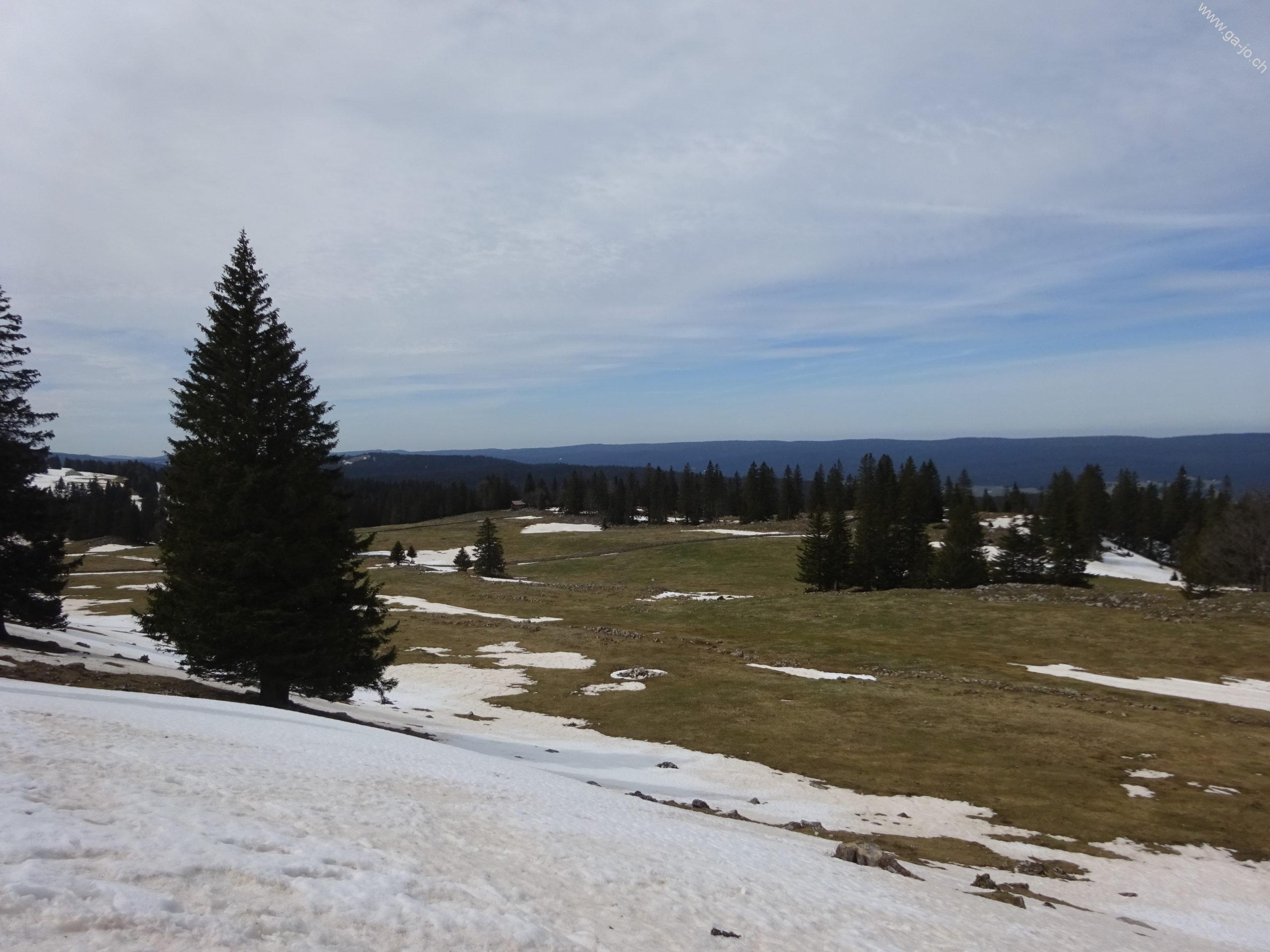 Il y a beaucoup de chemins différents qui mènent au sommet du Jura Suisse mais peu d’entre eux sont vraiment atteignables en transports publics. L’itinéraire proposé ici part de la gare de Montricher et se termine à la gare du Sentier, dans la Vallée de Joux. Le sentier est plutôt facile d’accès, on a néanmoins rencontré un ou deux névés un peu glissants lors de cette sortie printanière. Le dénivelé quant à lui demande malgré tout un certain effort physique.