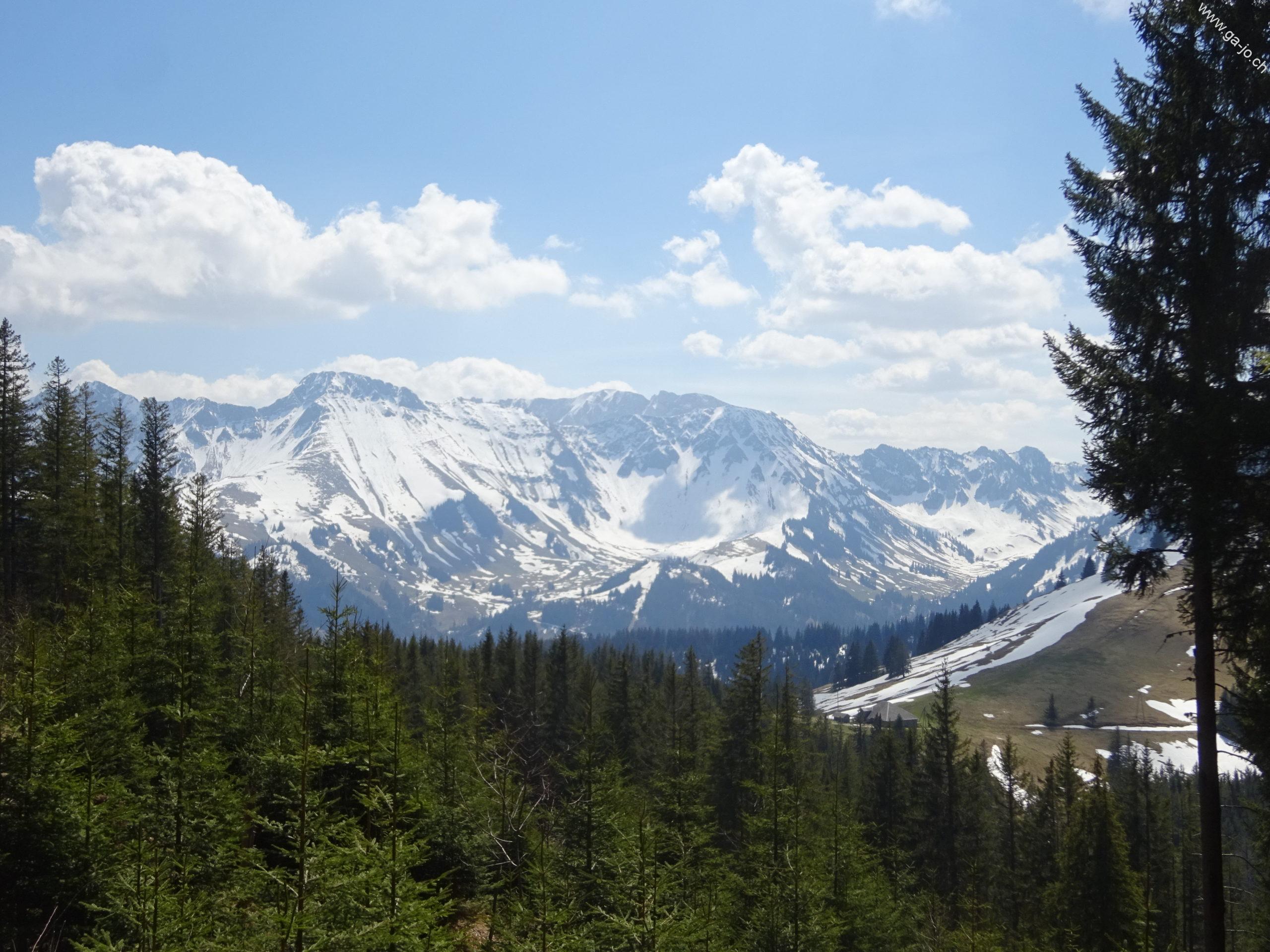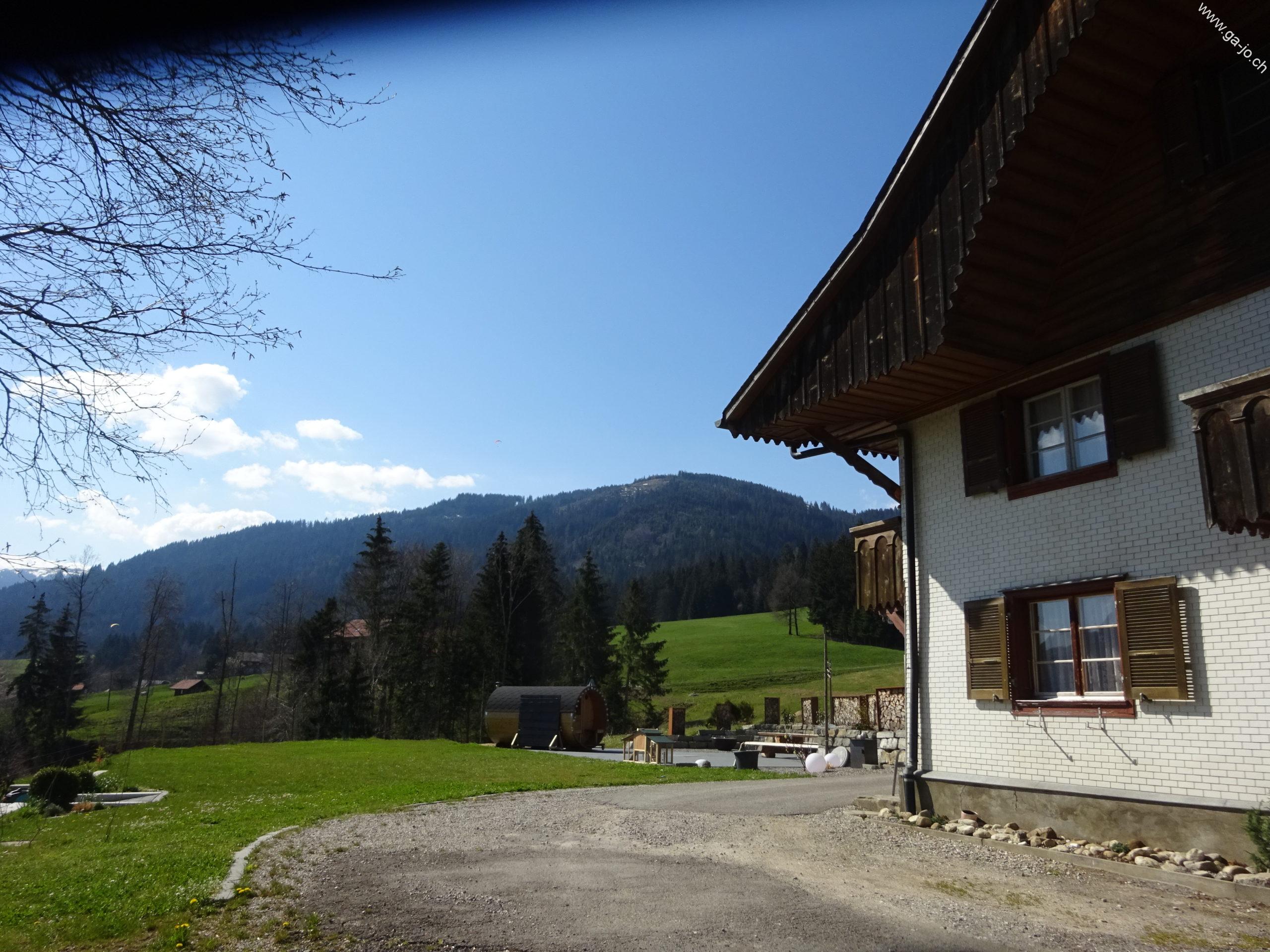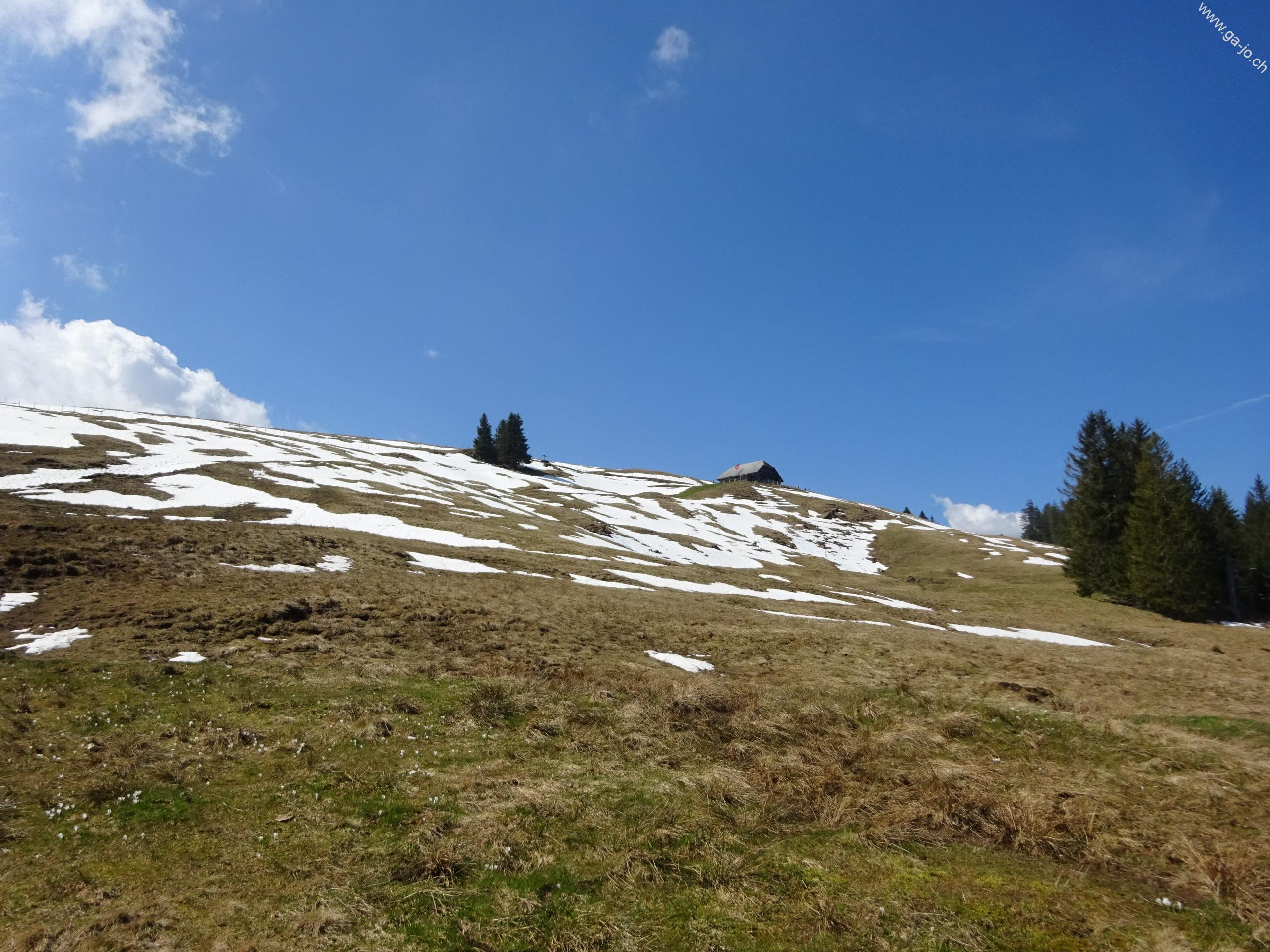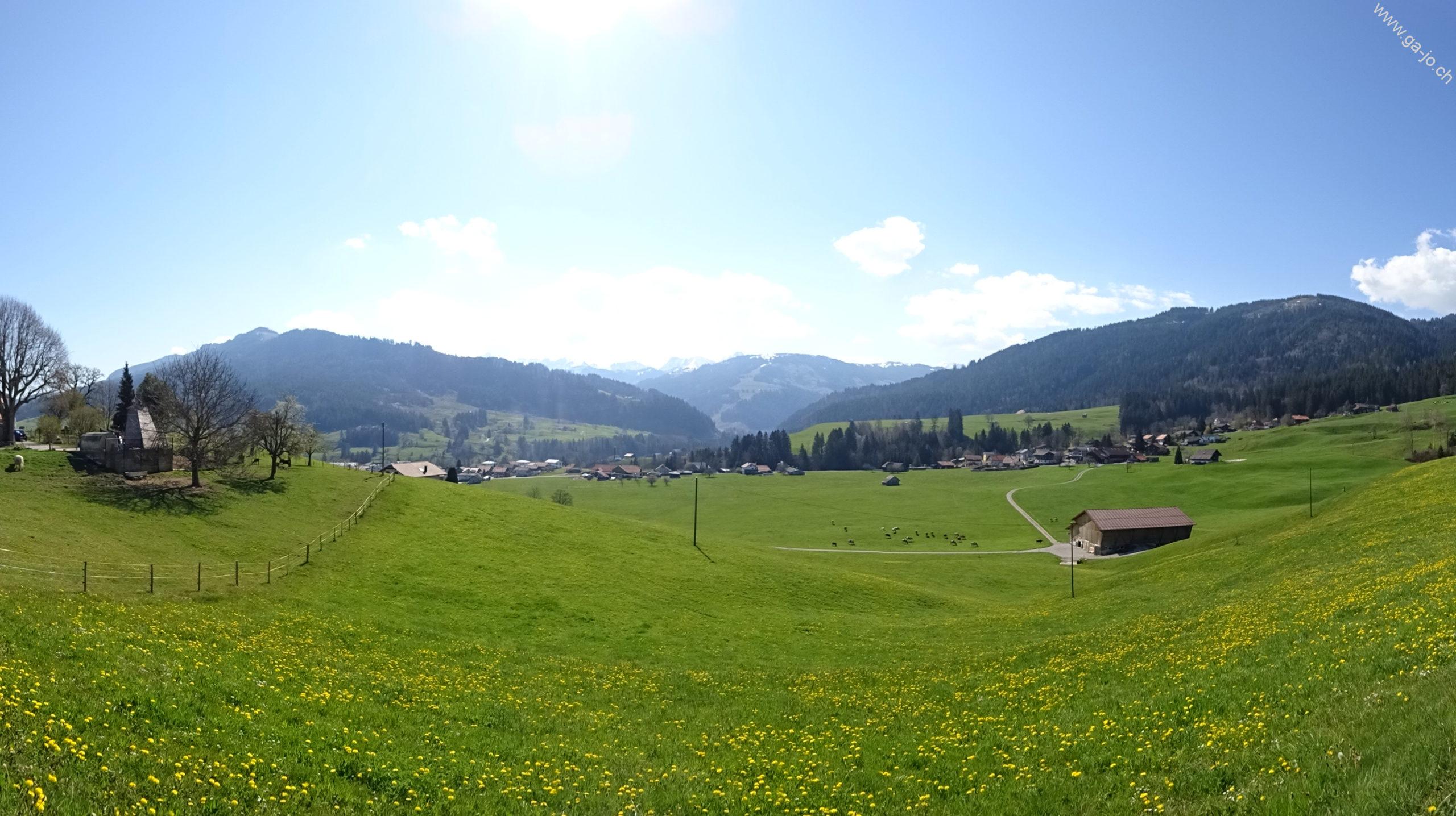 On part donc du centre de Plaffeien, à travers le village tout d’abord puis, on monte rapidement à travers champs via les chemins carrossables. Le sentier continue alors à travers la forêt jusqu’à rejoindre l’arrête au pt. 1230. Là la montée s’intensifie afin de rejoindre les pâturages de Lehmas Bärgli et de Blösch pour finalenent rejoindre le chalet du Gross Schwyberg.