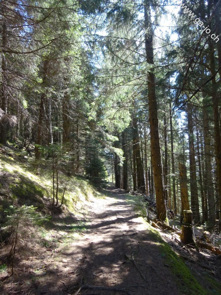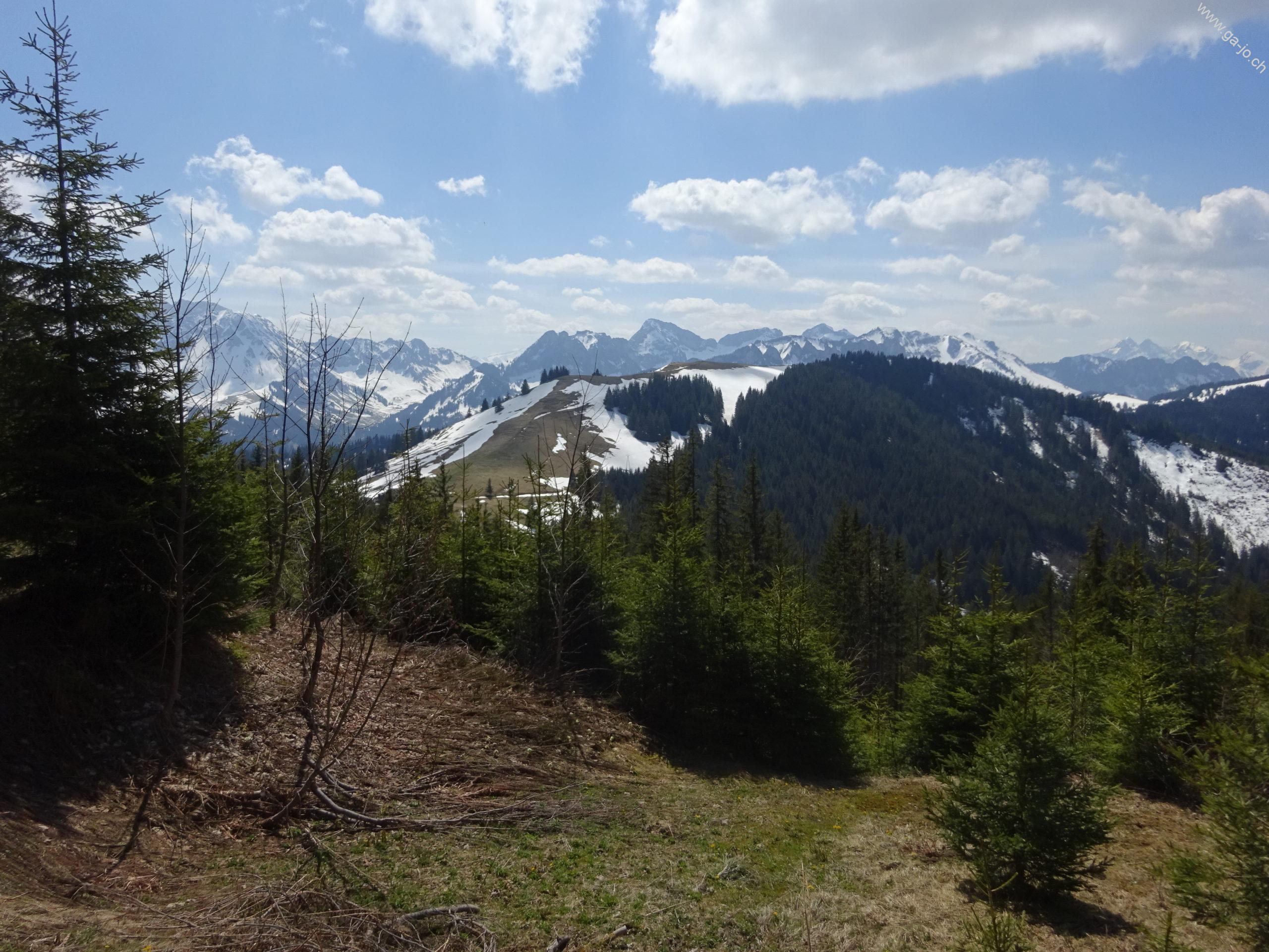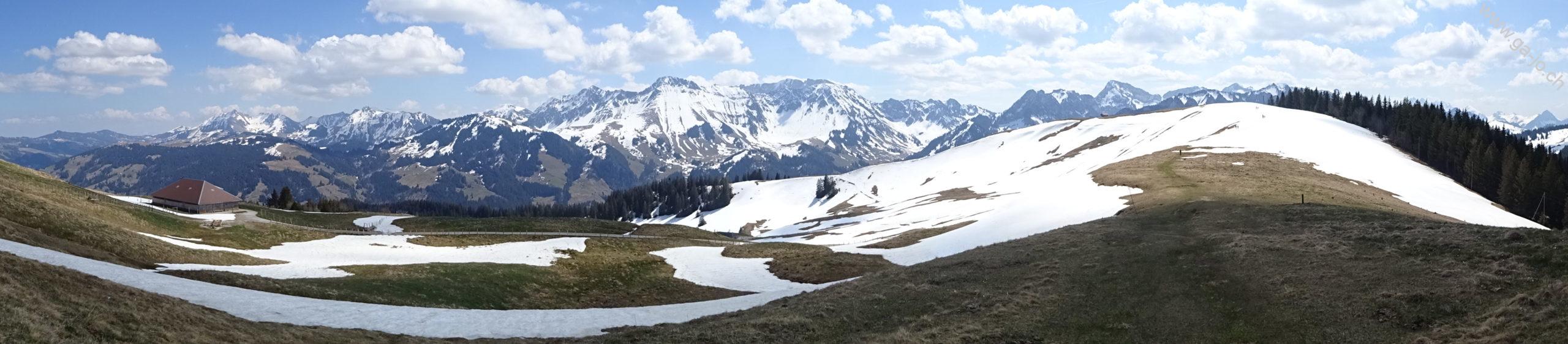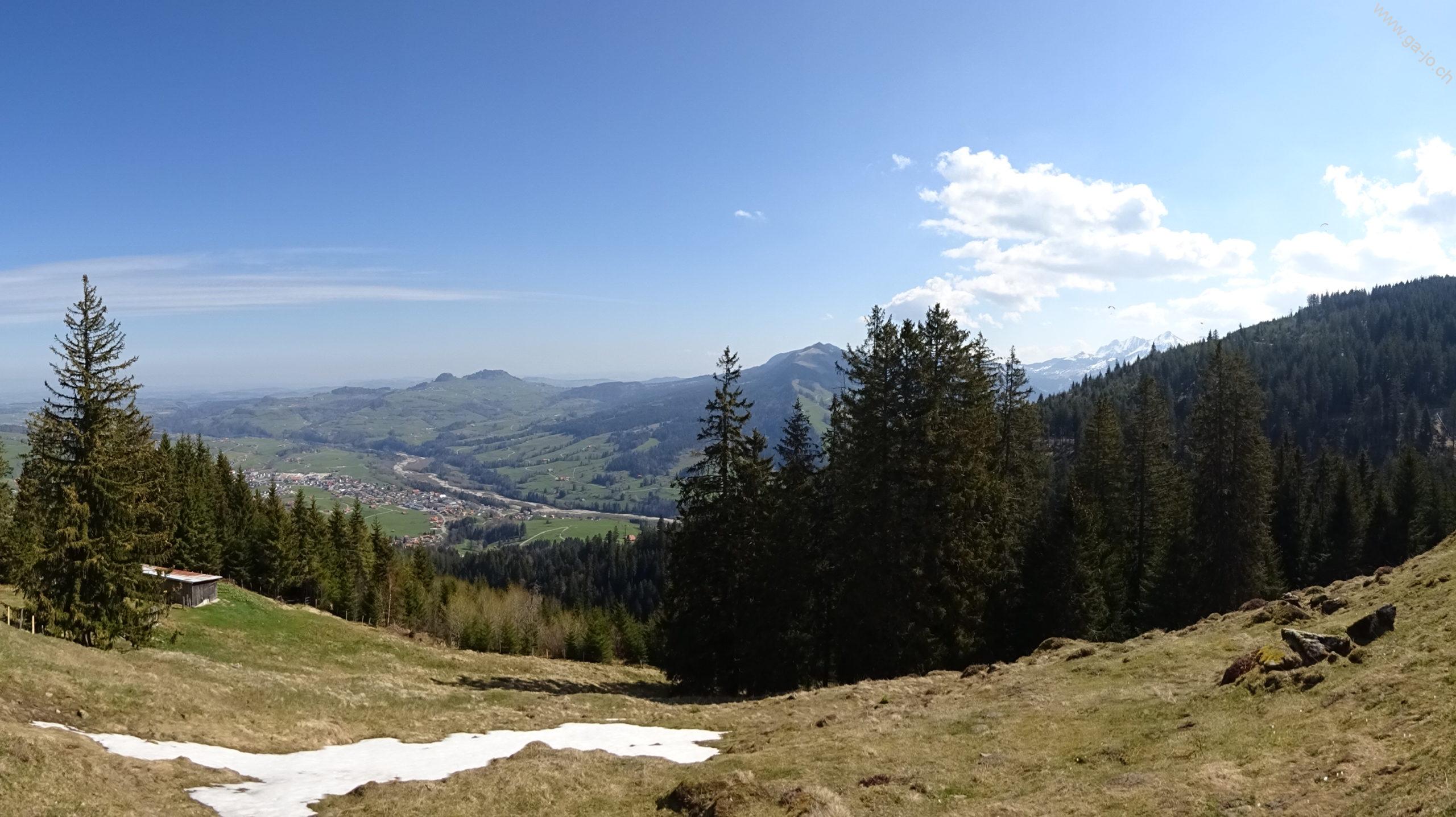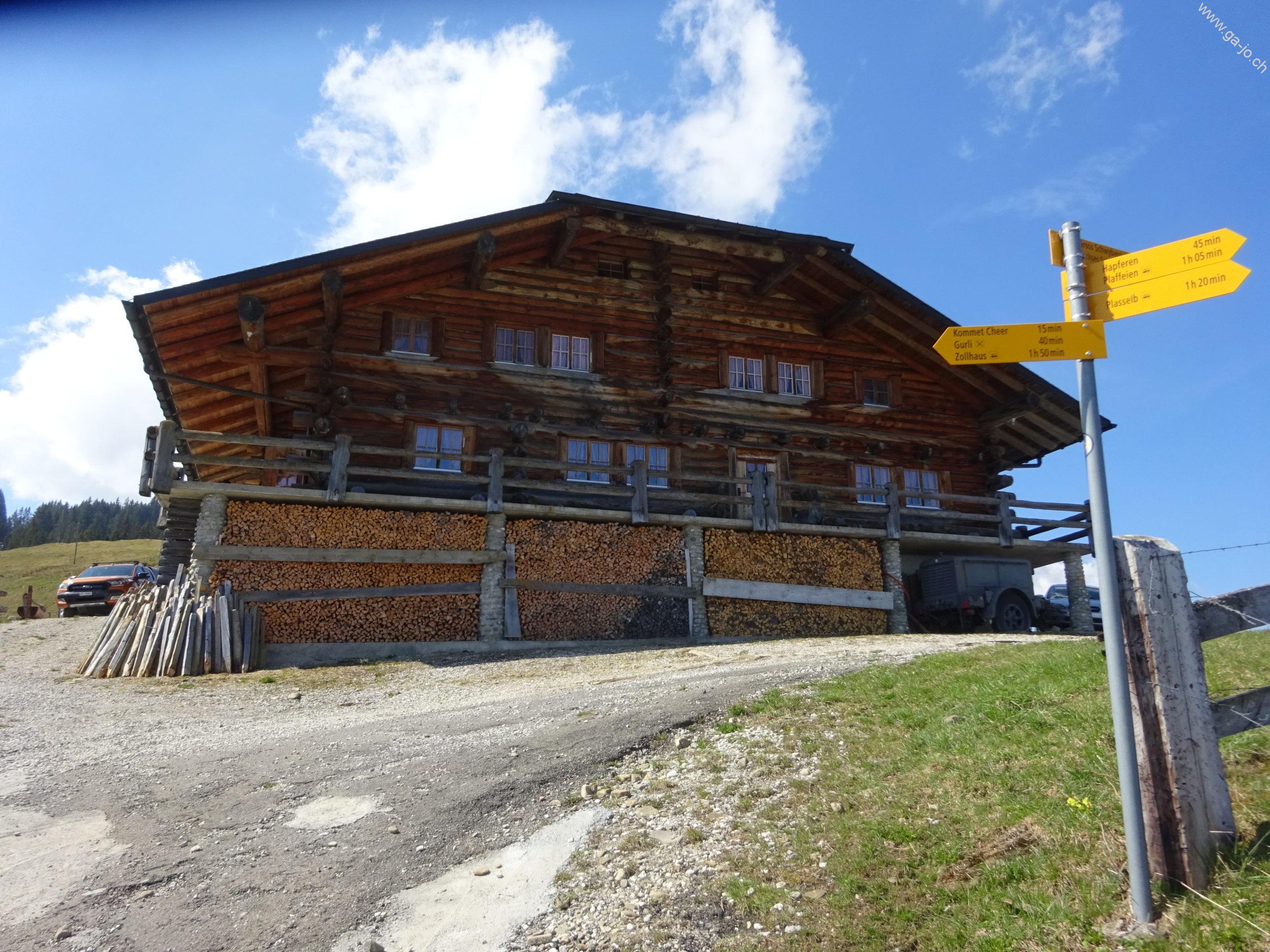 On part donc du centre de Plaffeien, à travers le village tout d’abord puis, on monte rapidement à travers champs via les chemins carrossables. Le sentier continue alors à travers la forêt jusqu’à rejoindre l’arrête au pt. 1230. Là la montée s’intensifie afin de rejoindre les pâturages de Lehmas Bärgli et de Blösch pour finalenent rejoindre le chalet du Gross Schwyberg.