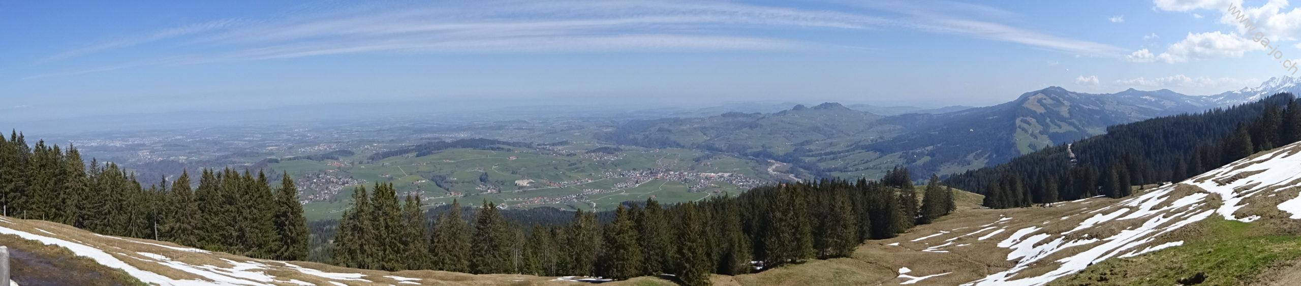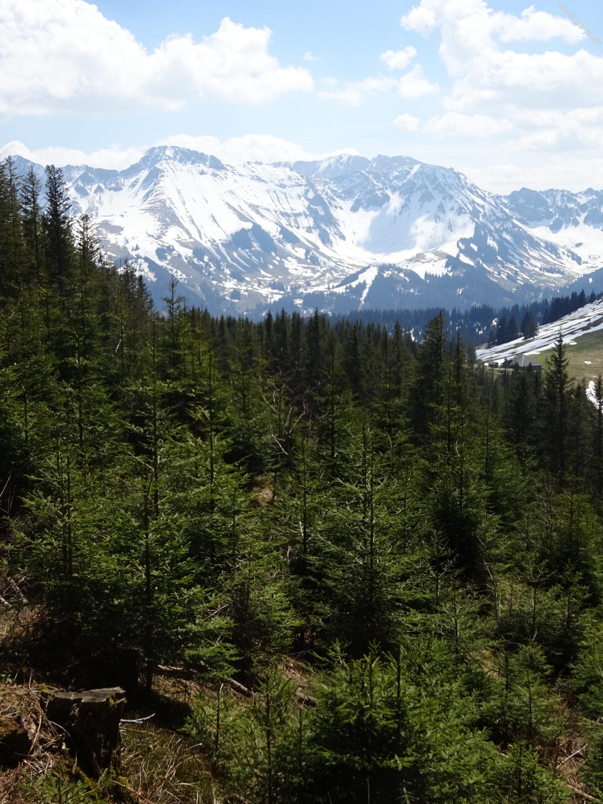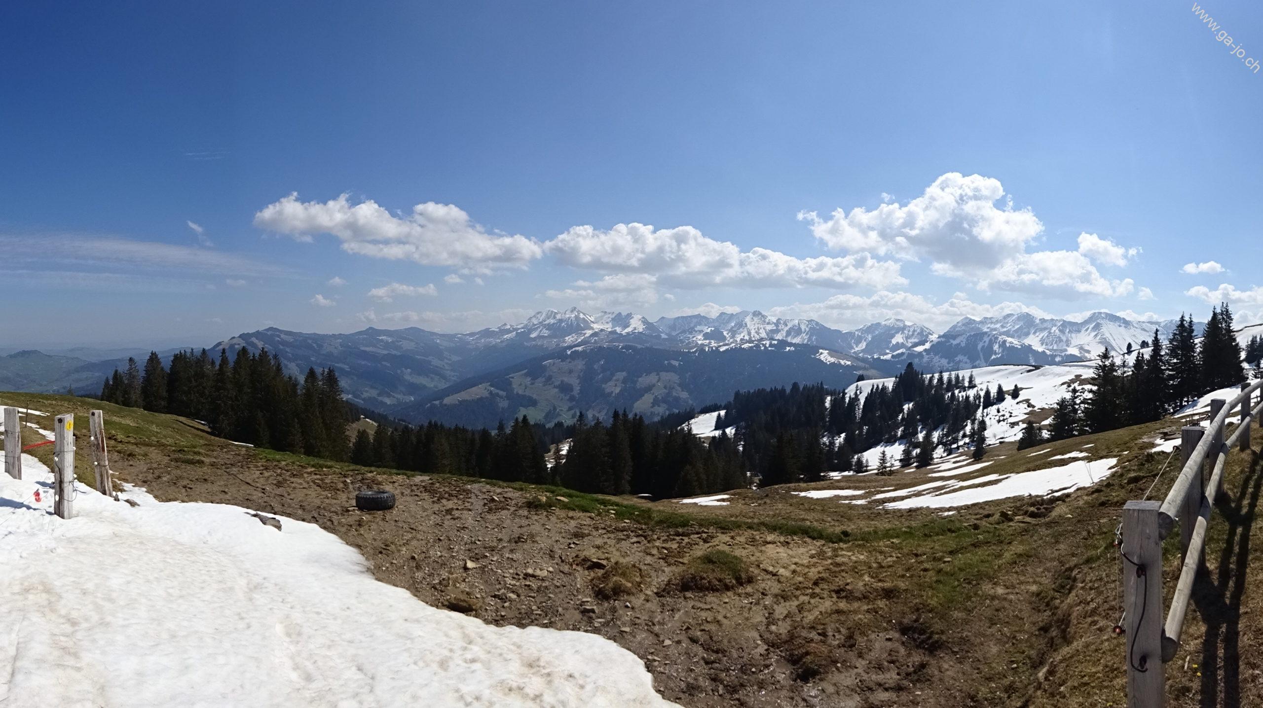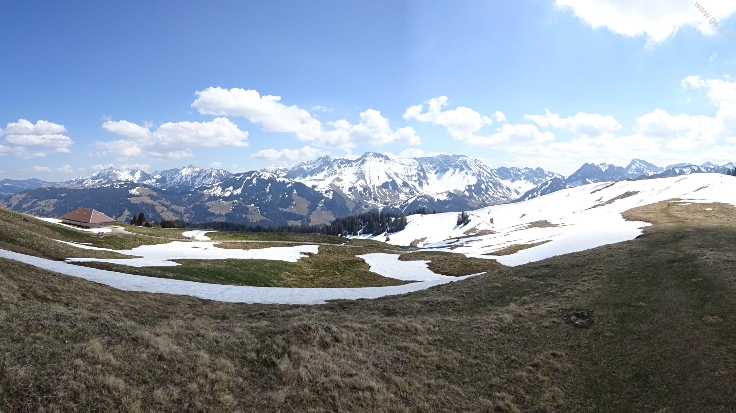 On part donc du centre de Plaffeien, à travers le village tout d’abord puis, on monte rapidement à travers champs via les chemins carrossables. Le sentier continue alors à travers la forêt jusqu’à rejoindre l’arrête au pt. 1230. Là la montée s’intensifie afin de rejoindre les pâturages de Lehmas Bärgli et de Blösch pour finalenent rejoindre le chalet du Gross Schwyberg.