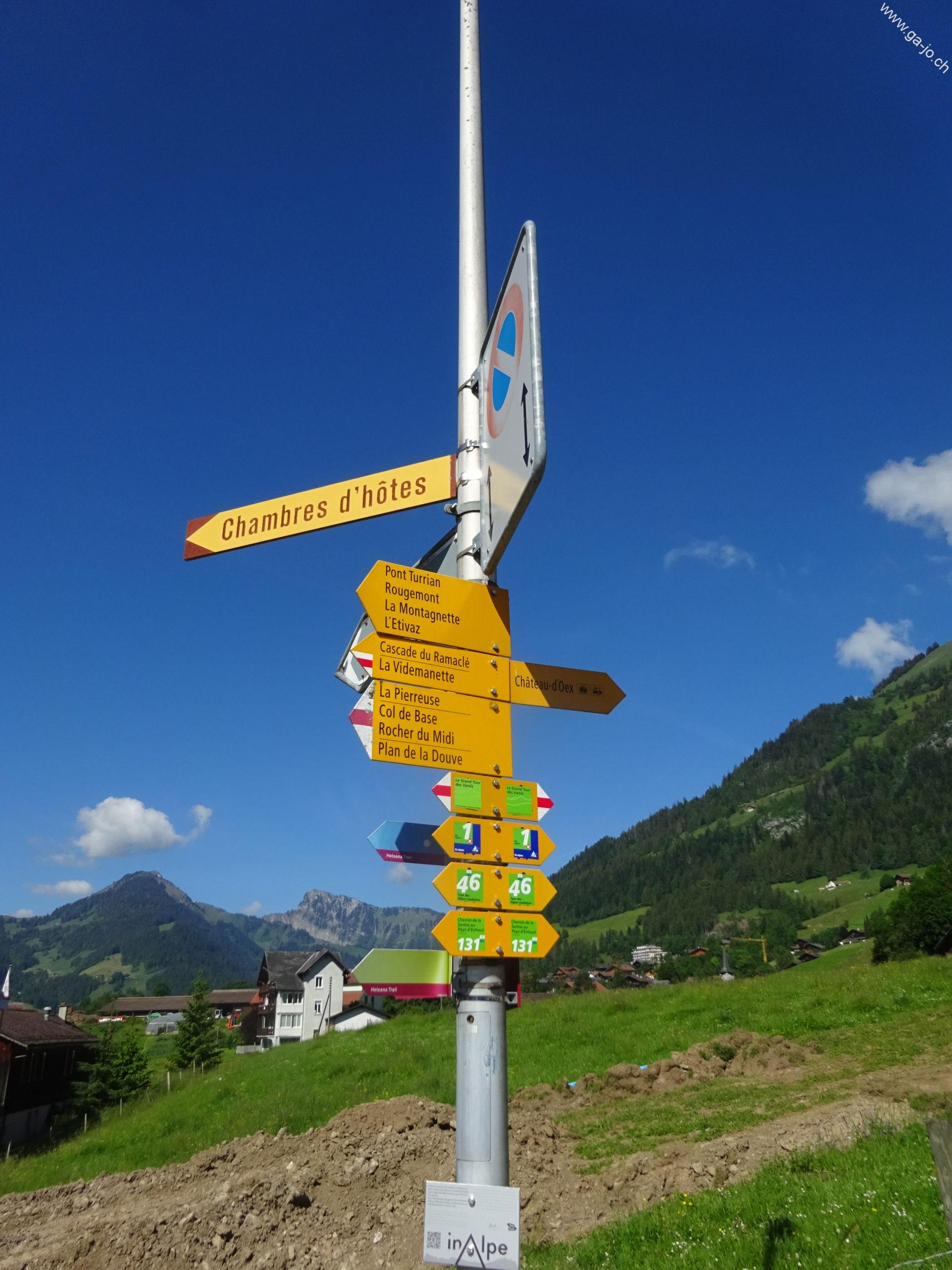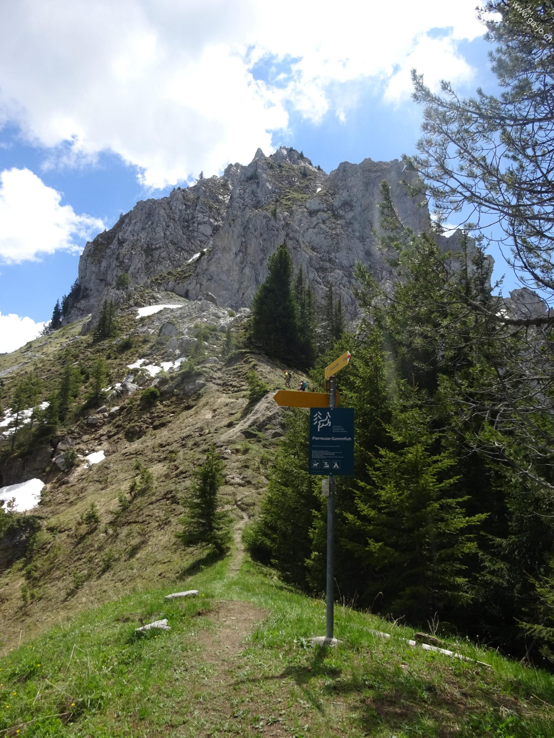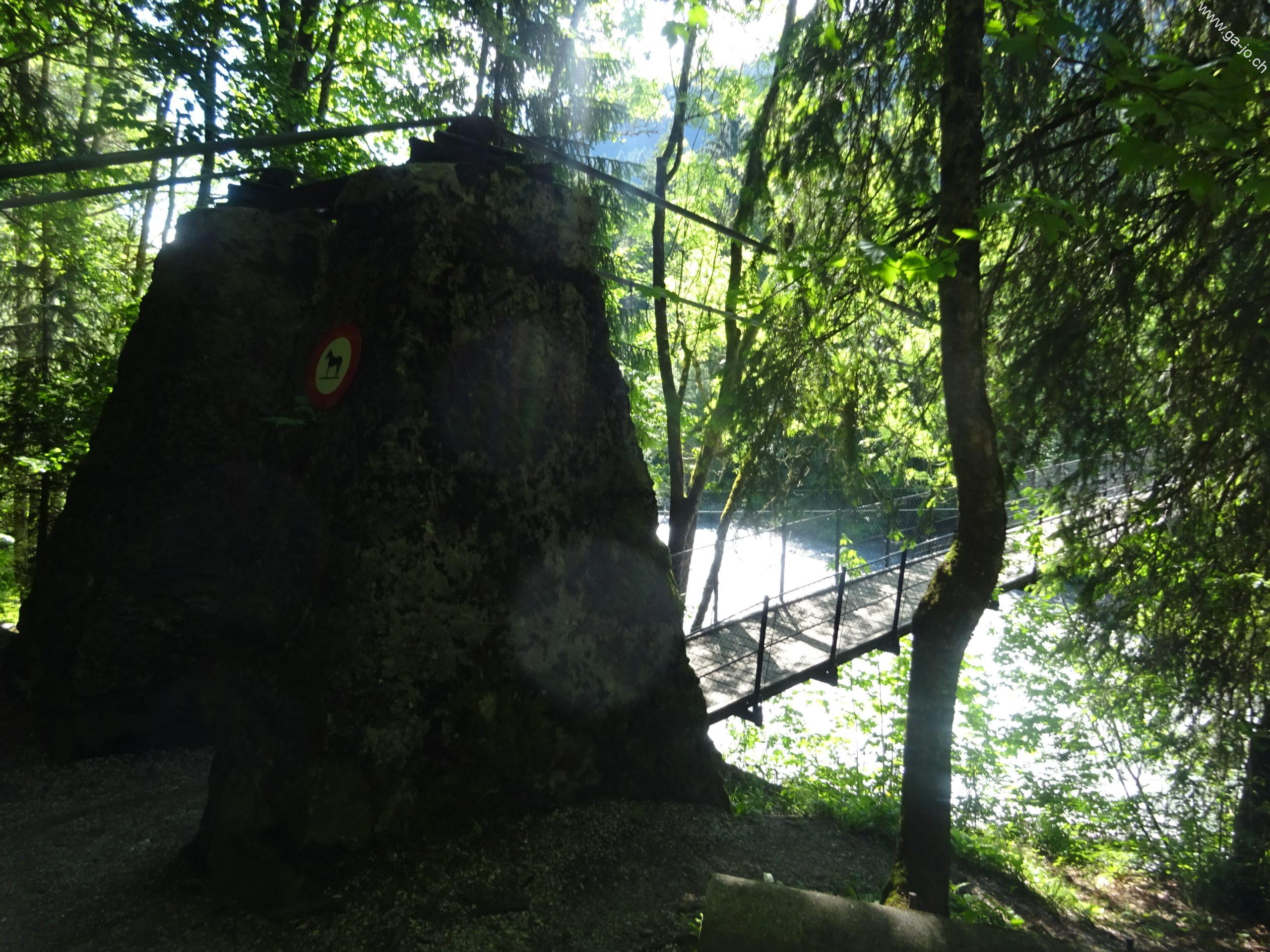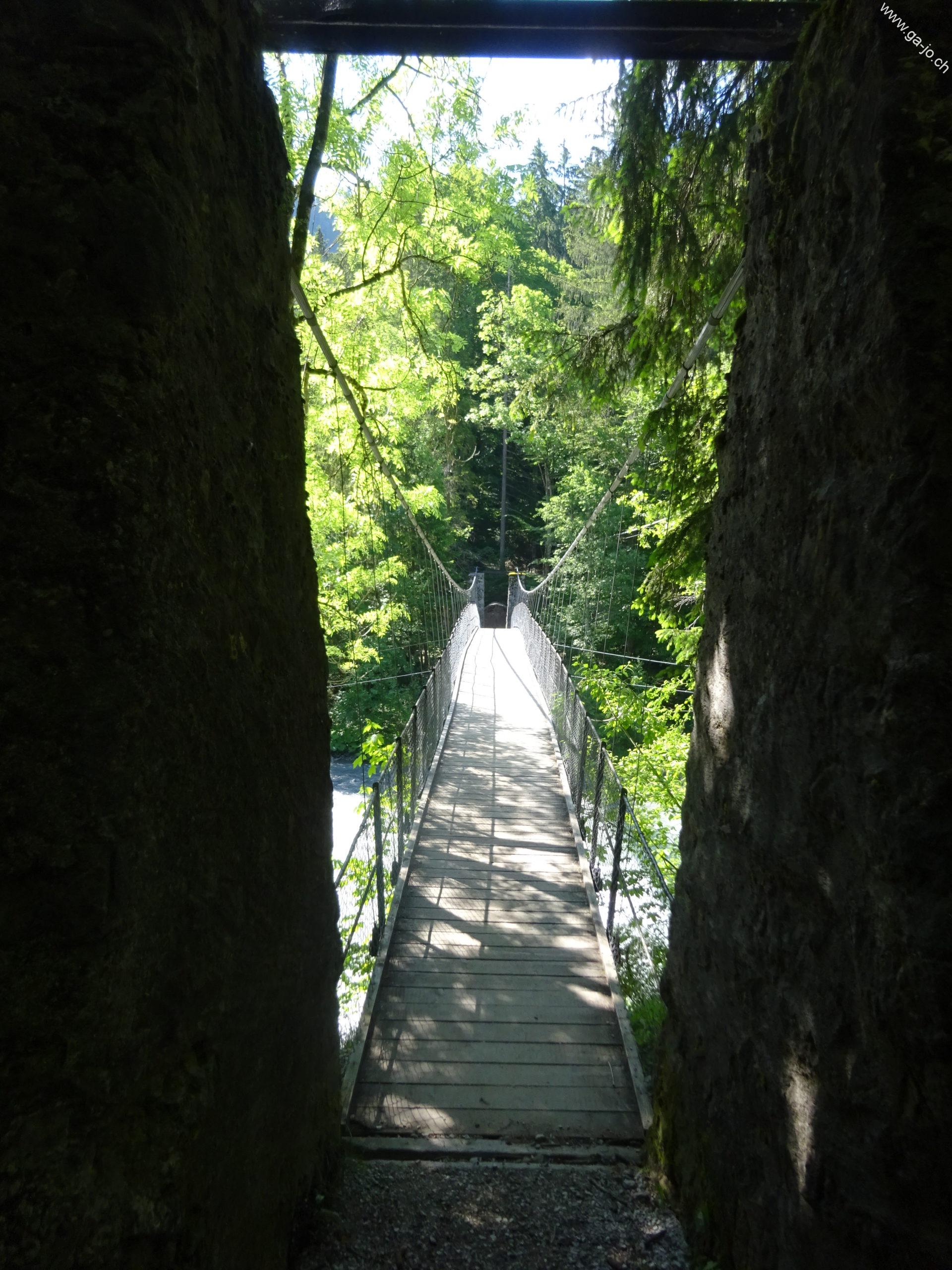 Dès le départ de Chateaux d’Œx direction sud, on peut observer l’objectif du jour et sa paroi semblant assez inhospitalière de prime abord. On doit suivre les indication en direction du Pont Turrian / La Montagnette. Le chemin descend en direction de la Sarine que nous traversons par le pont suspendu.