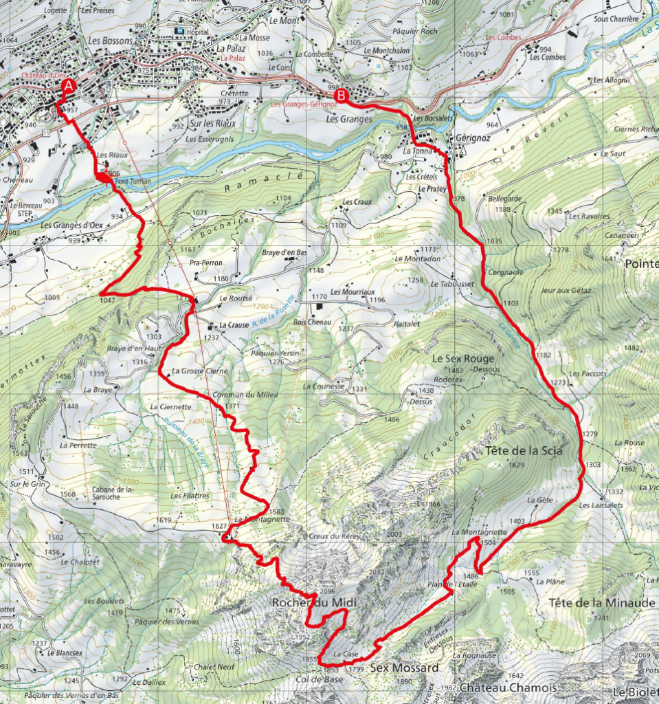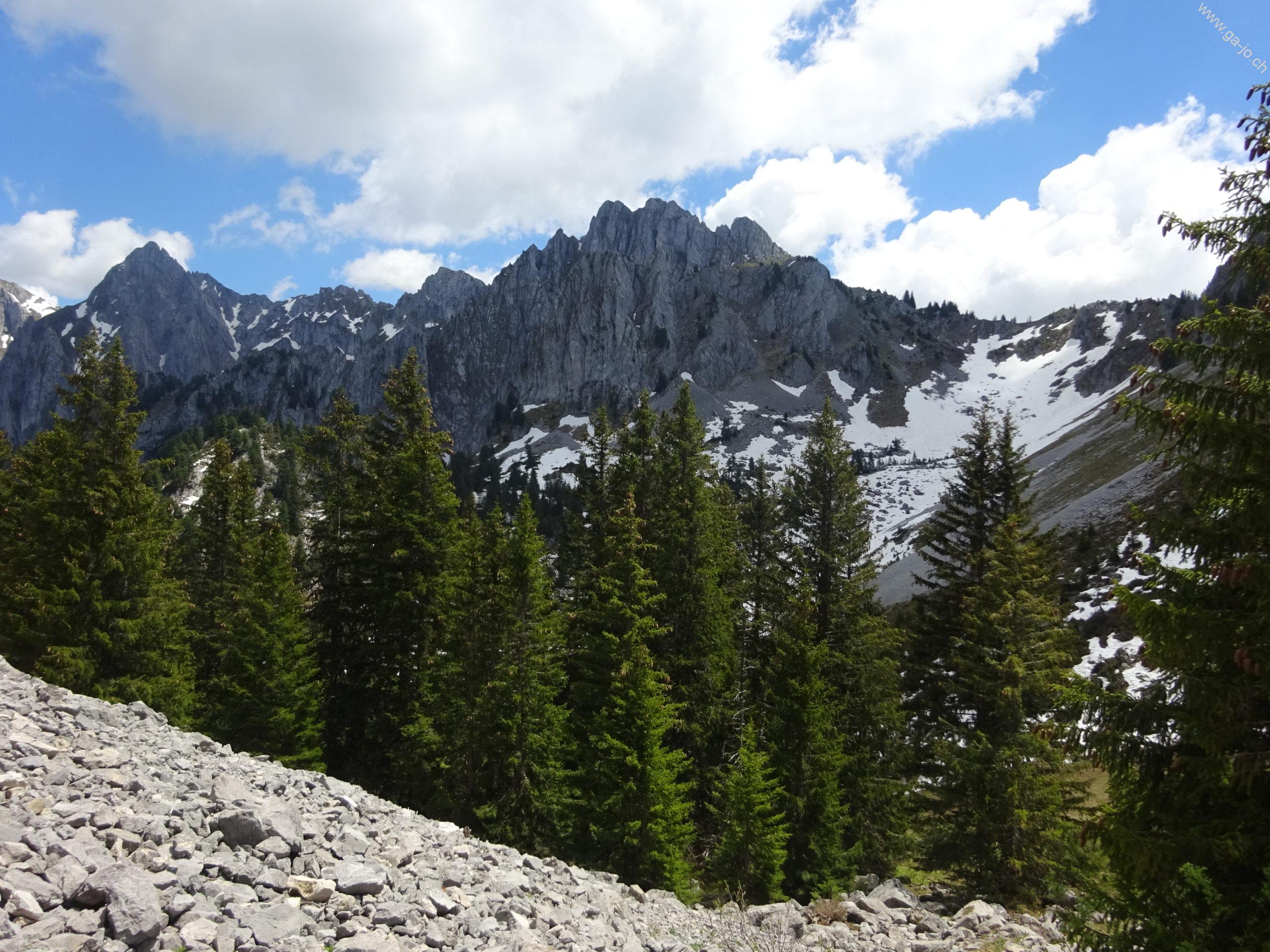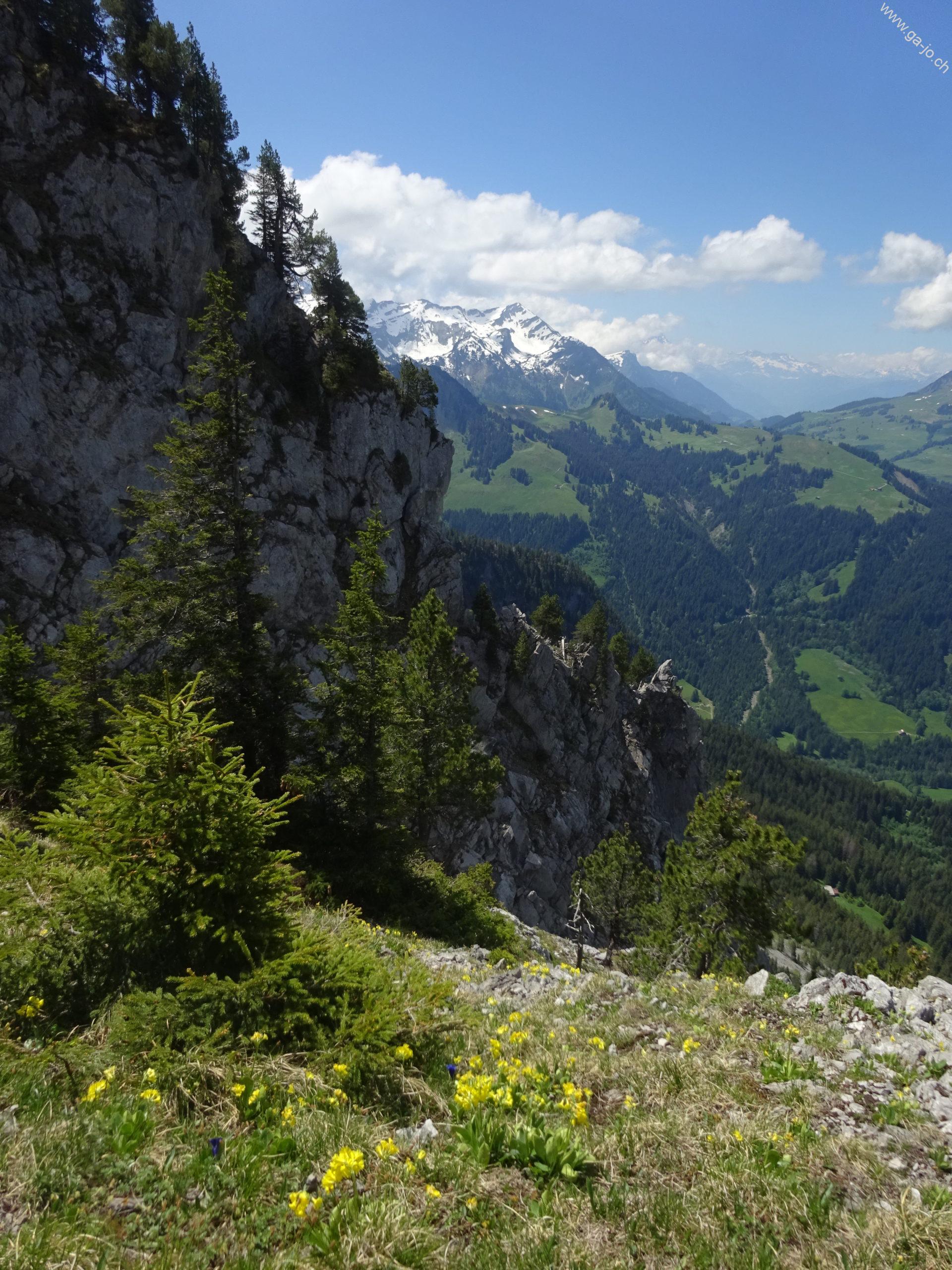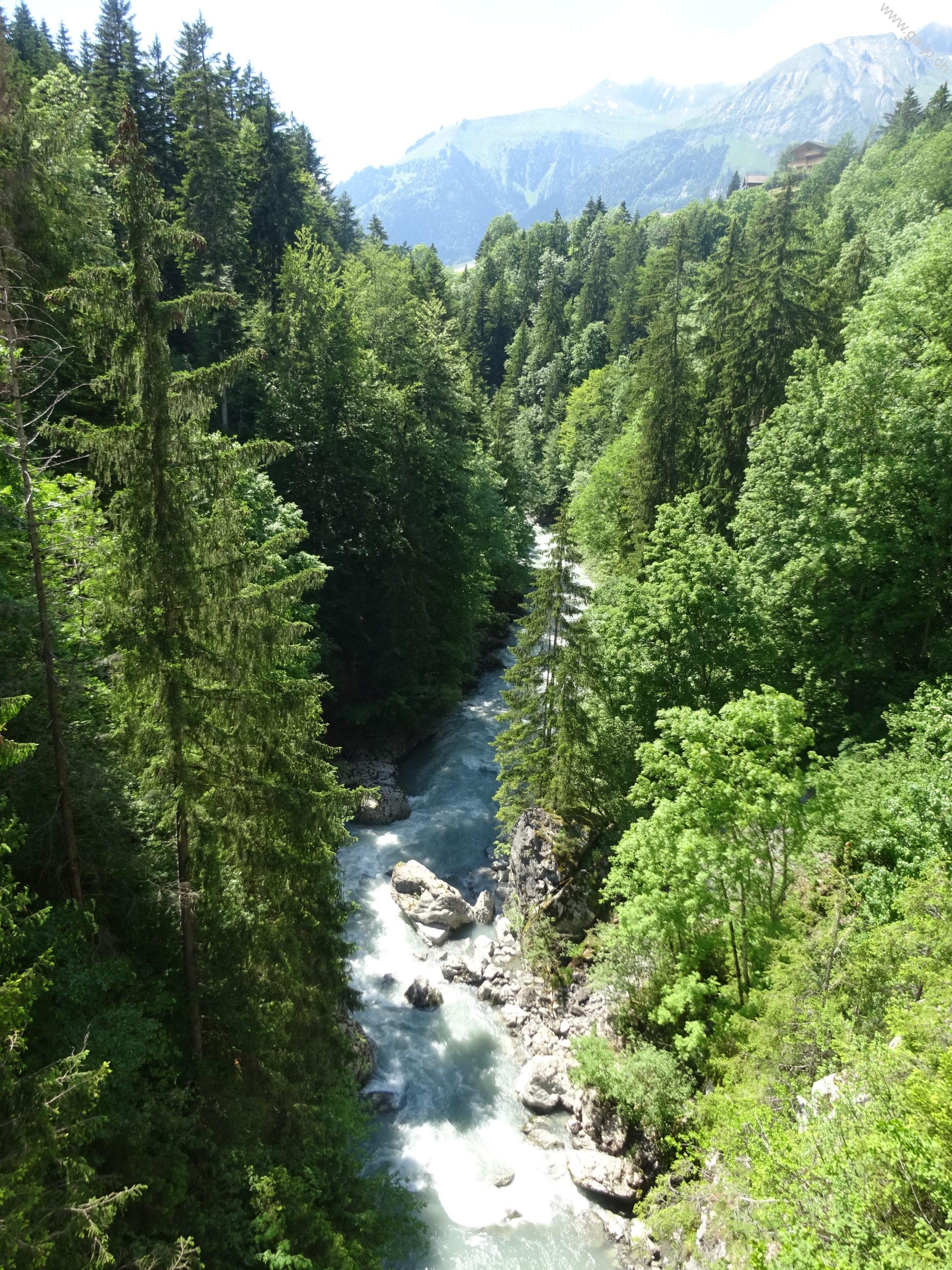 Dès le départ de Chateaux d’Œx direction sud, on peut observer l’objectif du jour et sa paroi semblant assez inhospitalière de prime abord. On doit suivre les indication en direction du Pont Turrian / La Montagnette. Le chemin descend en direction de la Sarine que nous traversons par le pont suspendu.