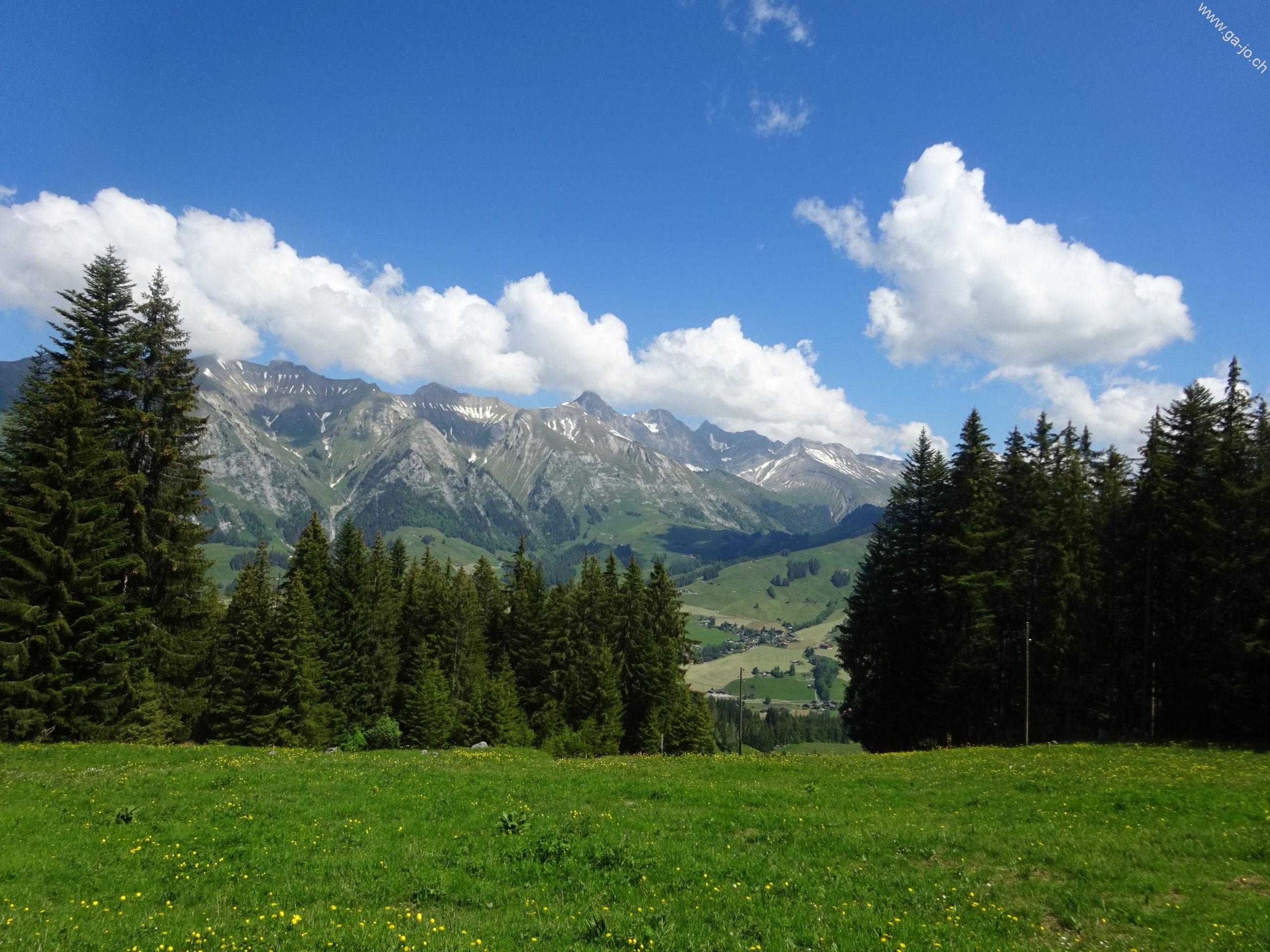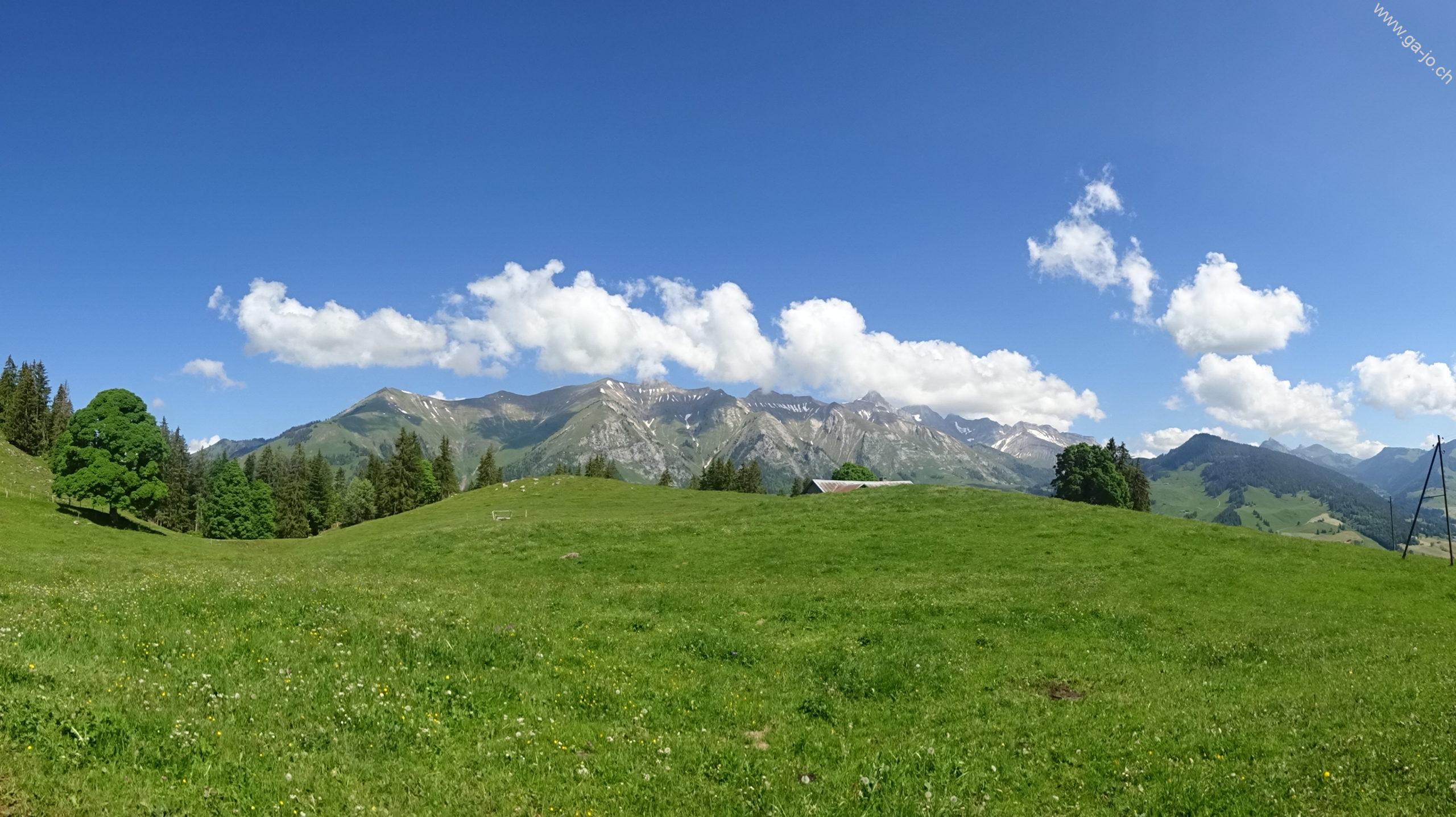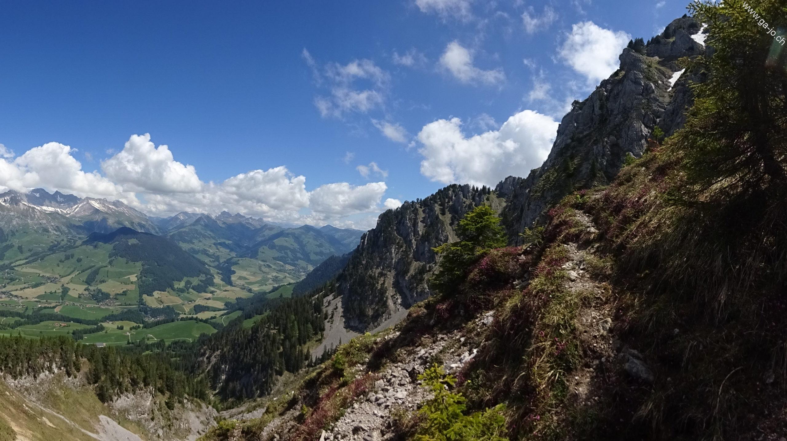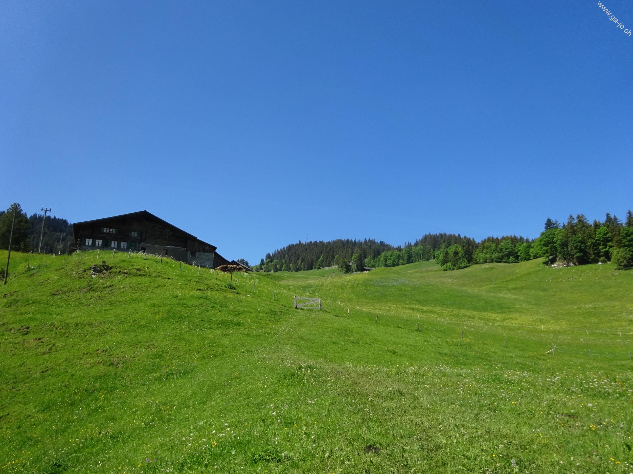 Nous prenons alors la direction de Châteaux-d’Œx par le Plan de l’Etalle et la Montagnette (qui n’est pas la même que celle passée précédemment) et finalement par la vallée de la Gérine… à travers les pâturages pas encore pâturés.