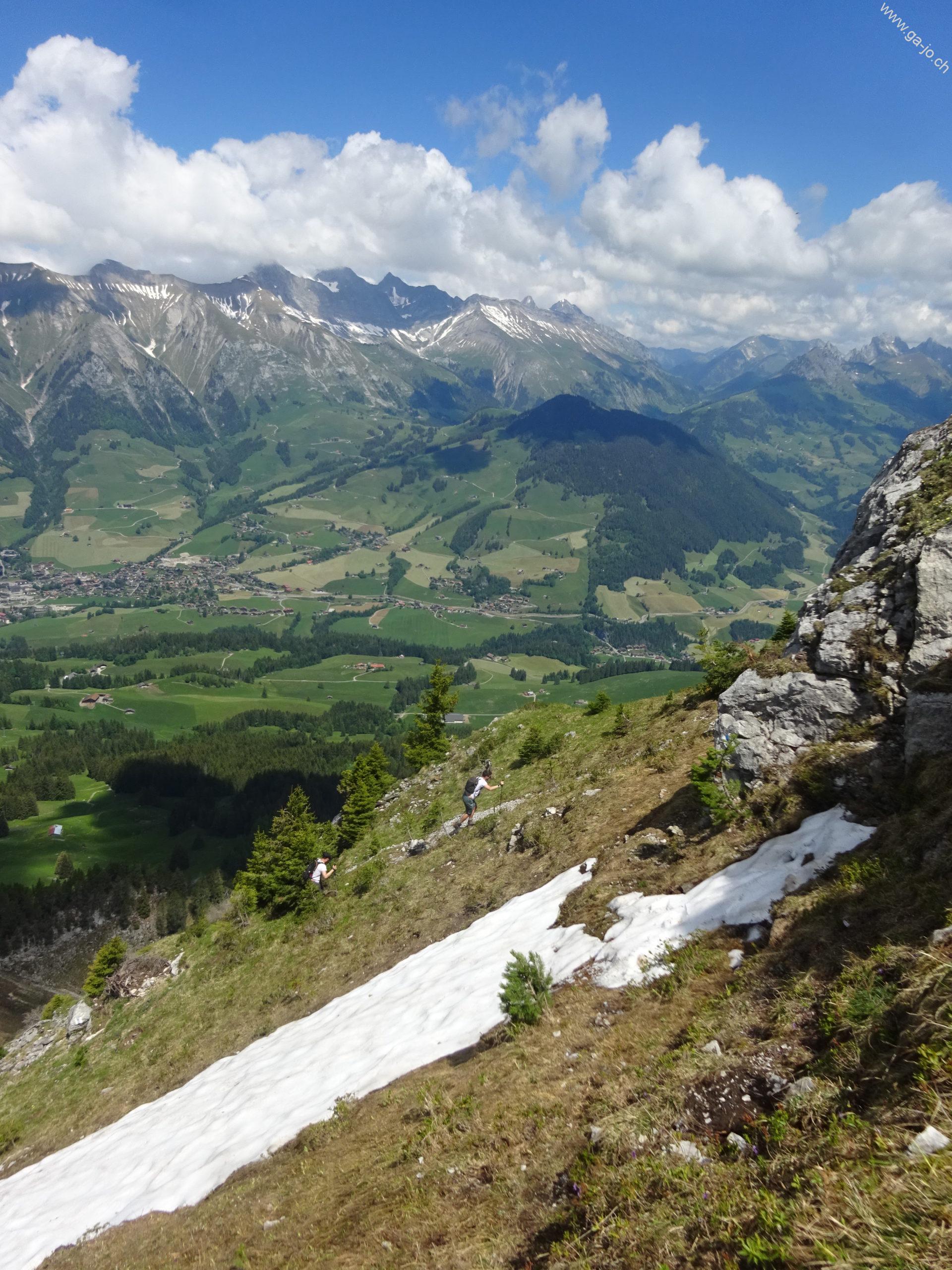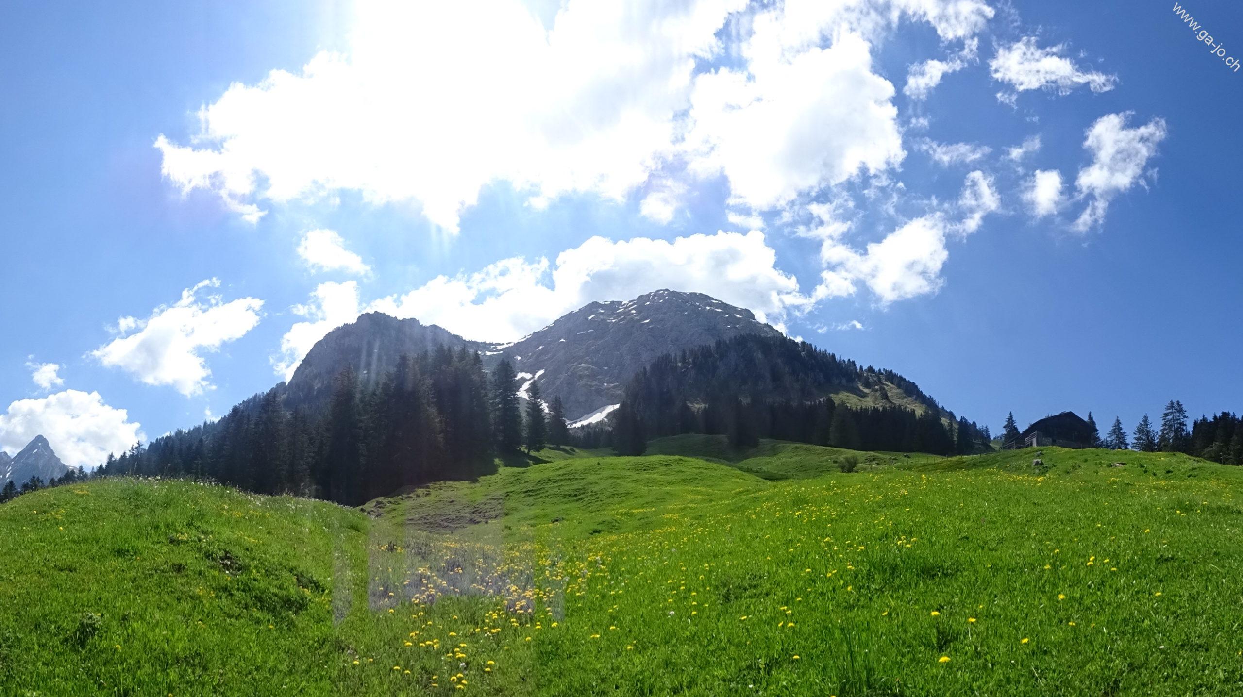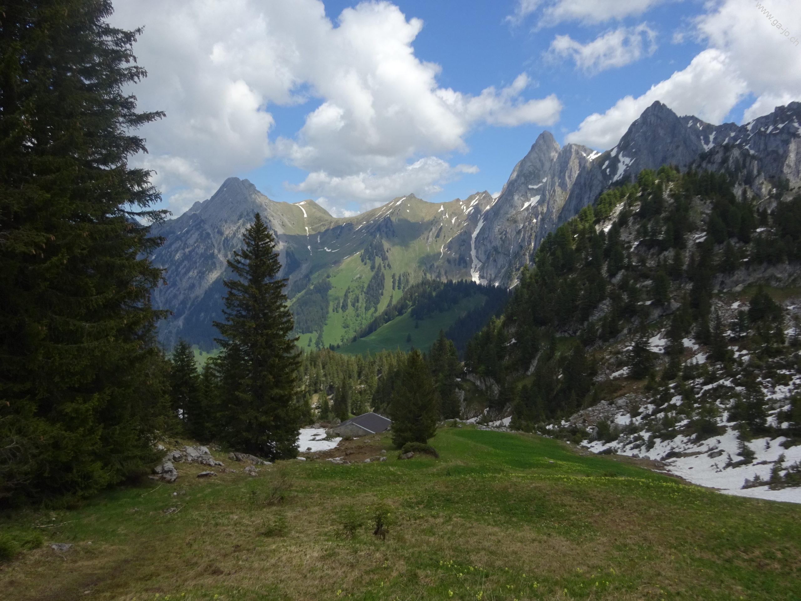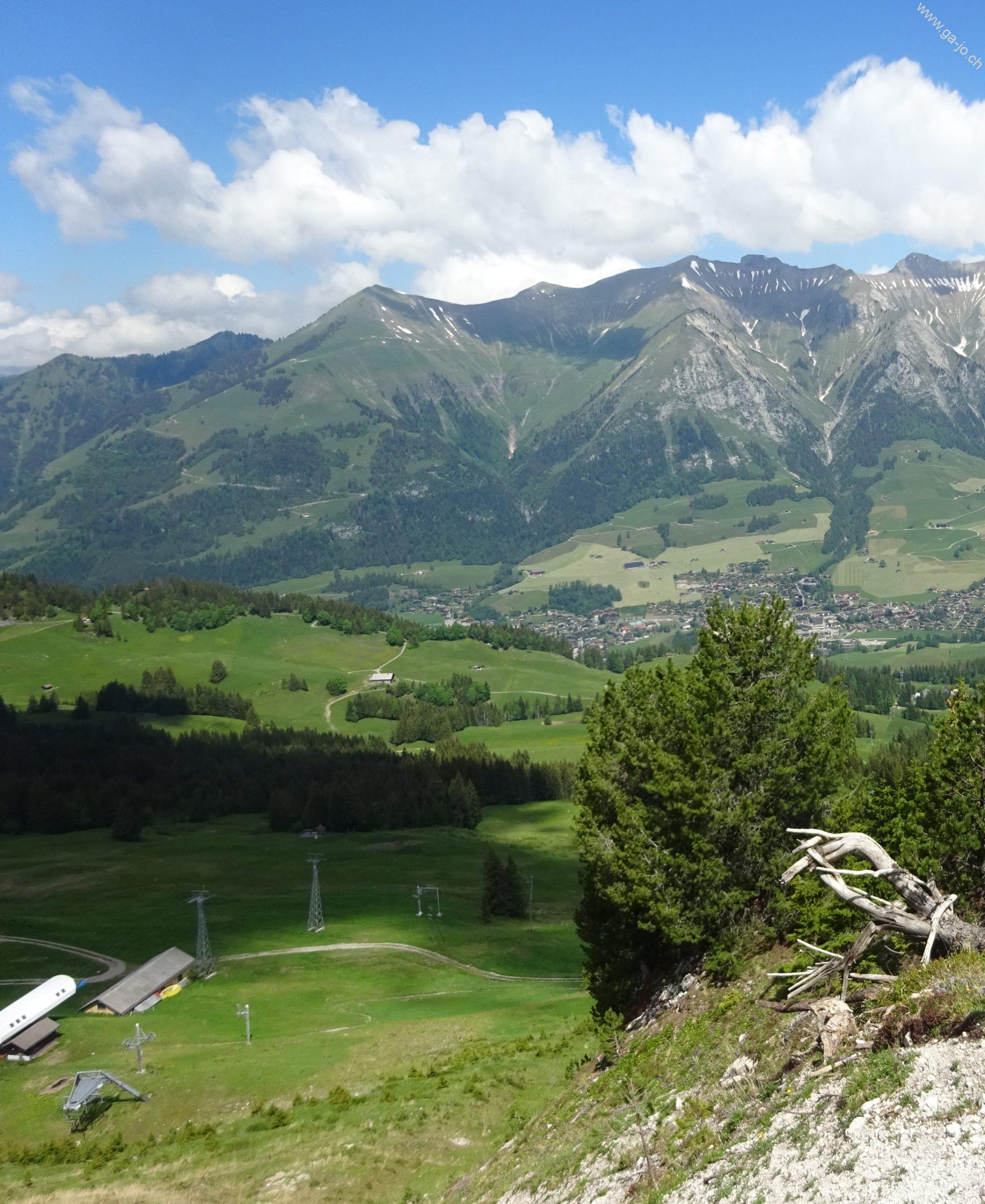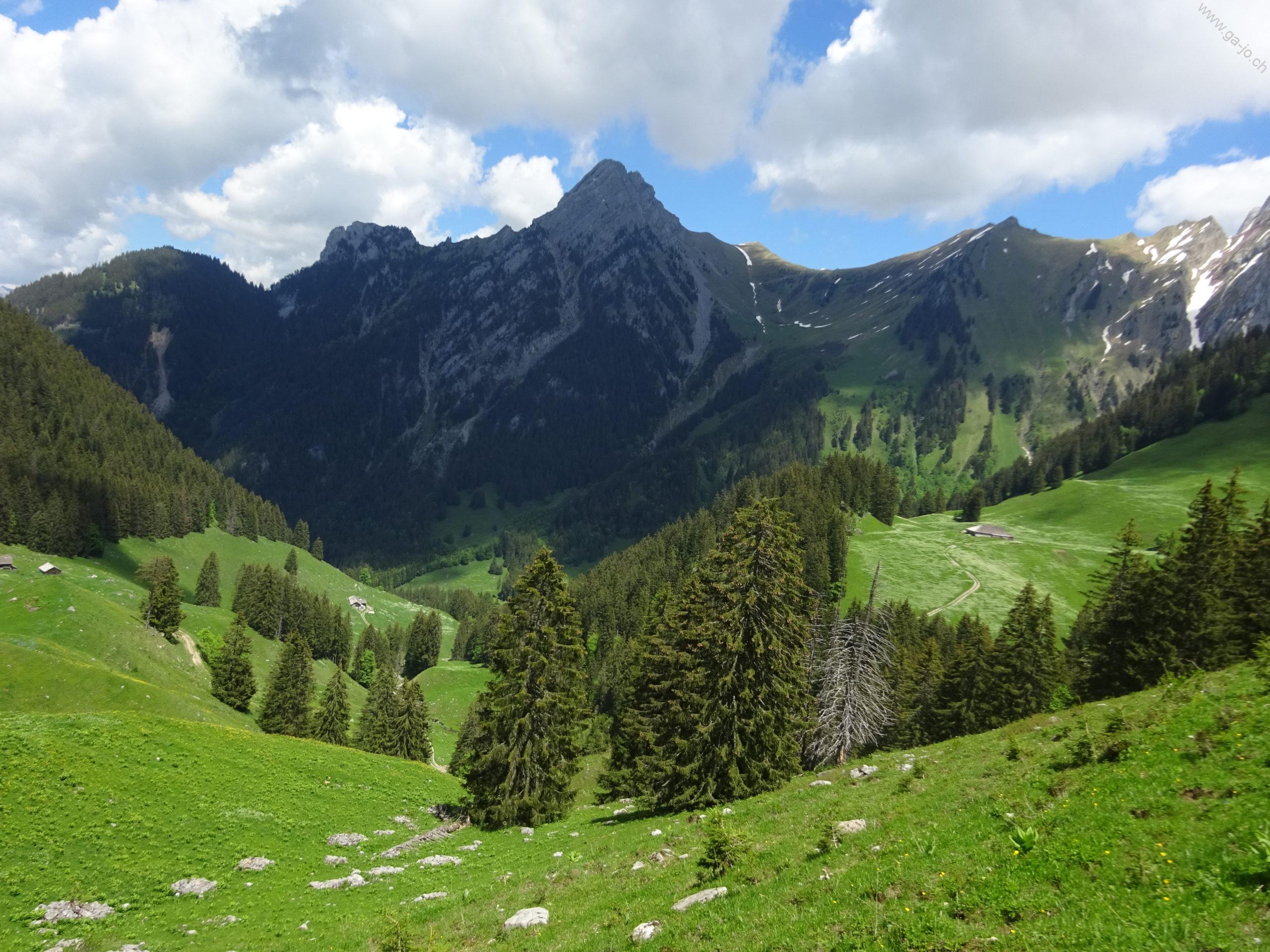 Nous prenons alors la direction de Châteaux-d’Œx par le Plan de l’Etalle et la Montagnette (qui n’est pas la même que celle passée précédemment) et finalement par la vallée de la Gérine… à travers les pâturages pas encore pâturés.