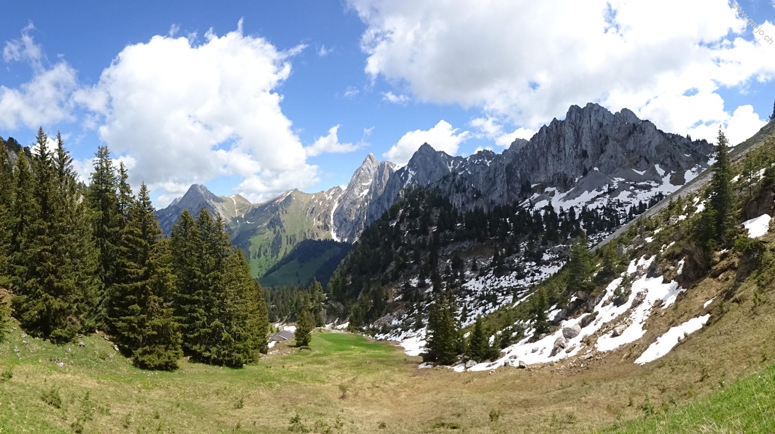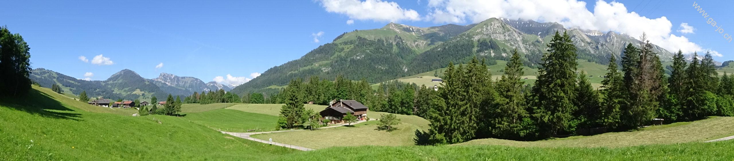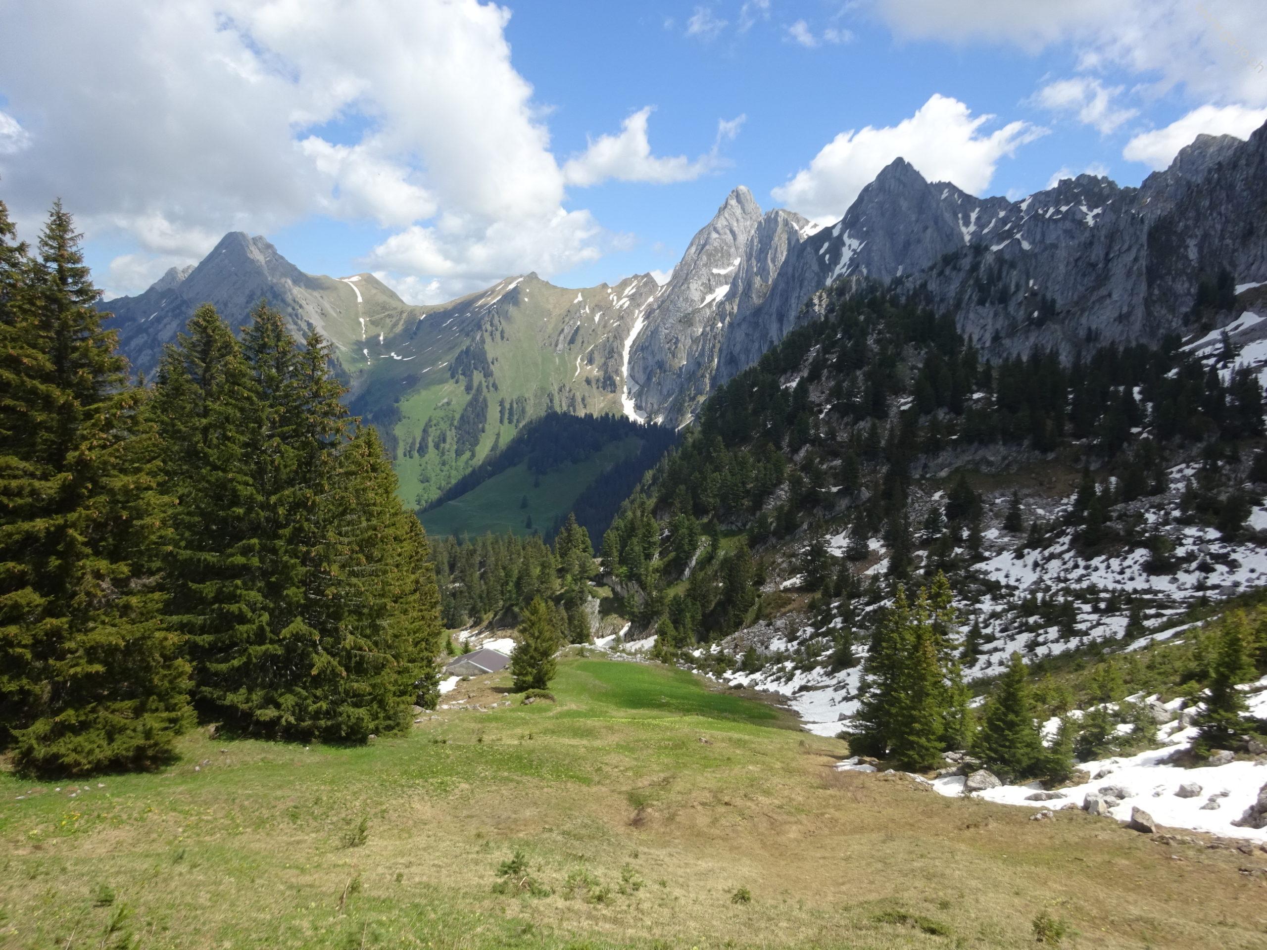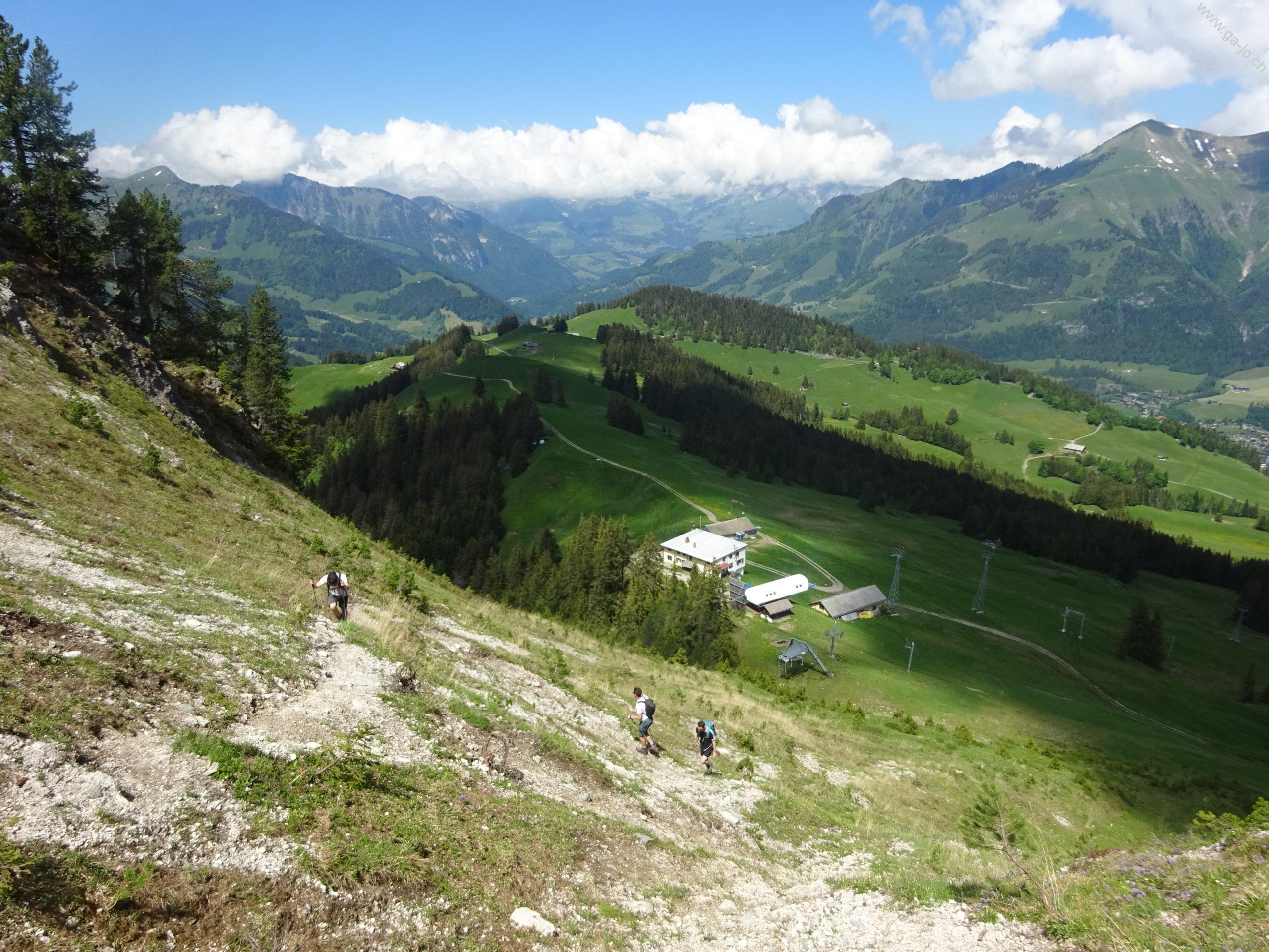 Nous prenons alors la direction de Châteaux-d’Œx par le Plan de l’Etalle et la Montagnette (qui n’est pas la même que celle passée précédemment) et finalement par la vallée de la Gérine… à travers les pâturages pas encore pâturés.