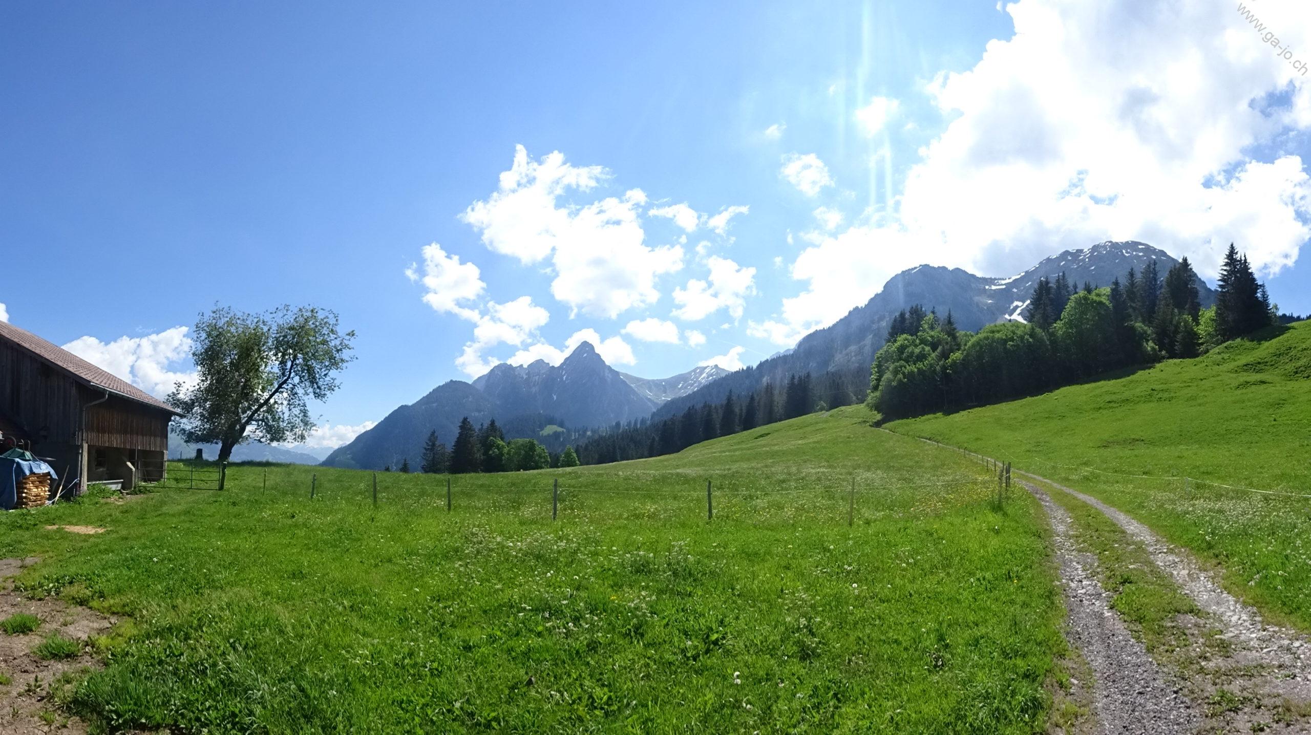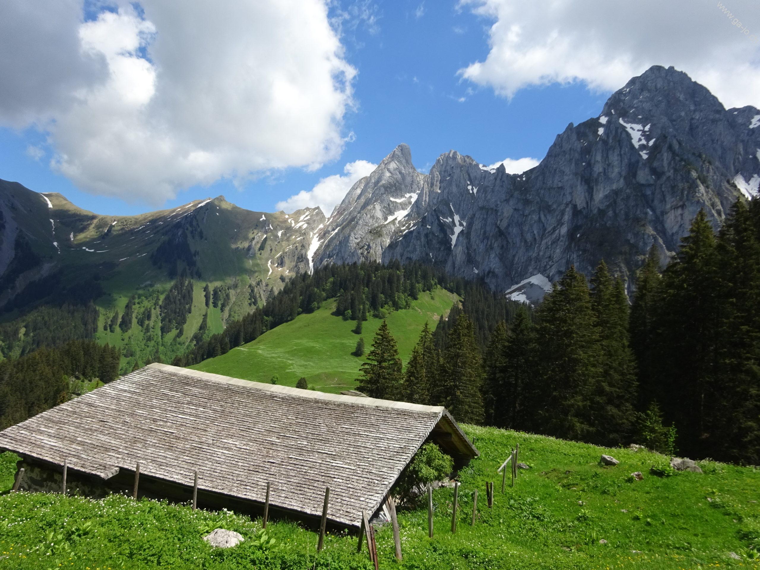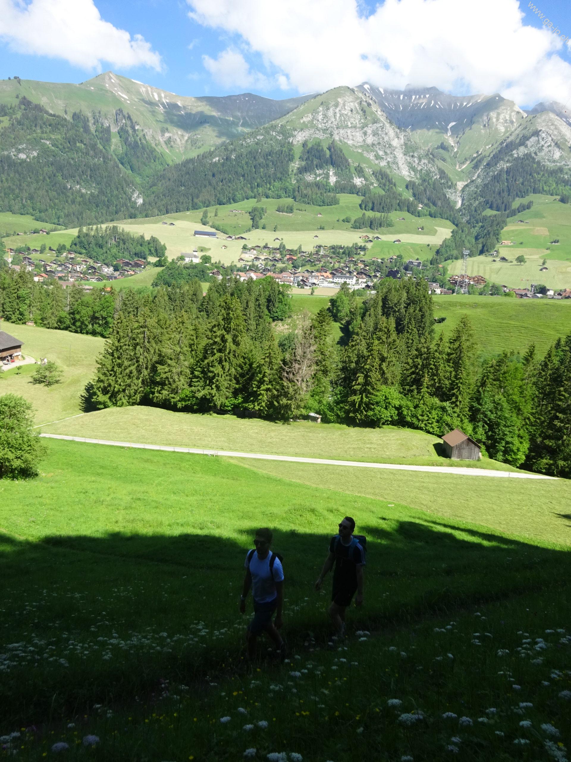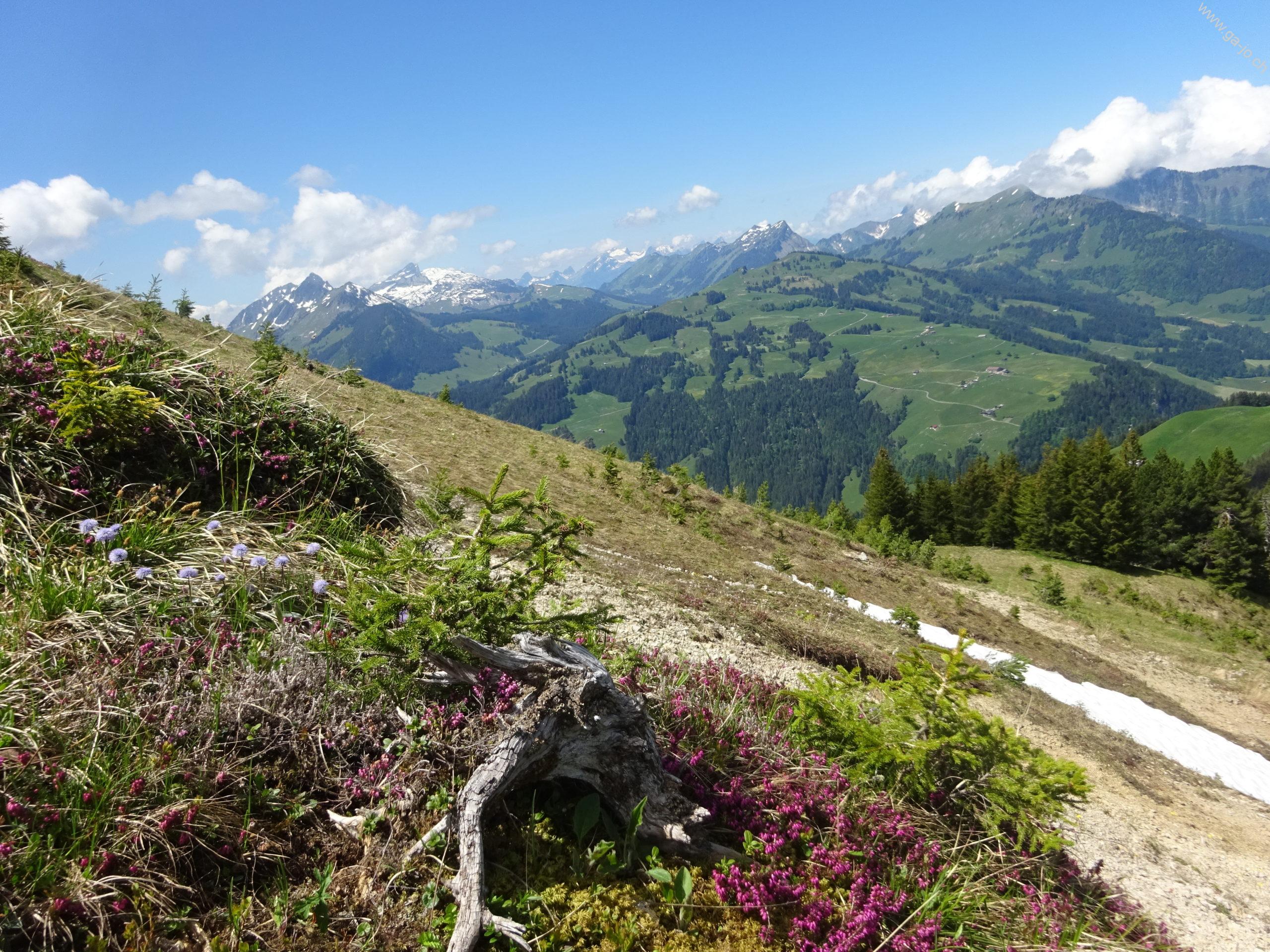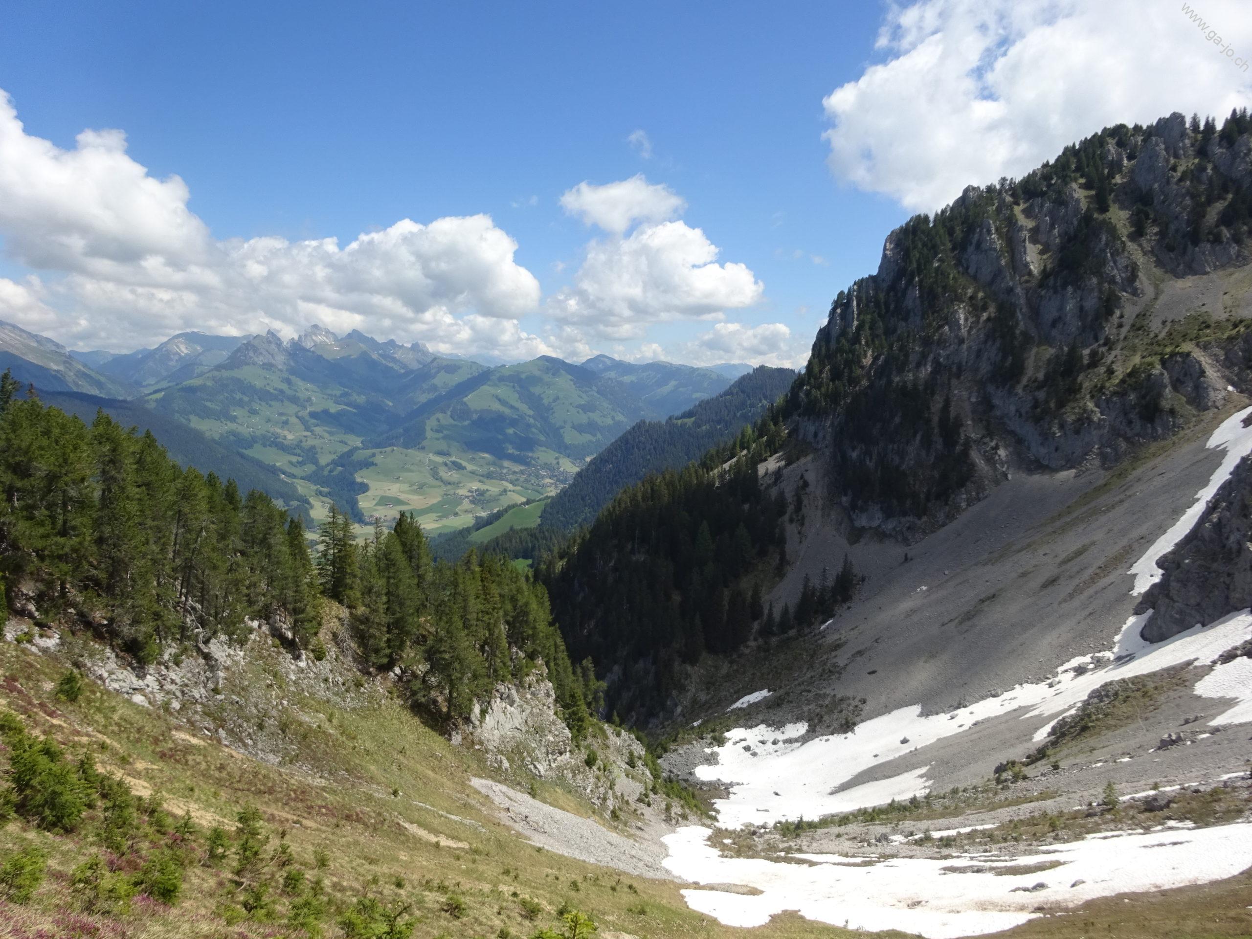 Nous prenons alors la direction de Châteaux-d’Œx par le Plan de l’Etalle et la Montagnette (qui n’est pas la même que celle passée précédemment) et finalement par la vallée de la Gérine… à travers les pâturages pas encore pâturés.