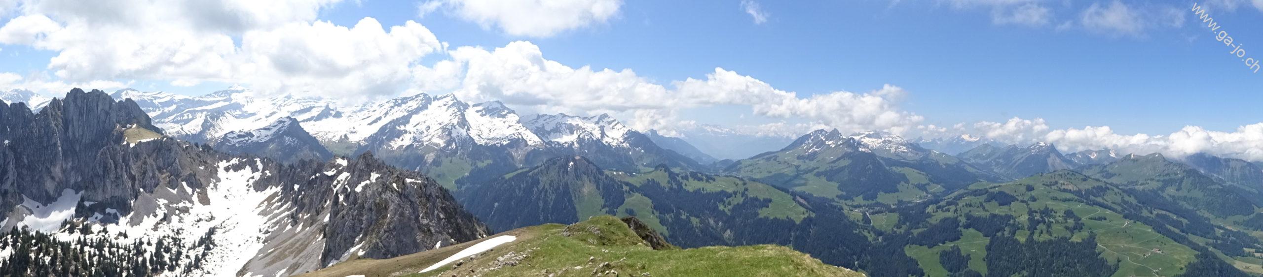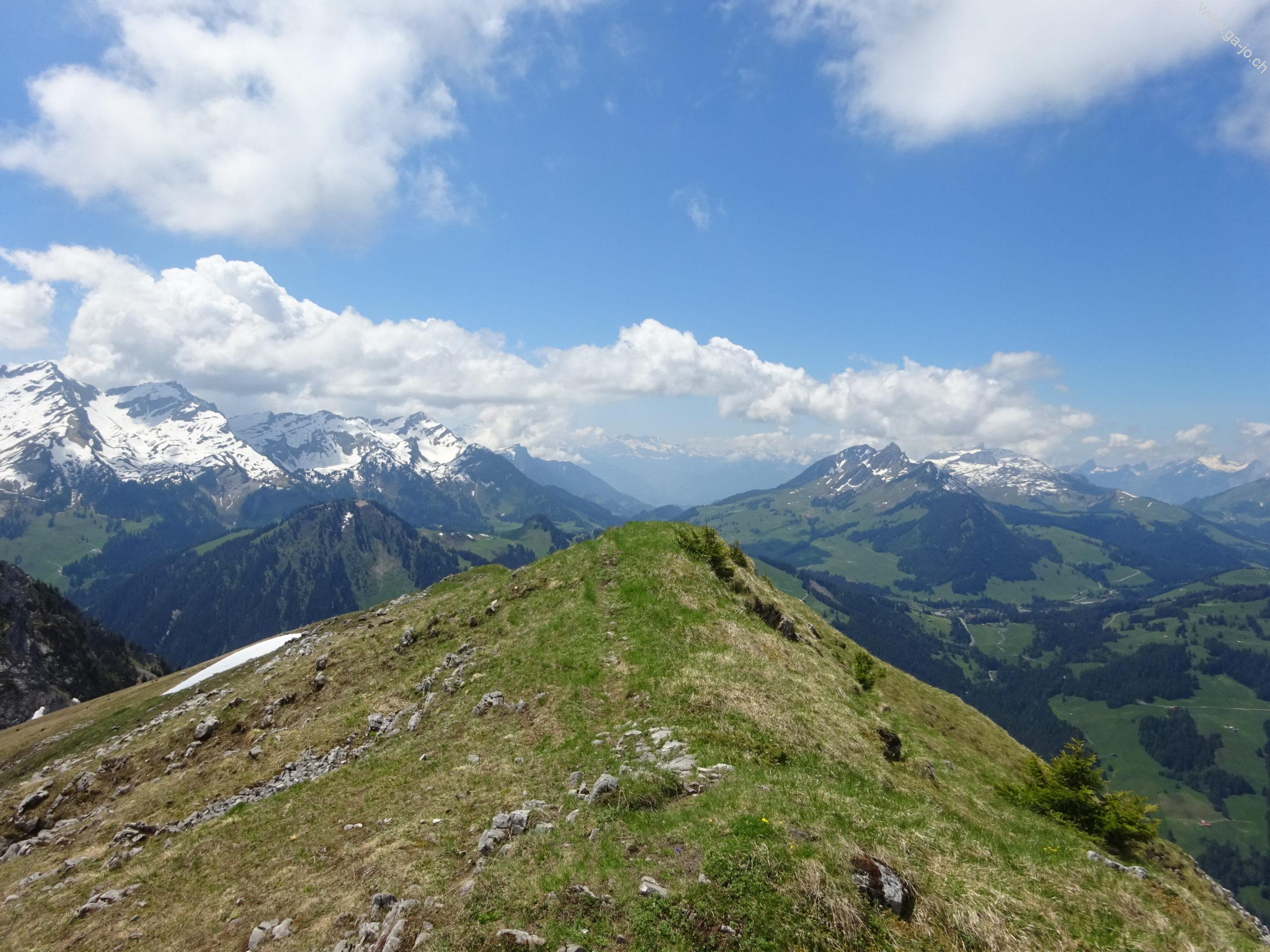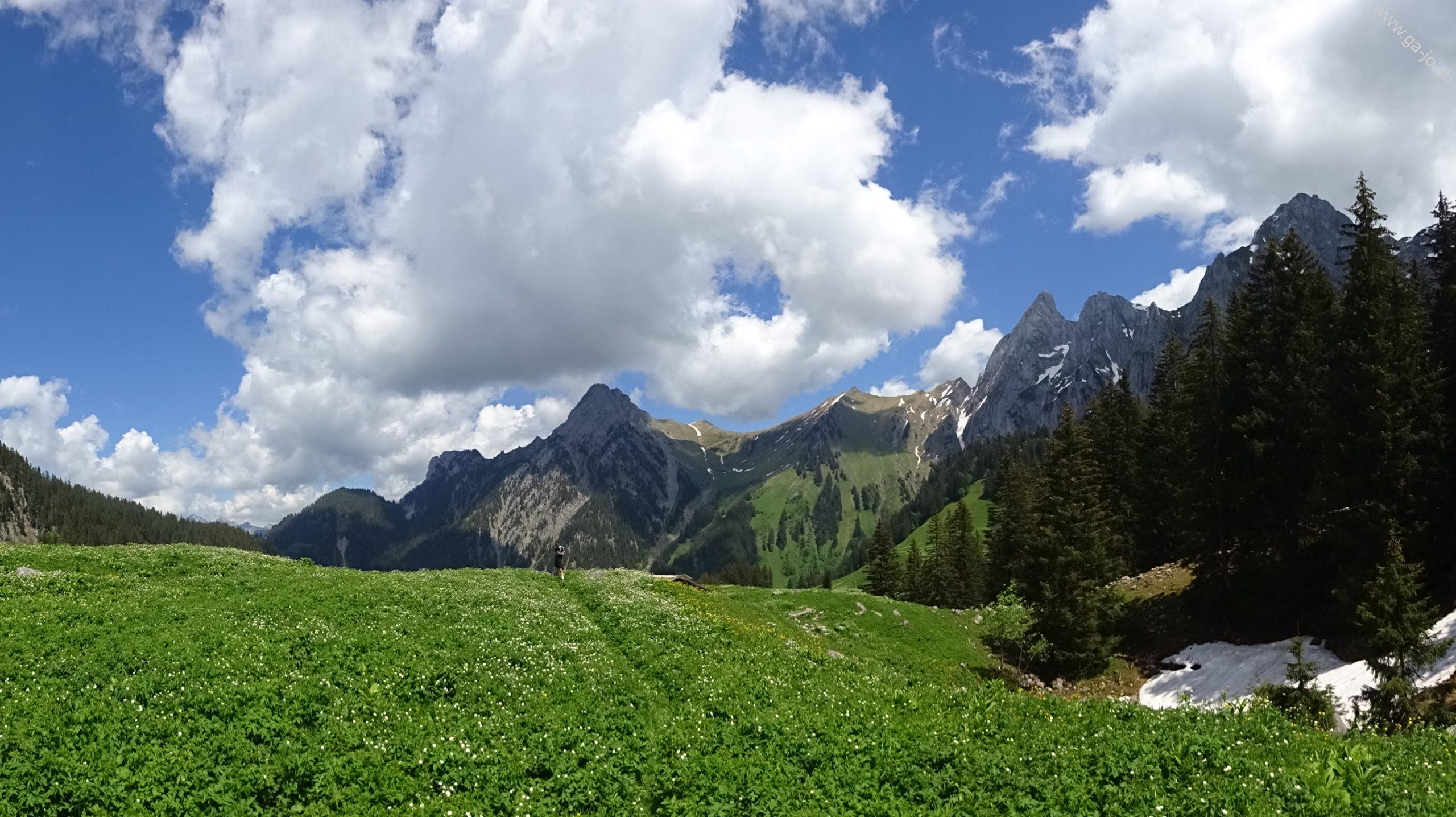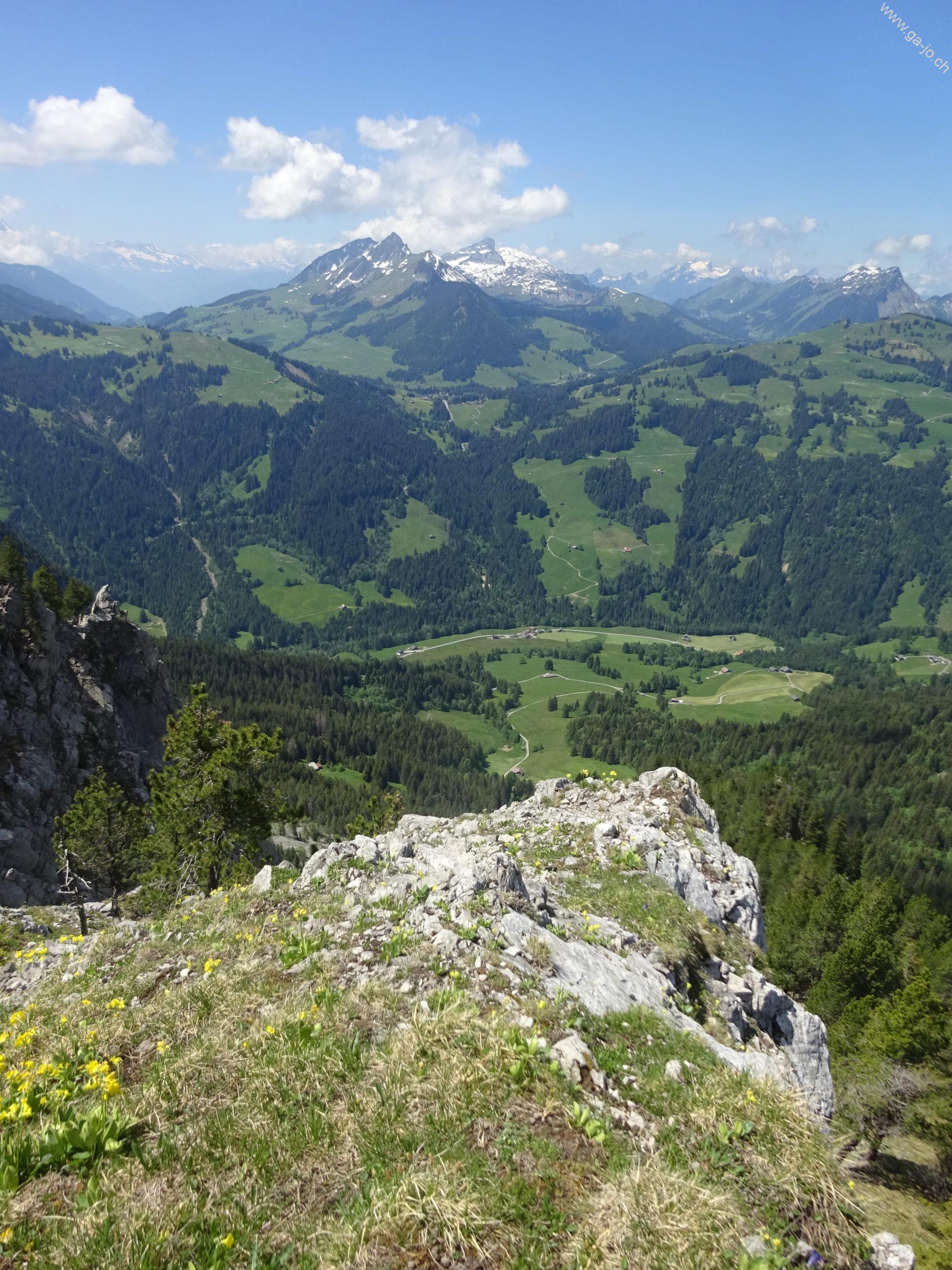Nous prenons alors la direction de Châteaux-d’Œx par le Plan de l’Etalle et la Montagnette (qui n’est pas la même que celle passée précédemment) et finalement par la vallée de la Gérine… à travers les pâturages pas encore pâturés.