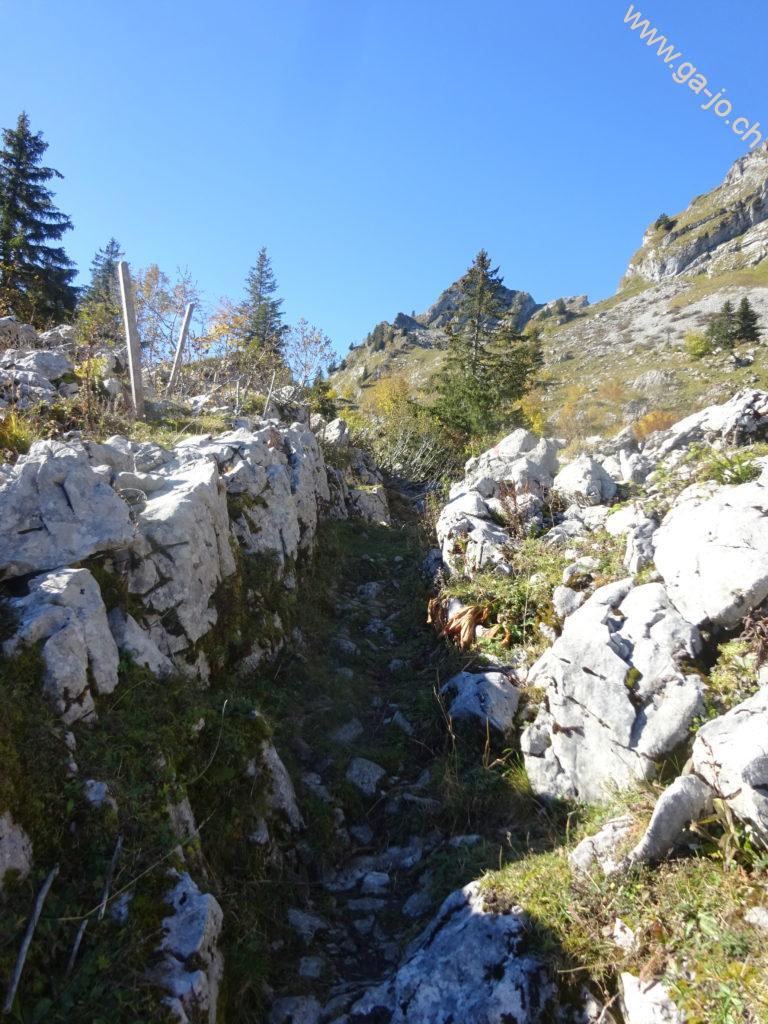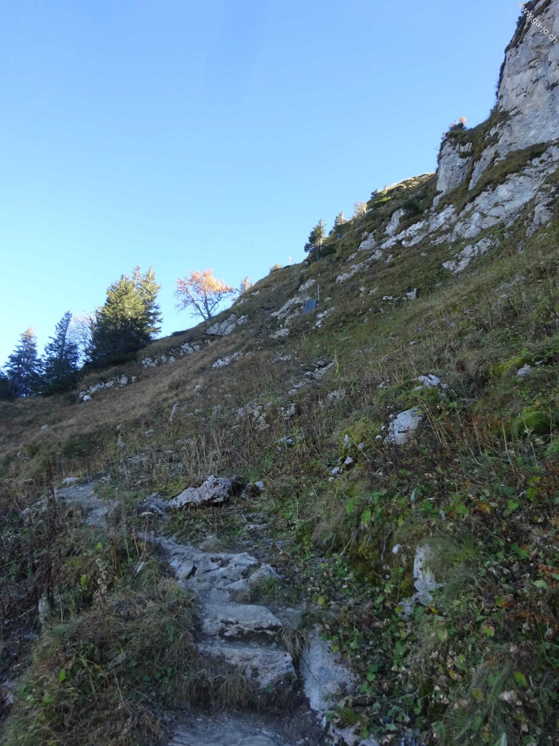 Une fois le sommet atteint, on revient sur nos pas et rejoinions le sentier pour les Rochers de Naye via la buvette (et la station de train) de Jaman. Il y a un nombre incalculable de chemin pour arriver en haut, nous avons choisi le passage par le col de Bonaudon et le sentier aménagé de la grotte de Naye.