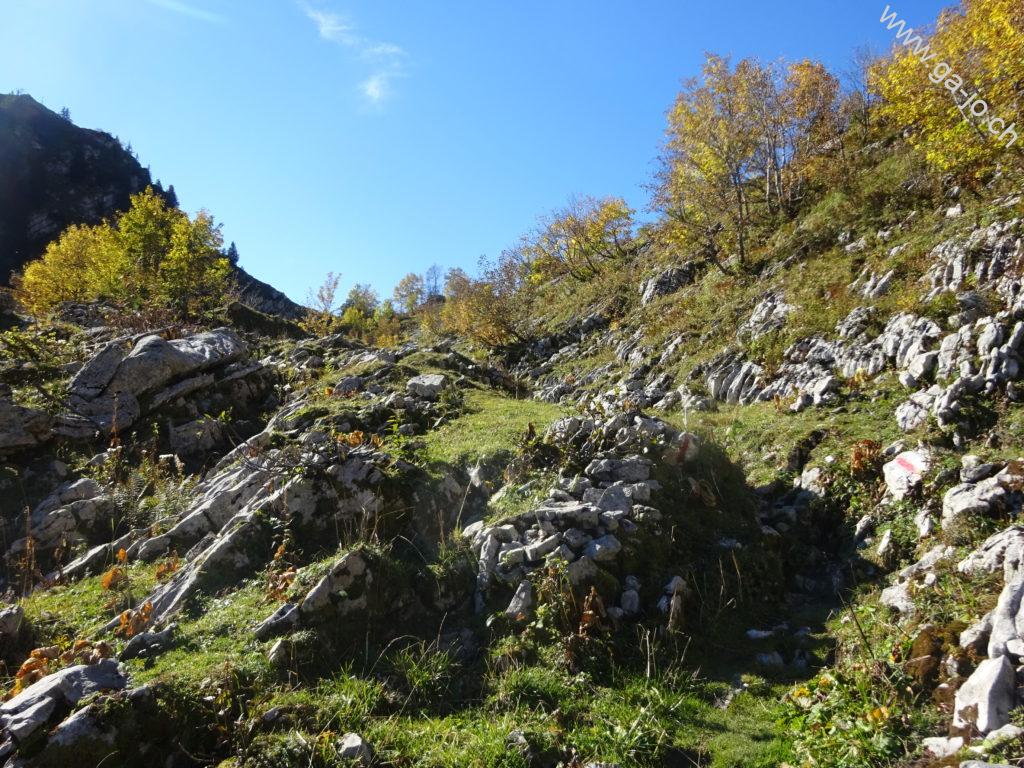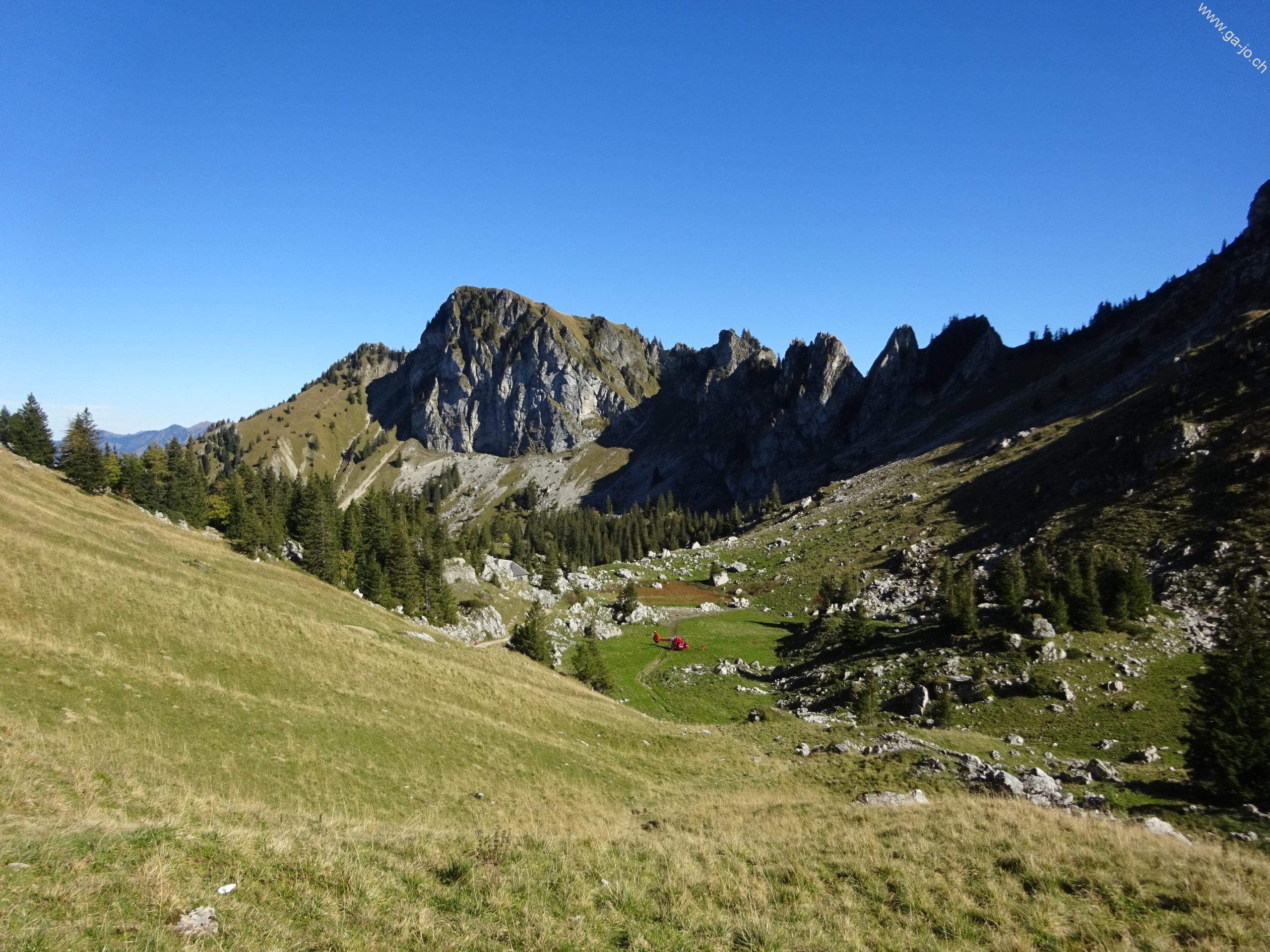 Départ de la gare de Allières, sur la ligne du MOB, direction le col de Pierra Perchia. La montée dans les pâturages ne pose pas de problème autre que physiques.