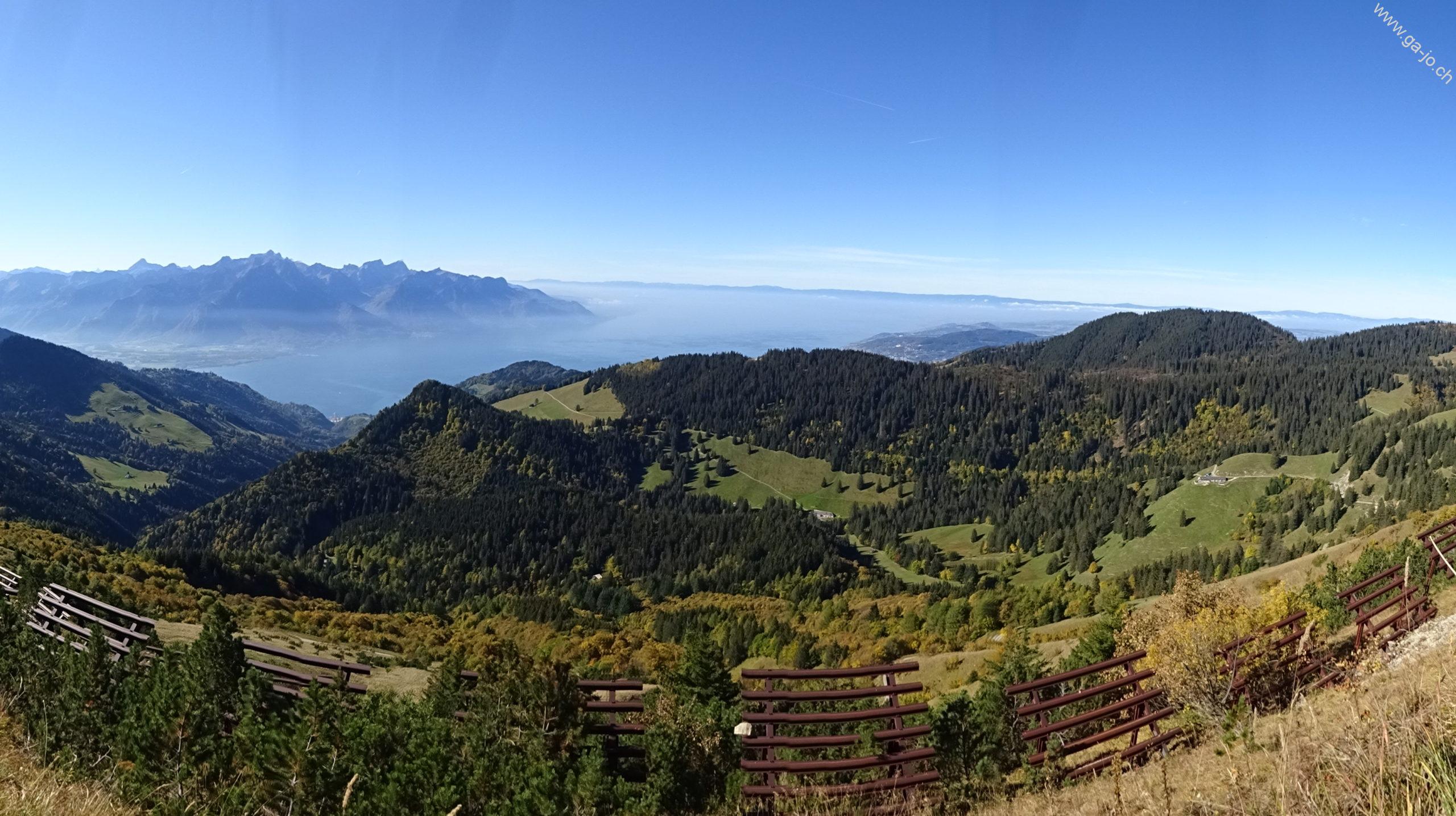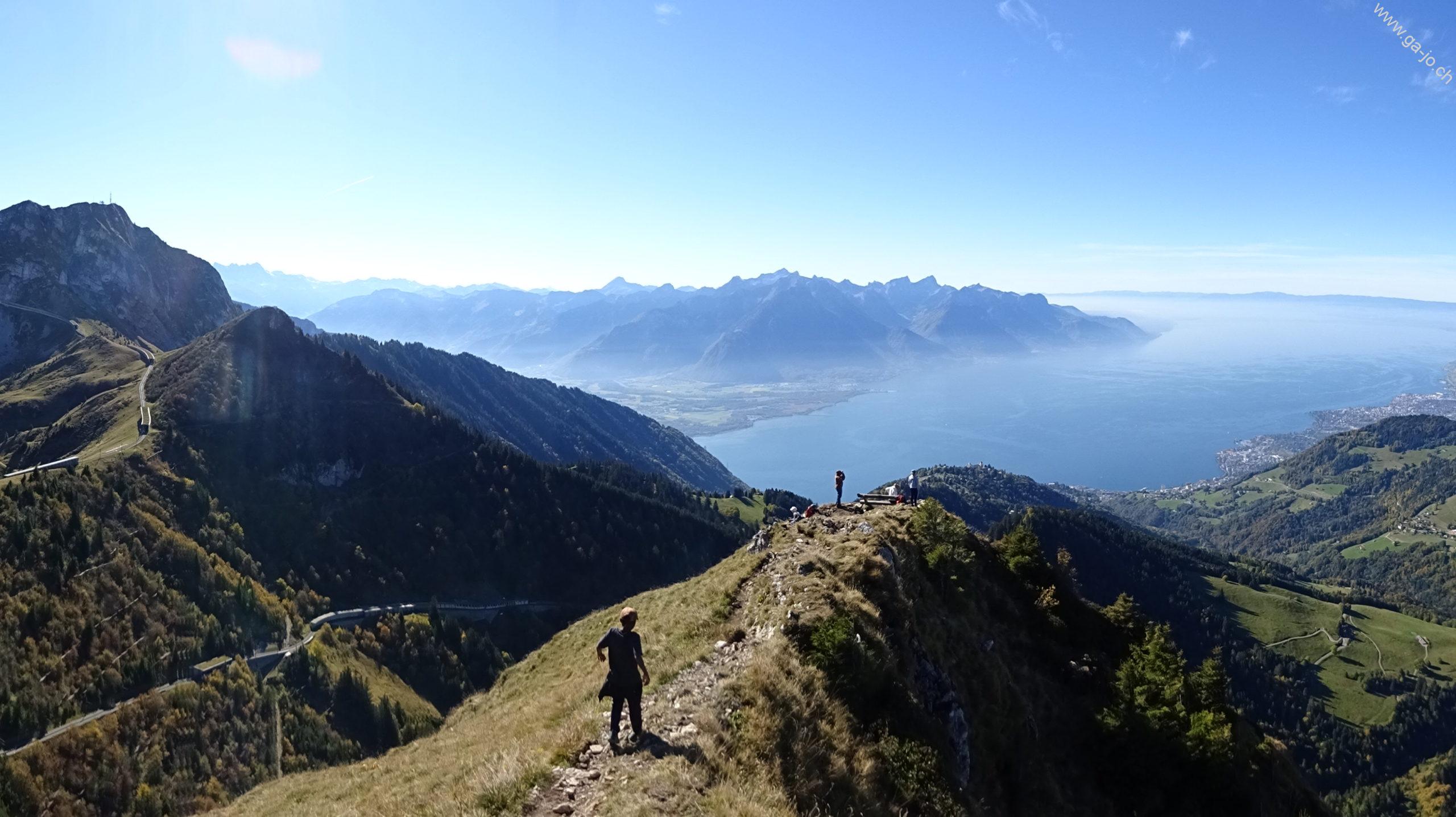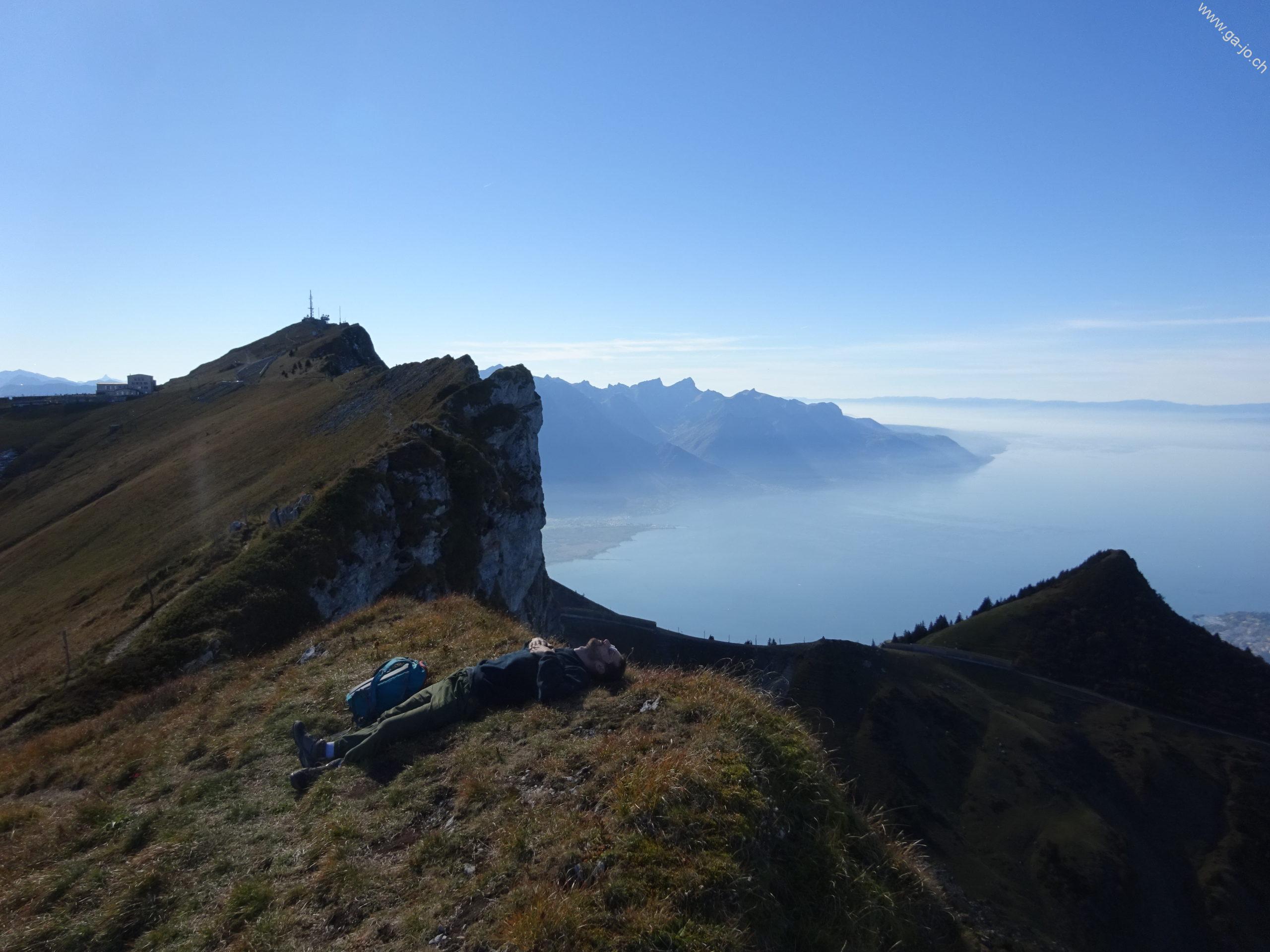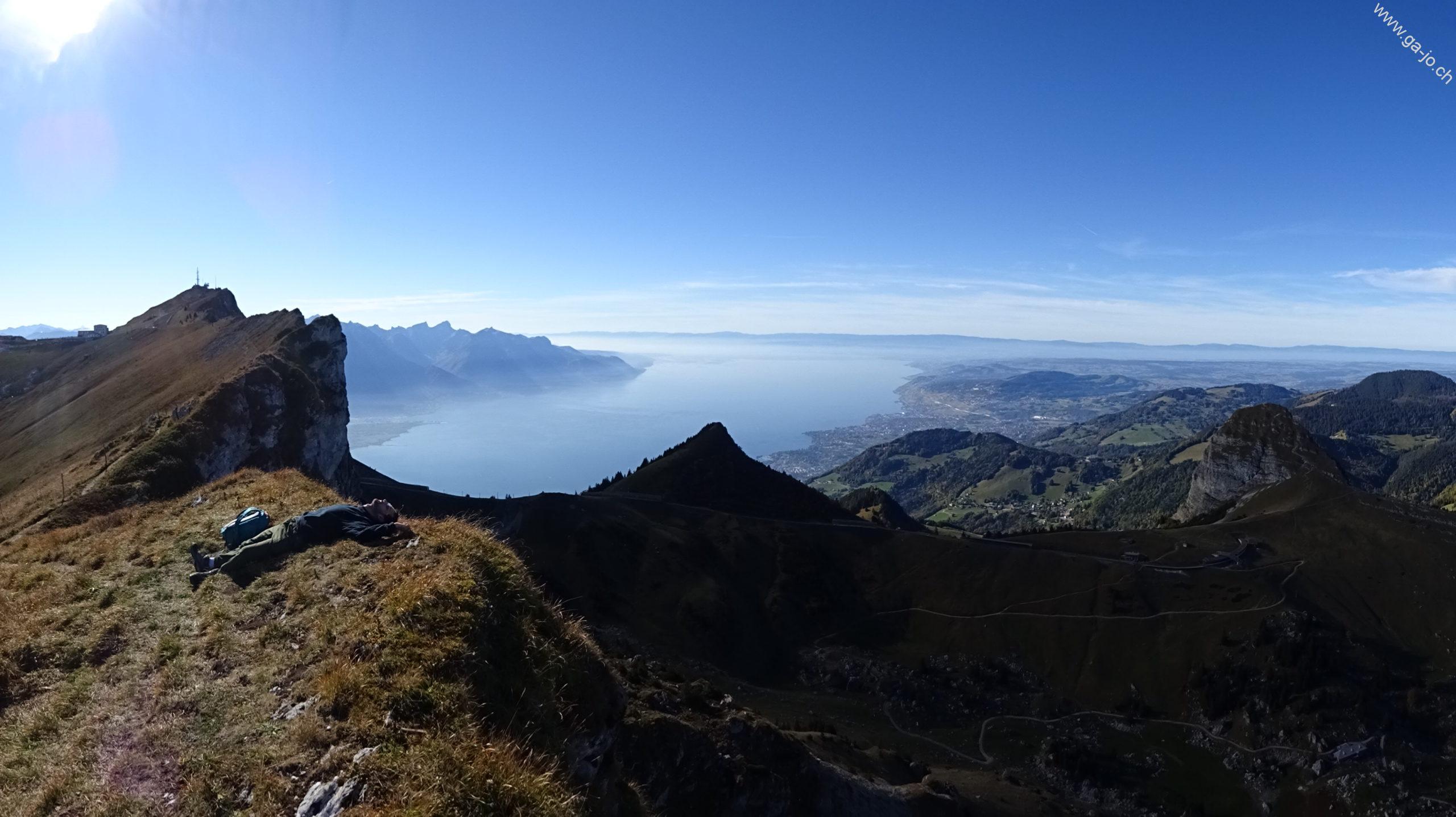 Encore une arrivée aux Rochers de Naye (il faut reconnaitre que le trajet de retour en train, inclus dans l’AG, est bien pratique lorsqu’on n’aime pas trop les descentes), cette fois depuis Allières. On avait envie depuis un moment de parcourir le sentier en traversée sur la face ouest de la Cape au Moine, visible depuis le col de Soladier. Pour pimenter le tout on fera un facile crochet par le sommet de la Dent de Jaman.