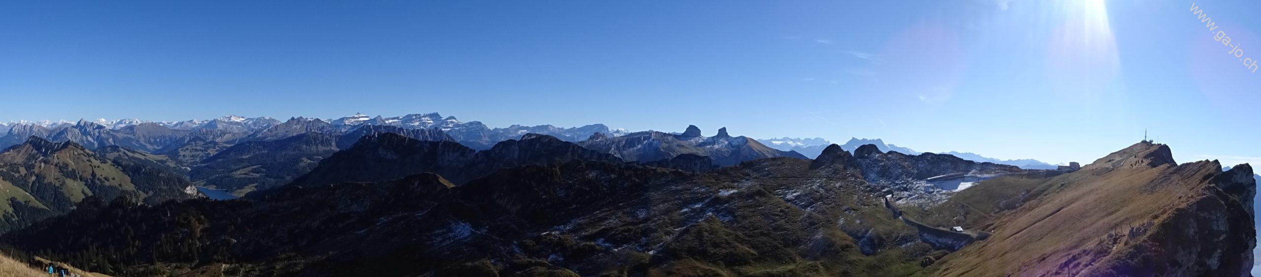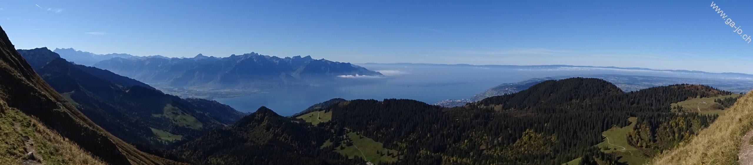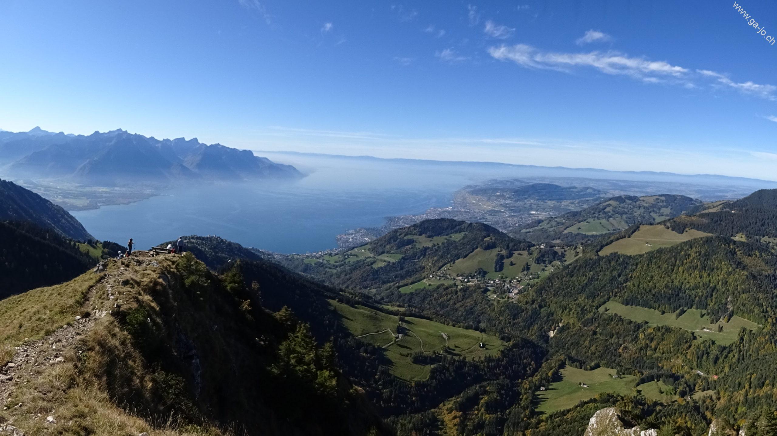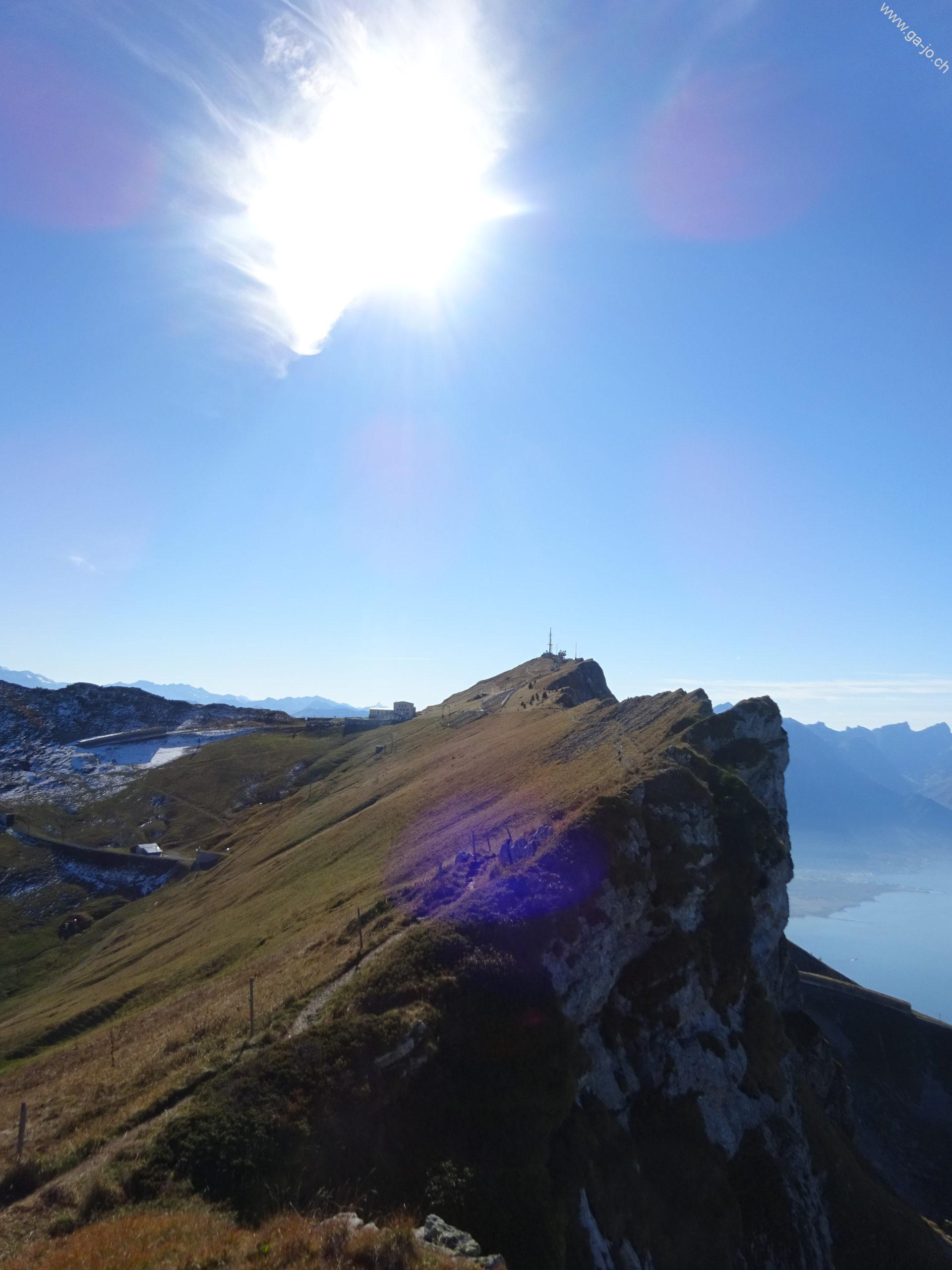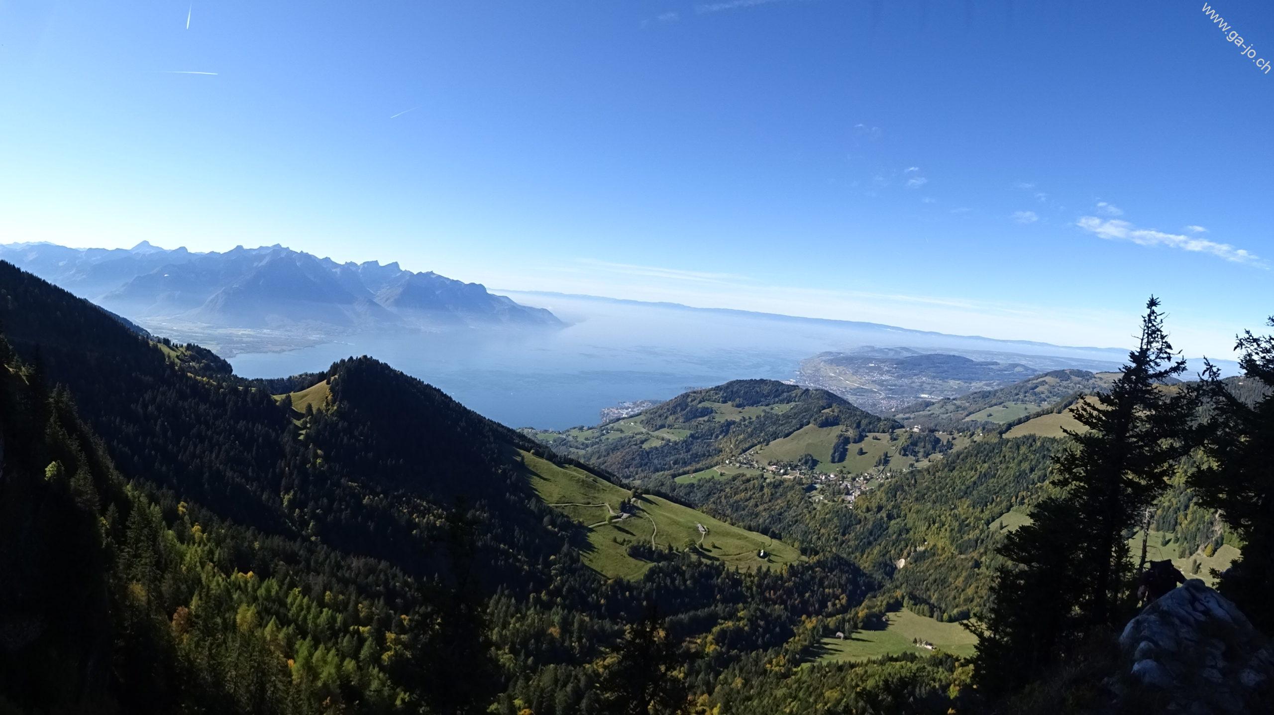 Encore une arrivée aux Rochers de Naye (il faut reconnaitre que le trajet de retour en train, inclus dans l’AG, est bien pratique lorsqu’on n’aime pas trop les descentes), cette fois depuis Allières. On avait envie depuis un moment de parcourir le sentier en traversée sur la face ouest de la Cape au Moine, visible depuis le col de Soladier. Pour pimenter le tout on fera un facile crochet par le sommet de la Dent de Jaman.