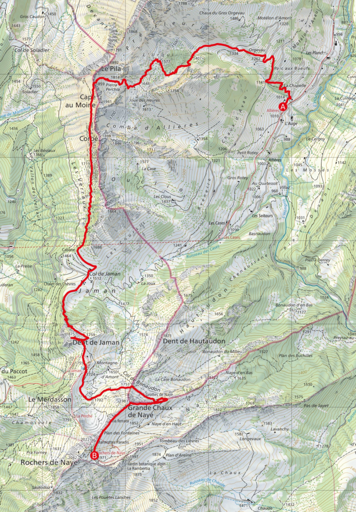 - Techniquement moyen / physiquement difficile / balisage blanc-rouge (T2), sans balisage (T3) pour la dent de Jaman.