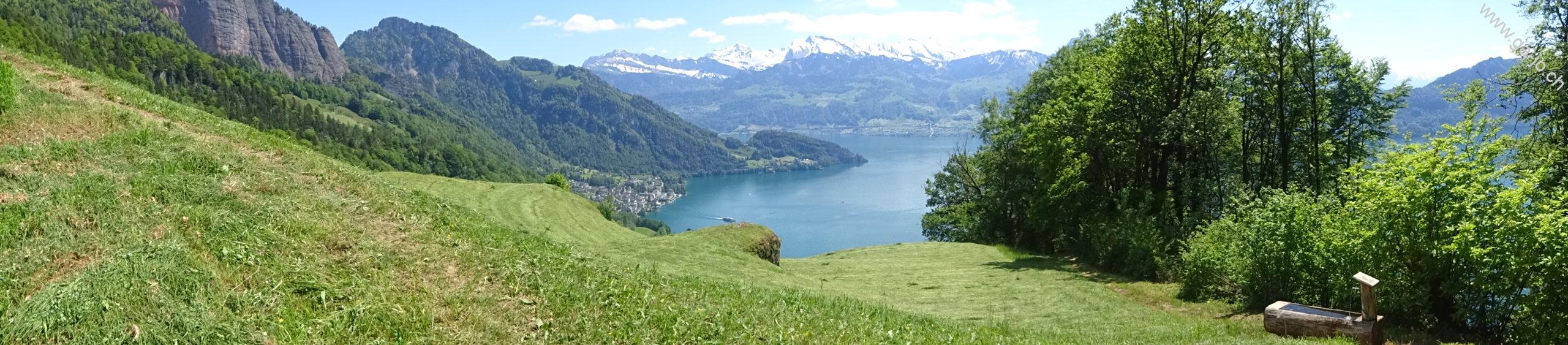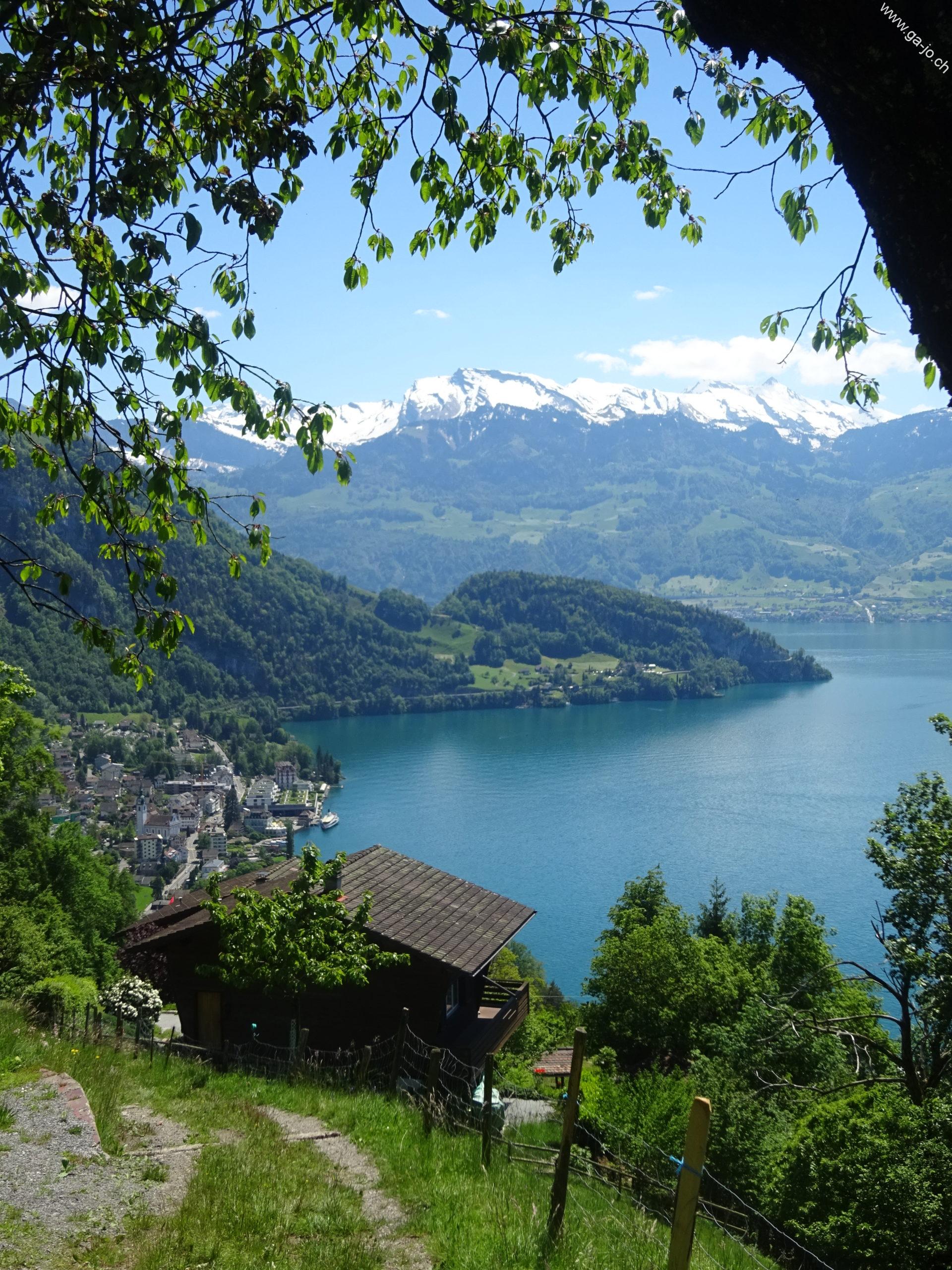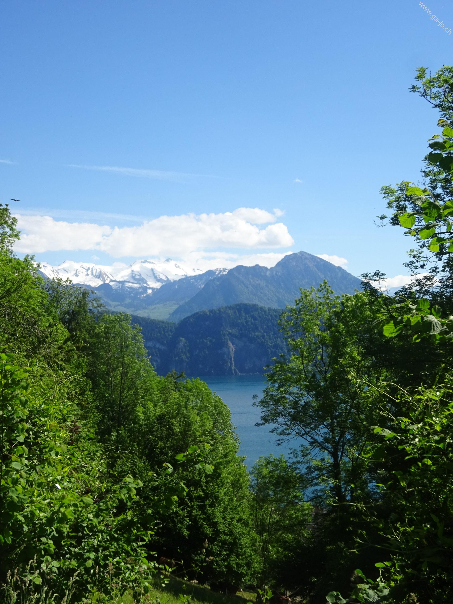 La première partie démarre donc pour nous à Fallenbach, où le sentier grimpe assez rapidement dans la forêt et passe au dessous de plusieurs cascades. Les nombreuses échappées sur le lac et les montagnes environnantes nous accompagnent jusqu’à Gersau.