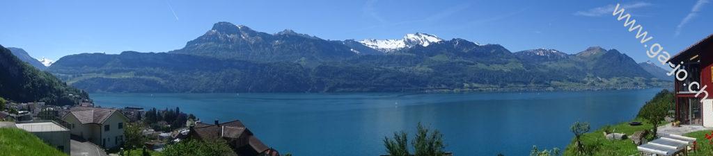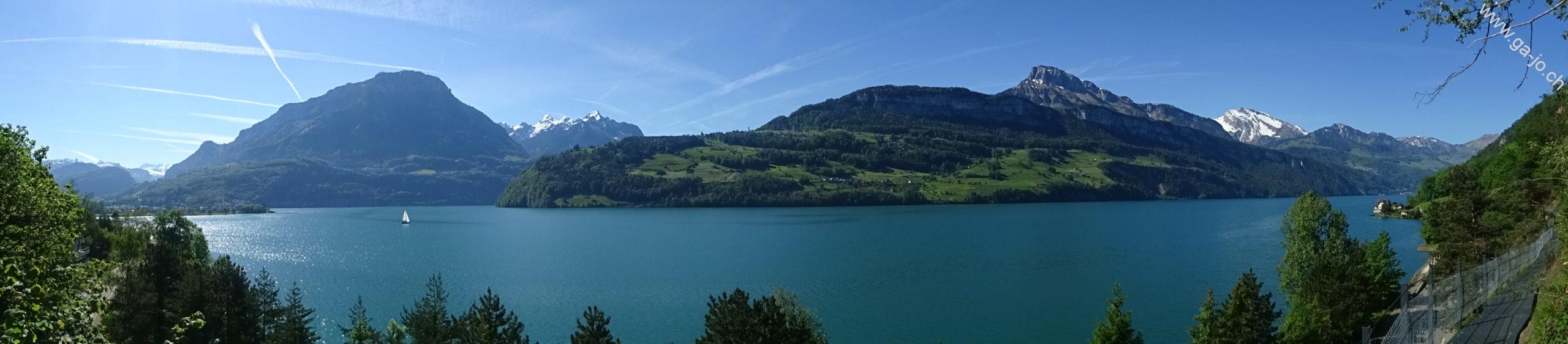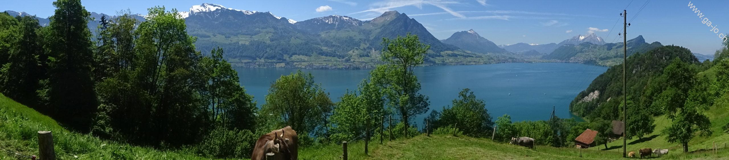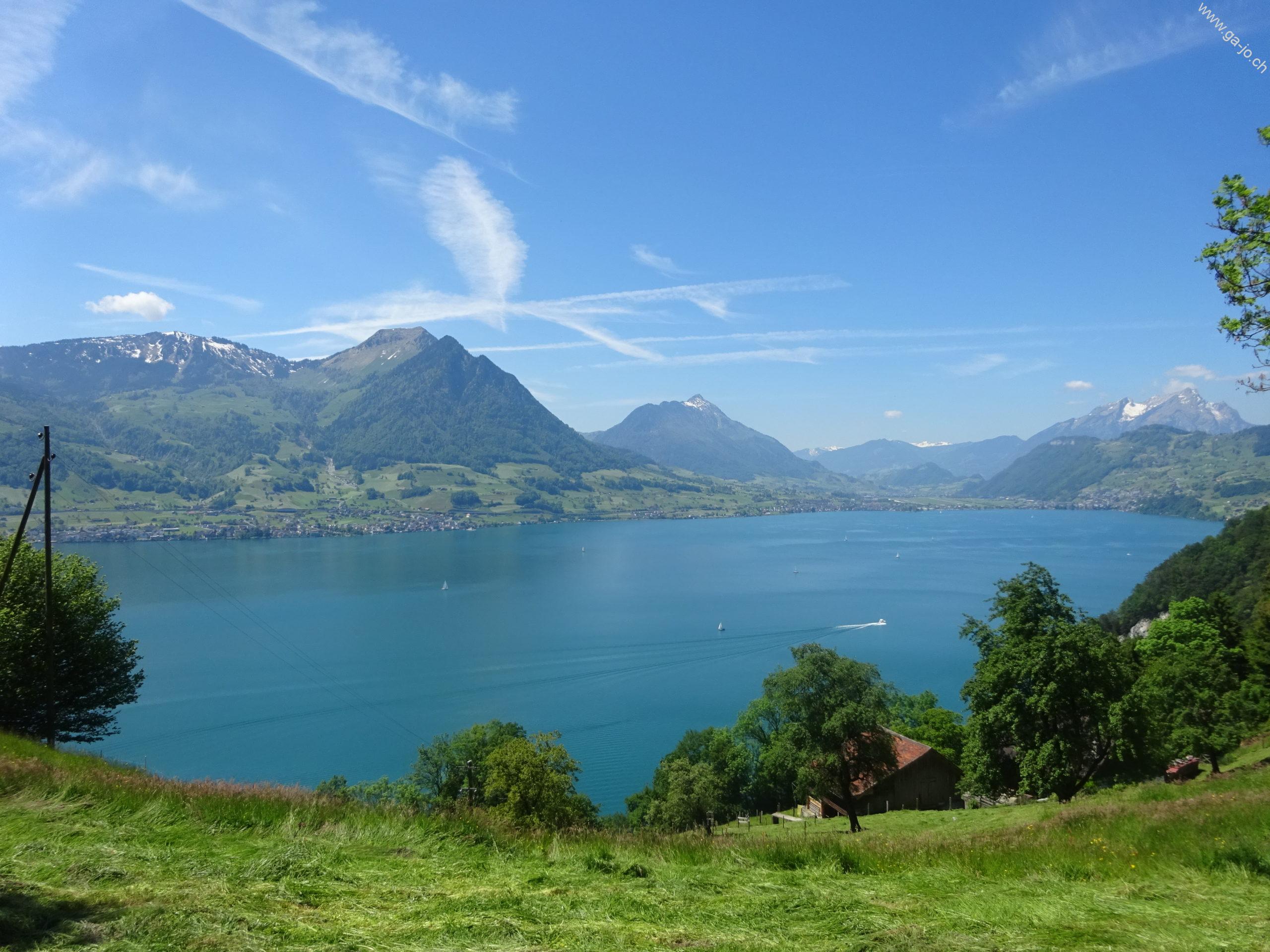 La première partie démarre donc pour nous à Fallenbach, où le sentier grimpe assez rapidement dans la forêt et passe au dessous de plusieurs cascades. Les nombreuses échappées sur le lac et les montagnes environnantes nous accompagnent jusqu’à Gersau.