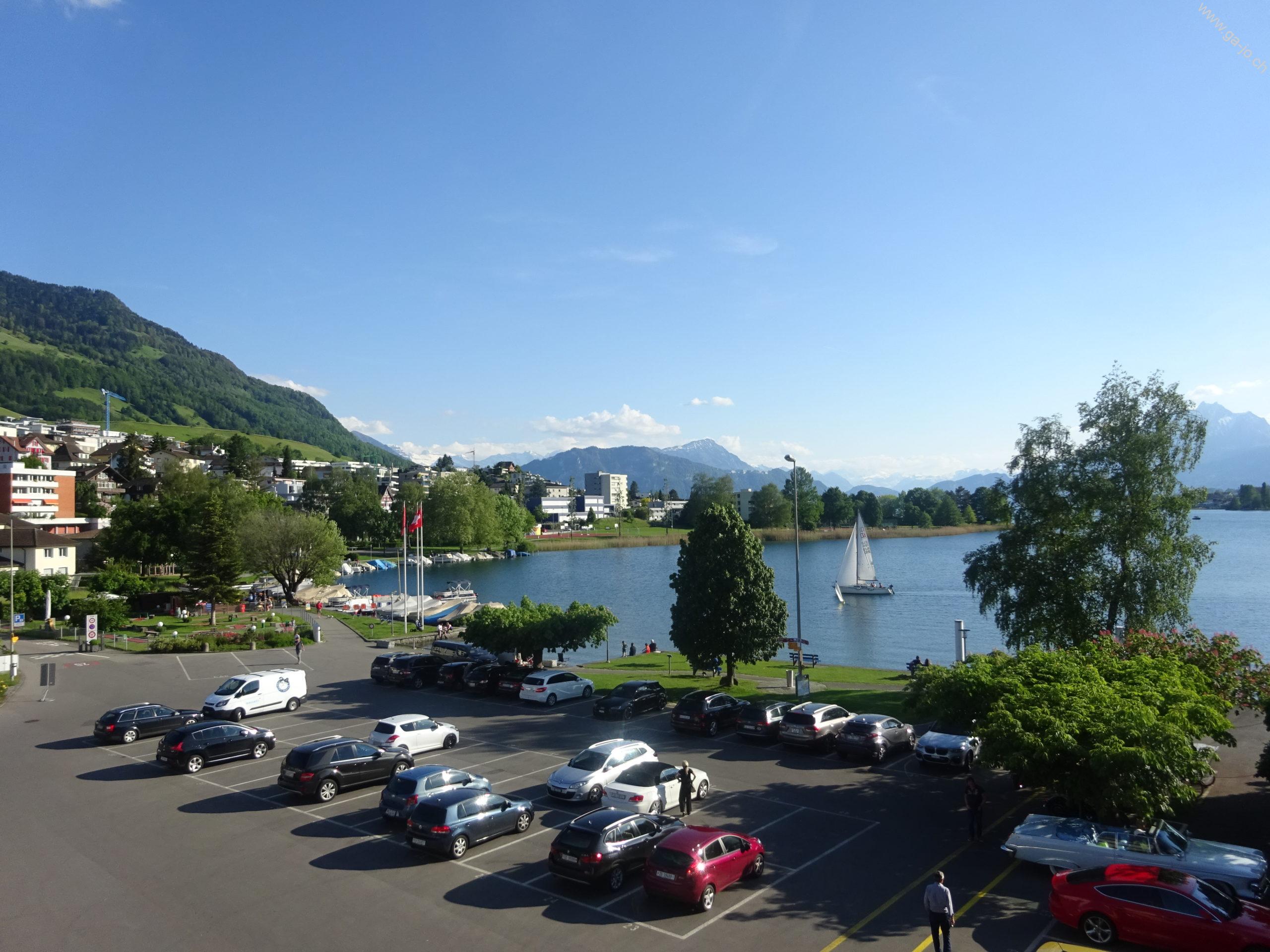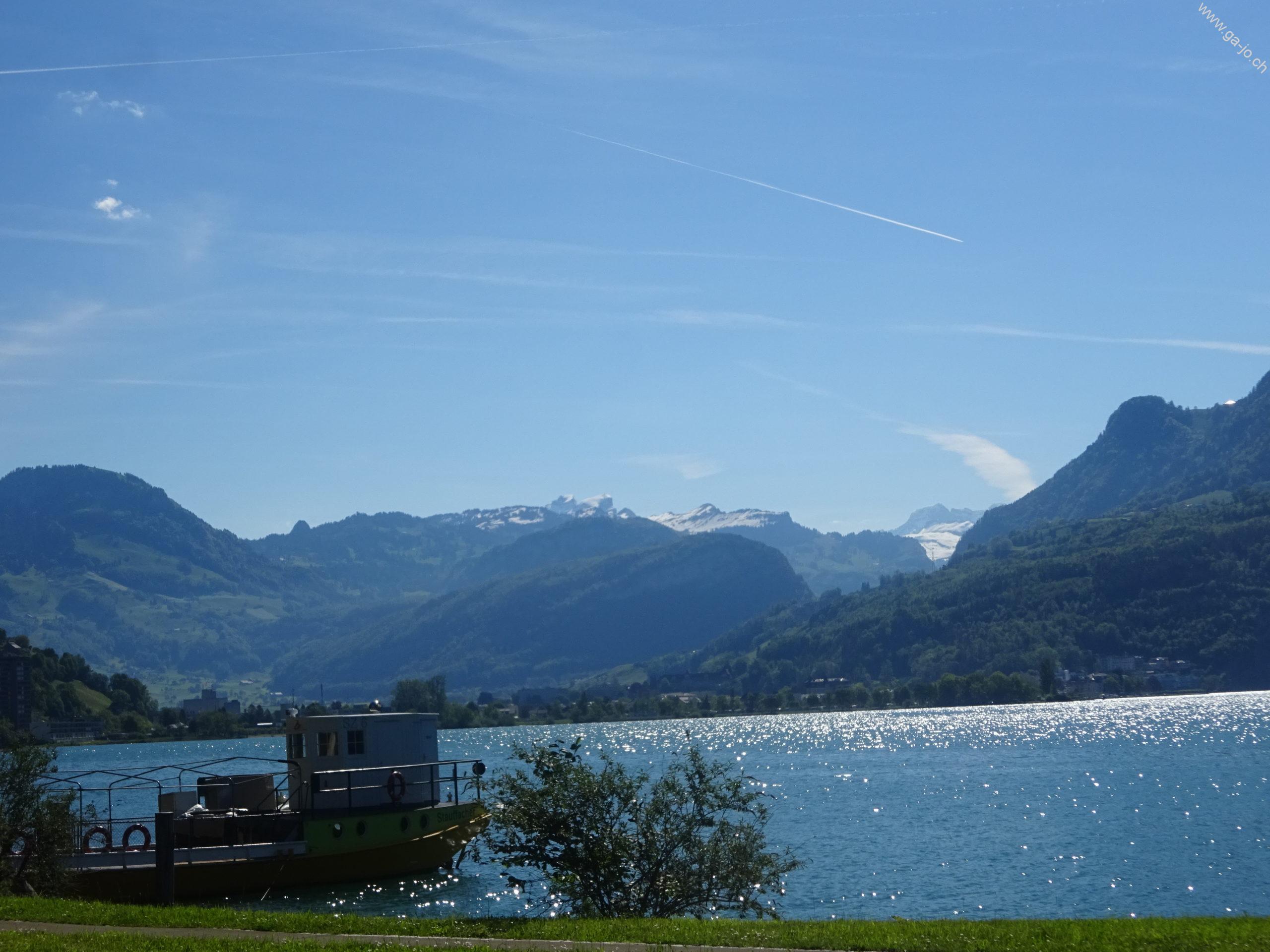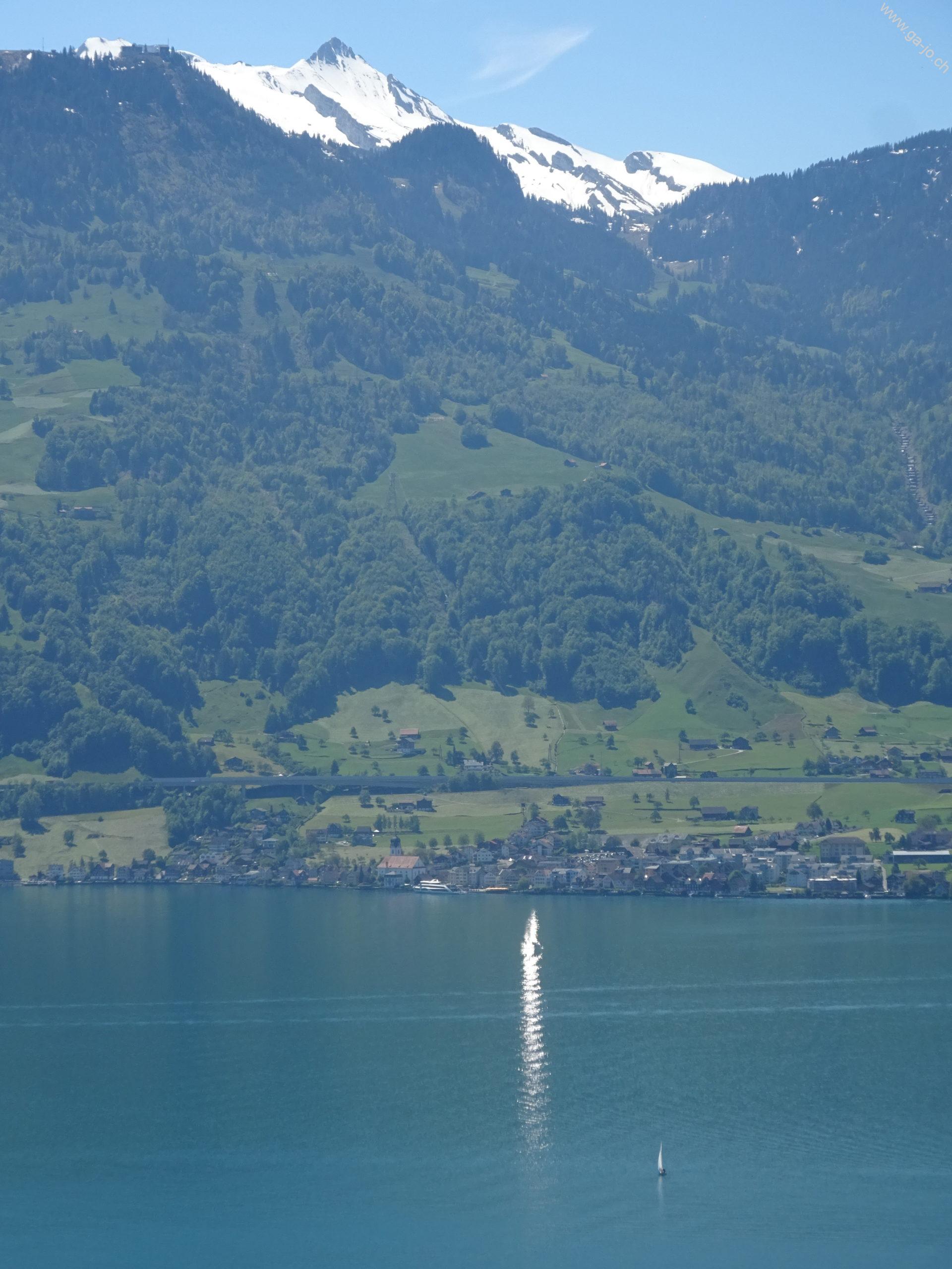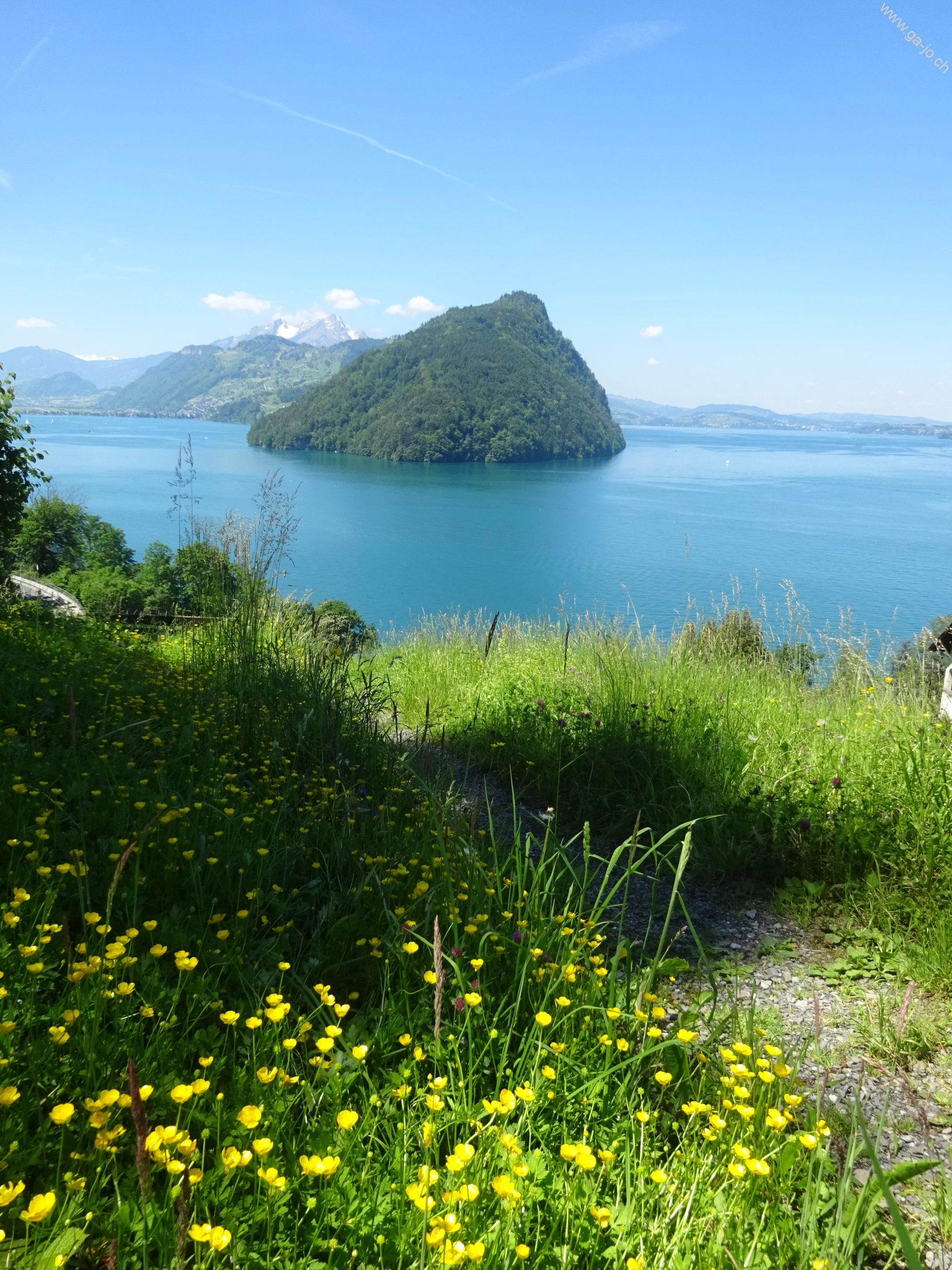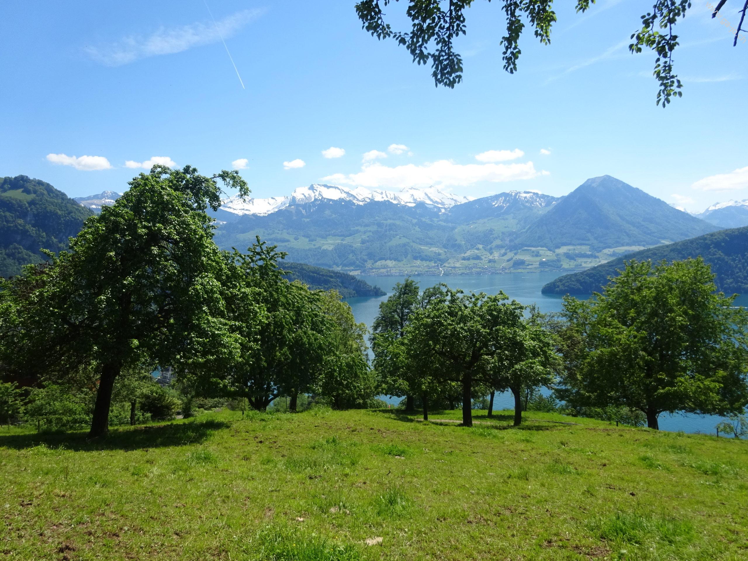 De Weggis, le chemin suit alors les bras du lac à travers champs, sans prendre le chemin le plus court mais la forêt bordant le lac est plutôt agréable en ce jour très ensoleillé. On arrive finalement à Greppen ou deux bus par heure nous permettent de rejoindre Küssnacht à temps pour l’apéro.