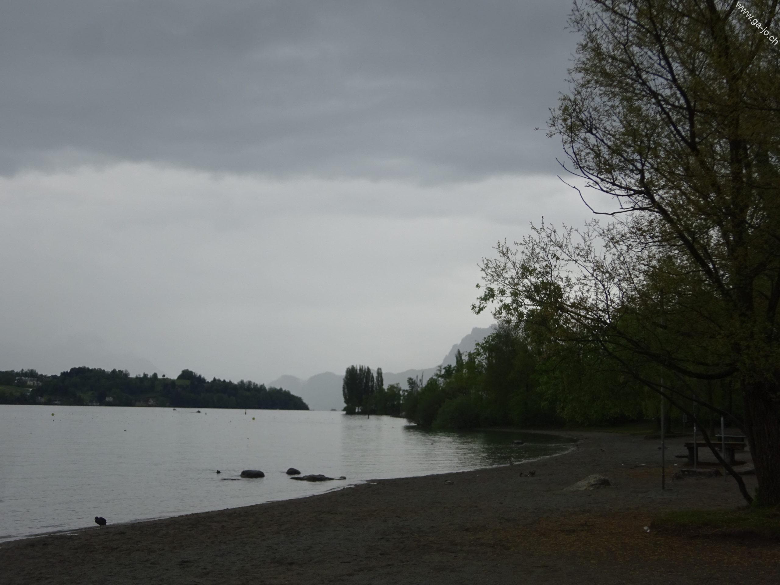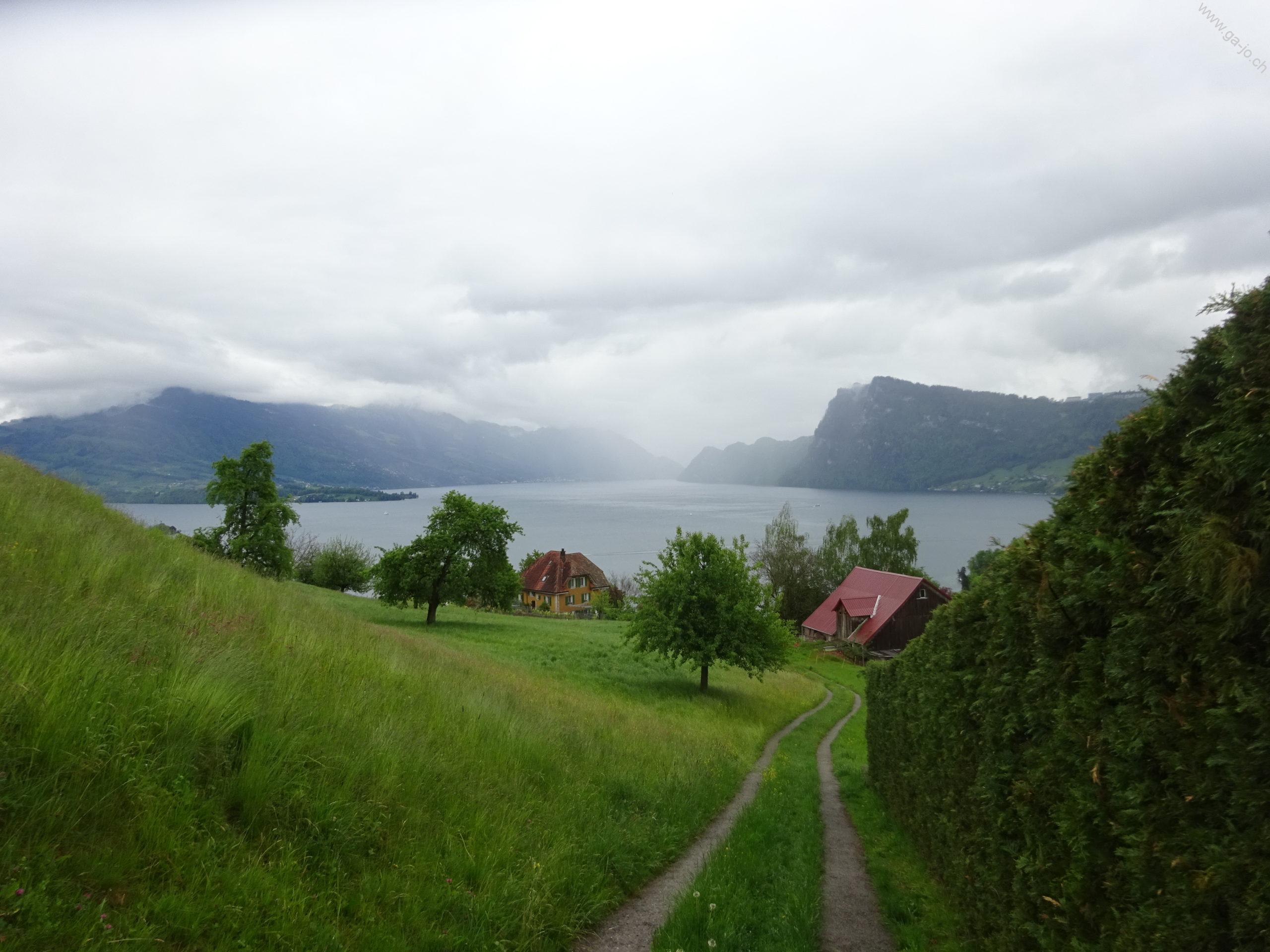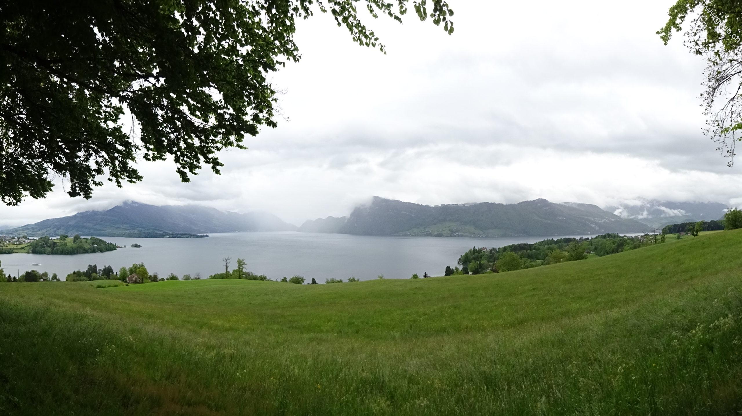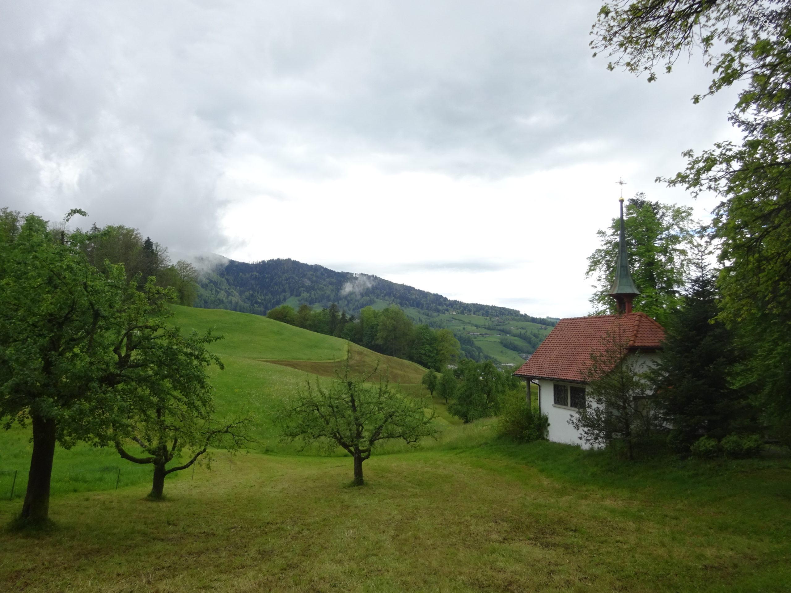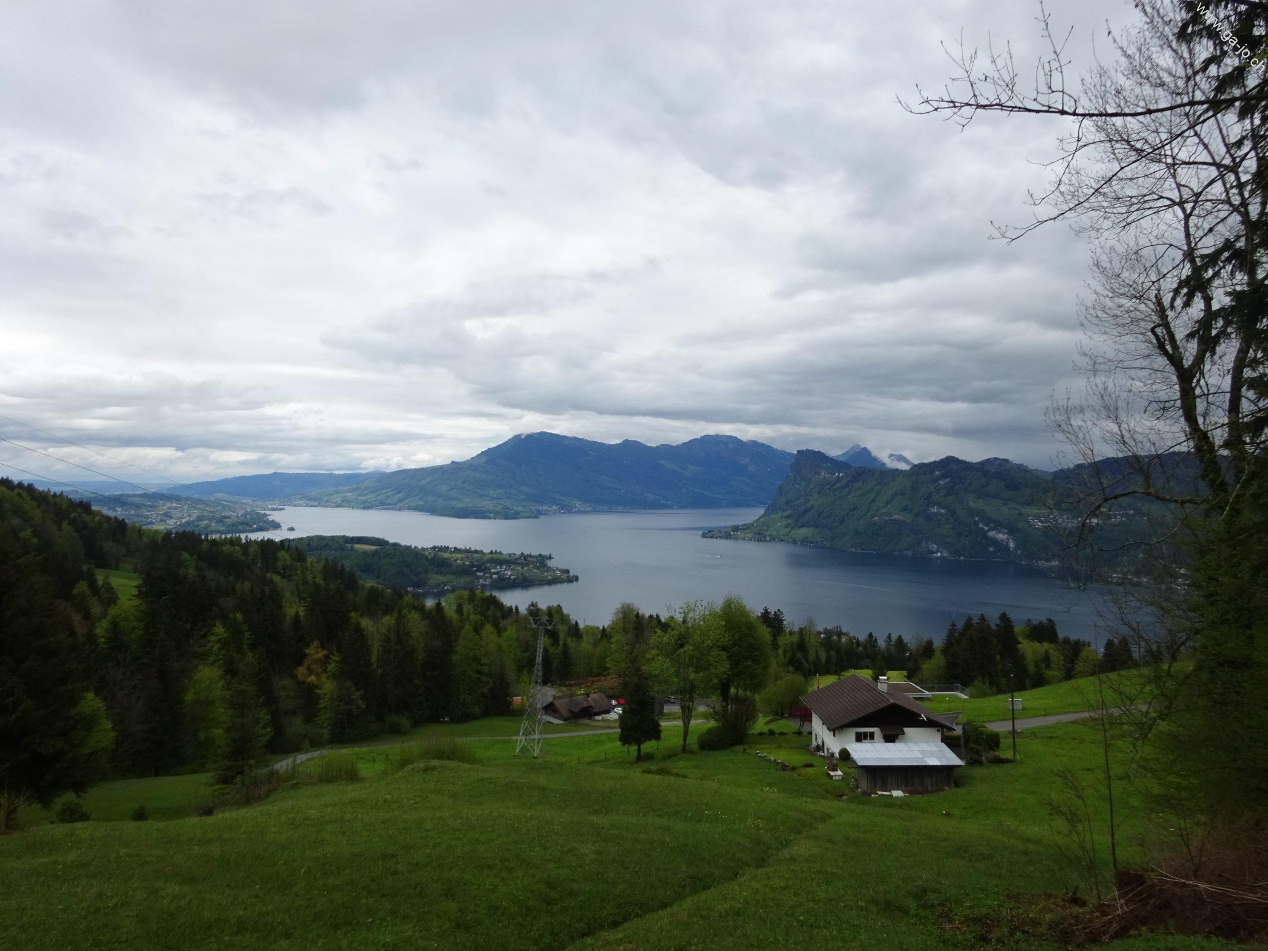 L’itinéraire officiel contourne normalement Dickiwald, au dessus de Kastanienbaum, mais nous décidons de couper directement vers Horw pour gagner un peu de temps. Je pourrais argumenter que c’est la météo peu enchanteresse du jour qui a dicté ce choix mais dans la réalité, il s’agit de la “résultante de l’incertitude du calcul cinématique appliquée à la biomécanique humaine pédestre” (en clair : je me suis un peu brouté dans les horaires) et on aimerait ne pas rejoindre notre hôtel à Sarnen trop tard afin de pouvoir profiter du sauna…