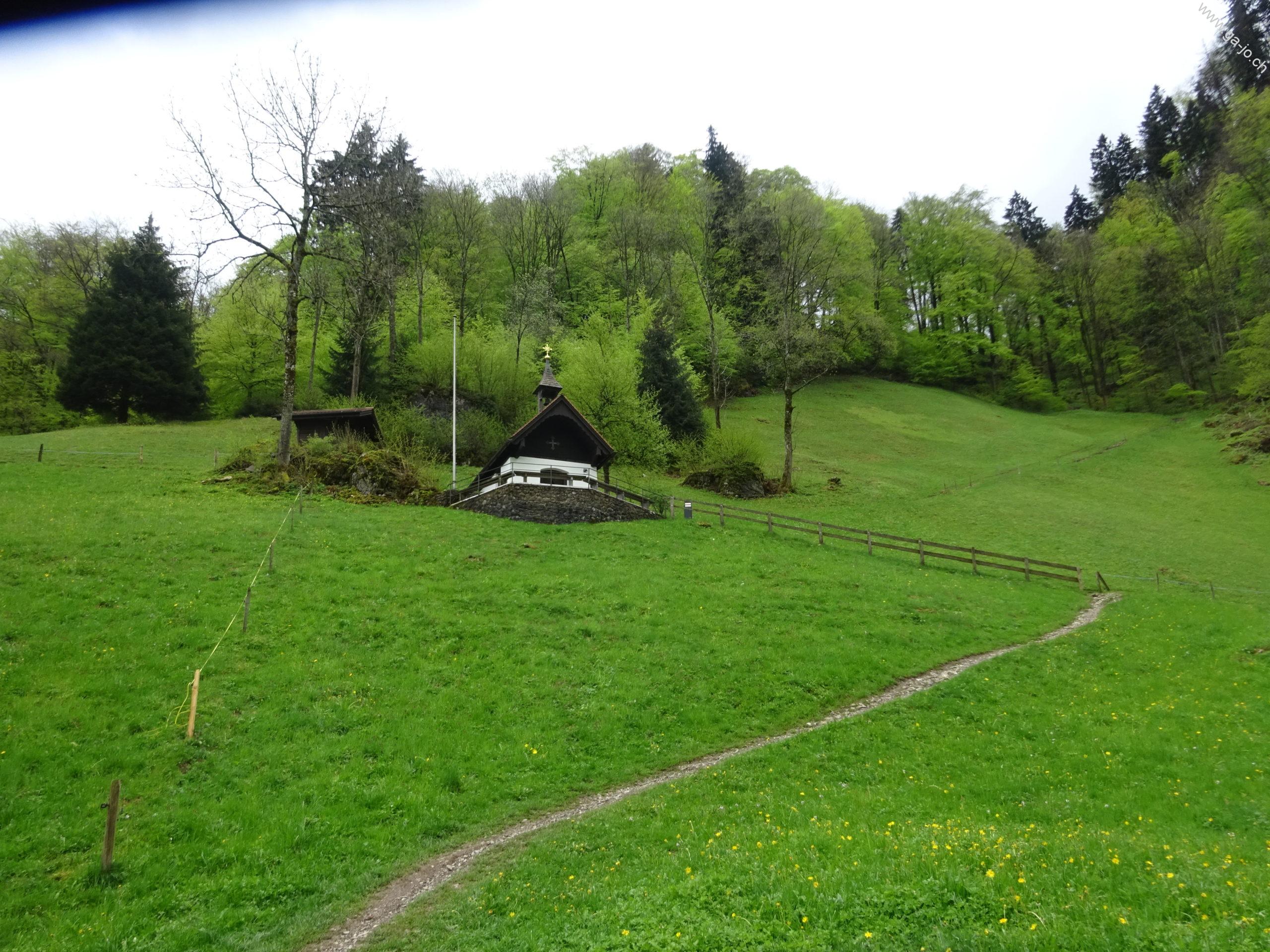 La montée peut parfois être assez éprouvante mais le chemin est bien aménagé avec, par moment, des marches d’escalier probablement construites par des personnes dont les jambes doivent avoir, au minimum, deux fois la longueur des miennes. Après avoir passé la jolie chapelle de Hinter Rengg, l’ascension finale du col se fait à travers la forêt.
