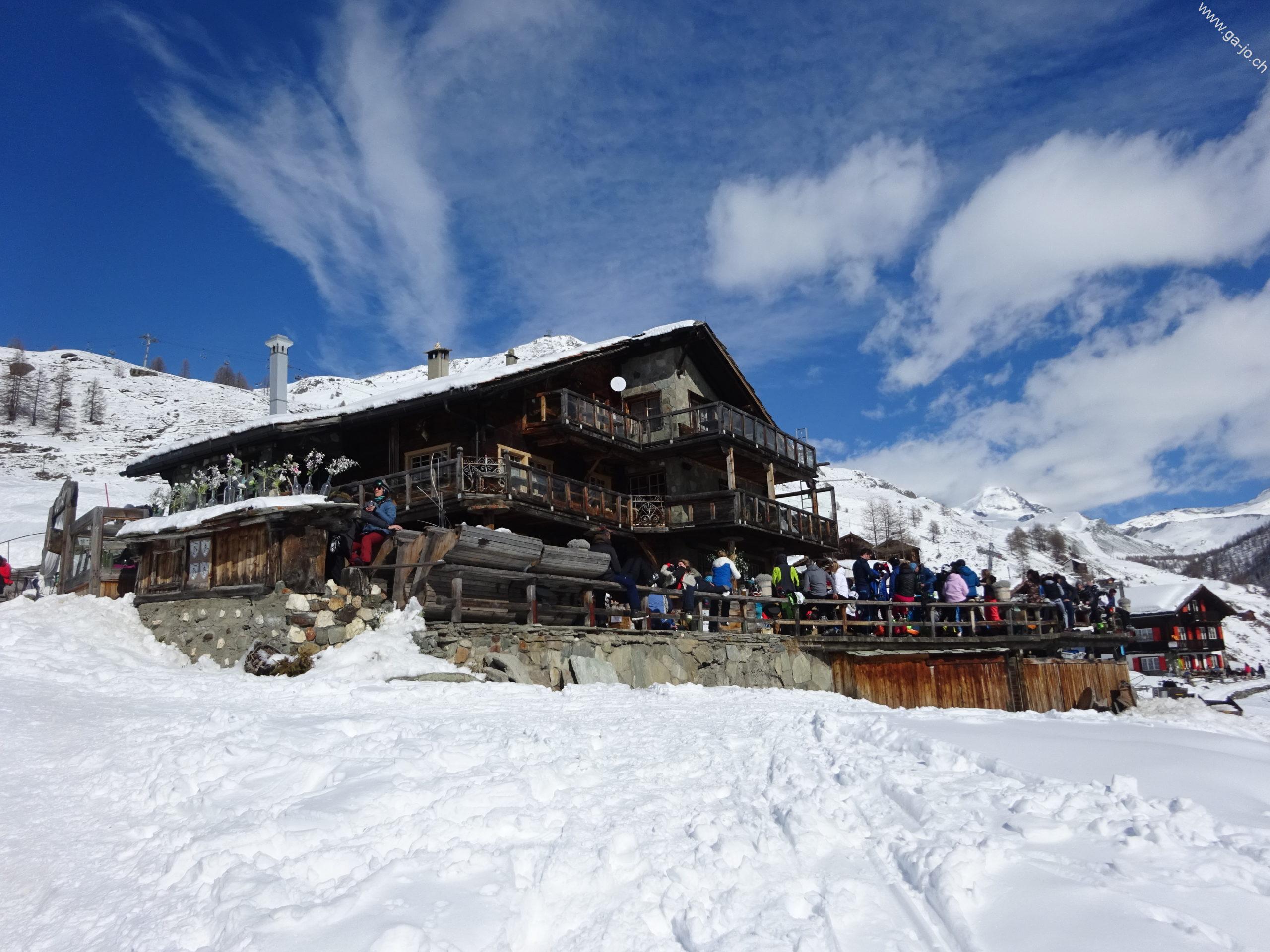 On arrive au restaurant Ze Seewjinen, plein de skieurs et on continue tout doit en direction de Grünsee… que nous aurons bien de la peine à distinguer vue la quantité de neige présente.