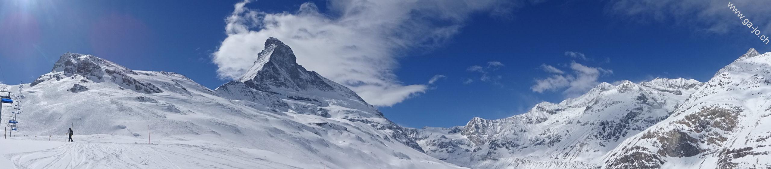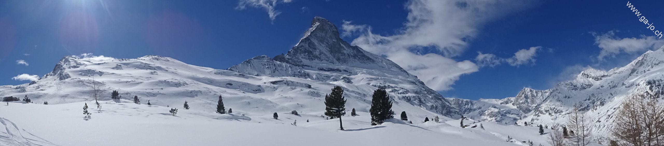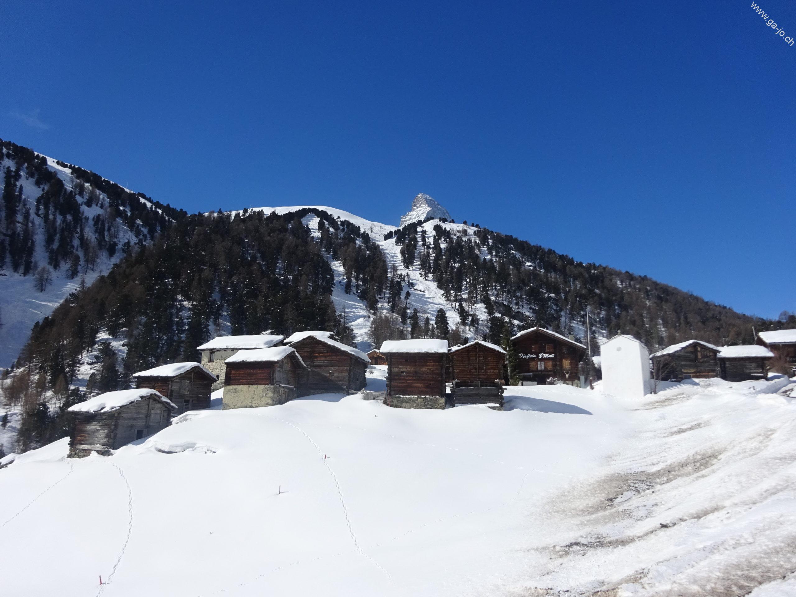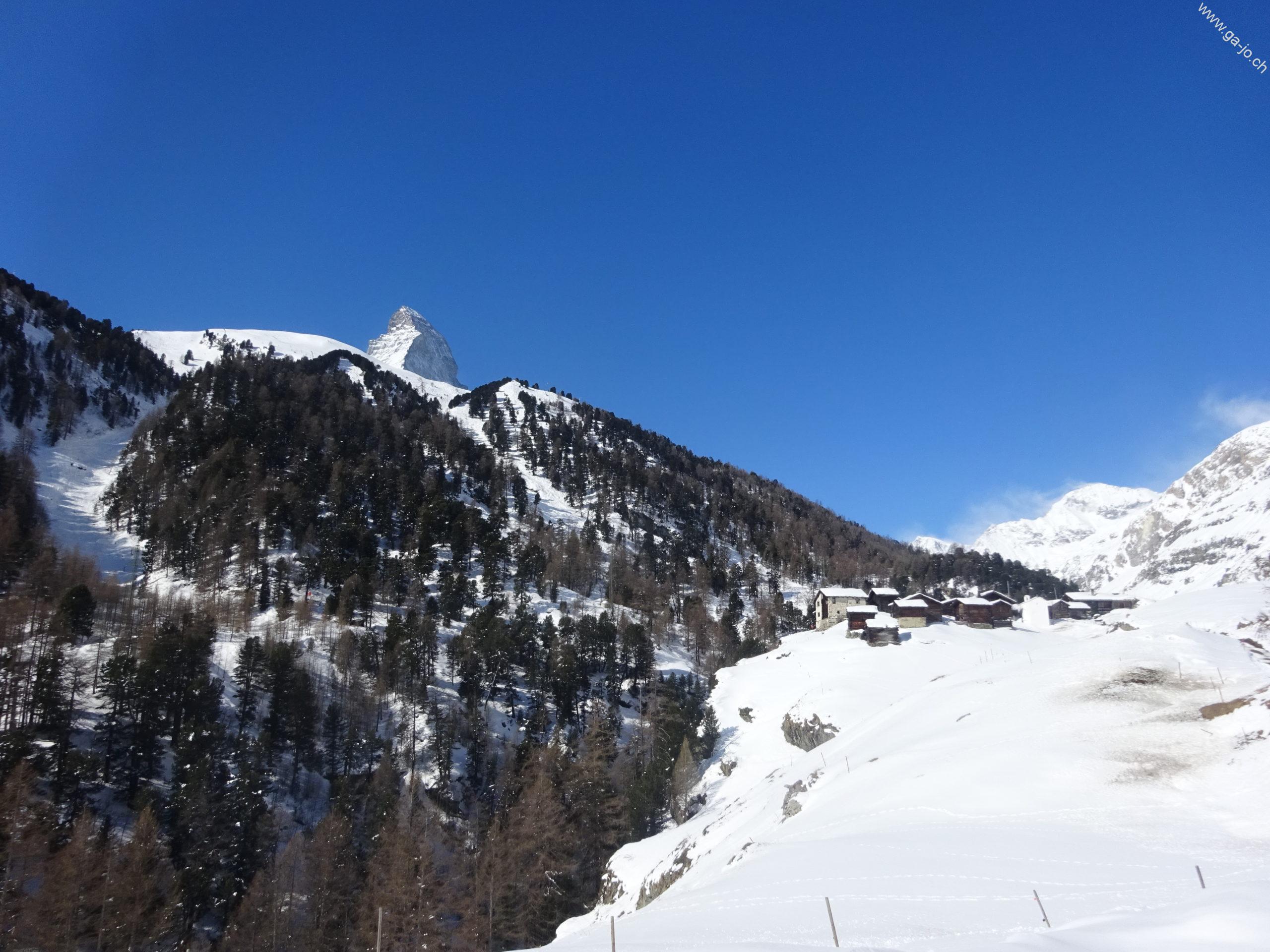 Pour cette première sortie de notre séjour dans la station, nous partons en direction du Schwarzsee via Z’mutt et Stefalalp. La vue impressionnante sur le Cervin domine toute la montée alors qu’on se rapproche du pieds de la montagne. On descendra ensuite directement sur Furi, Aroleid, Zum See et retour à l’hôtel.